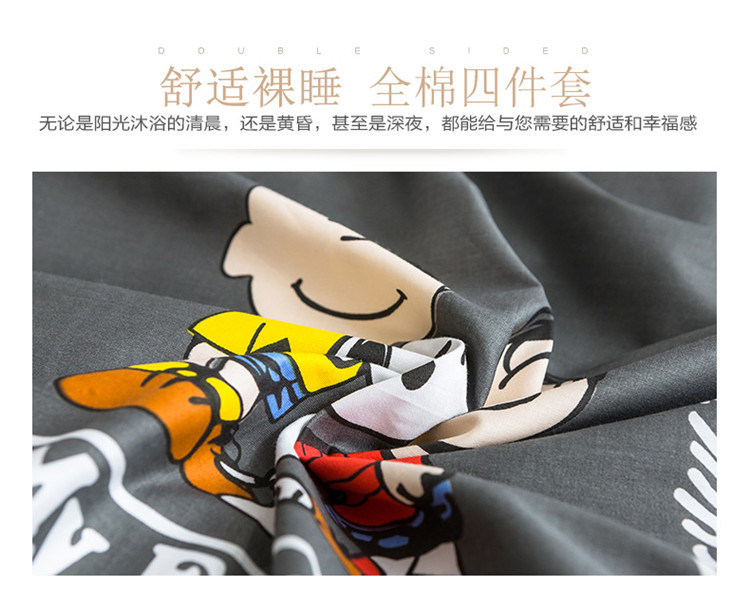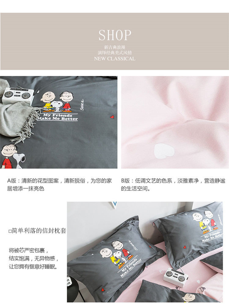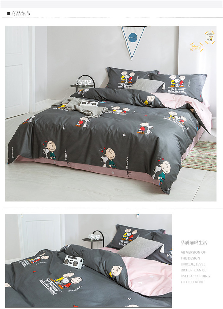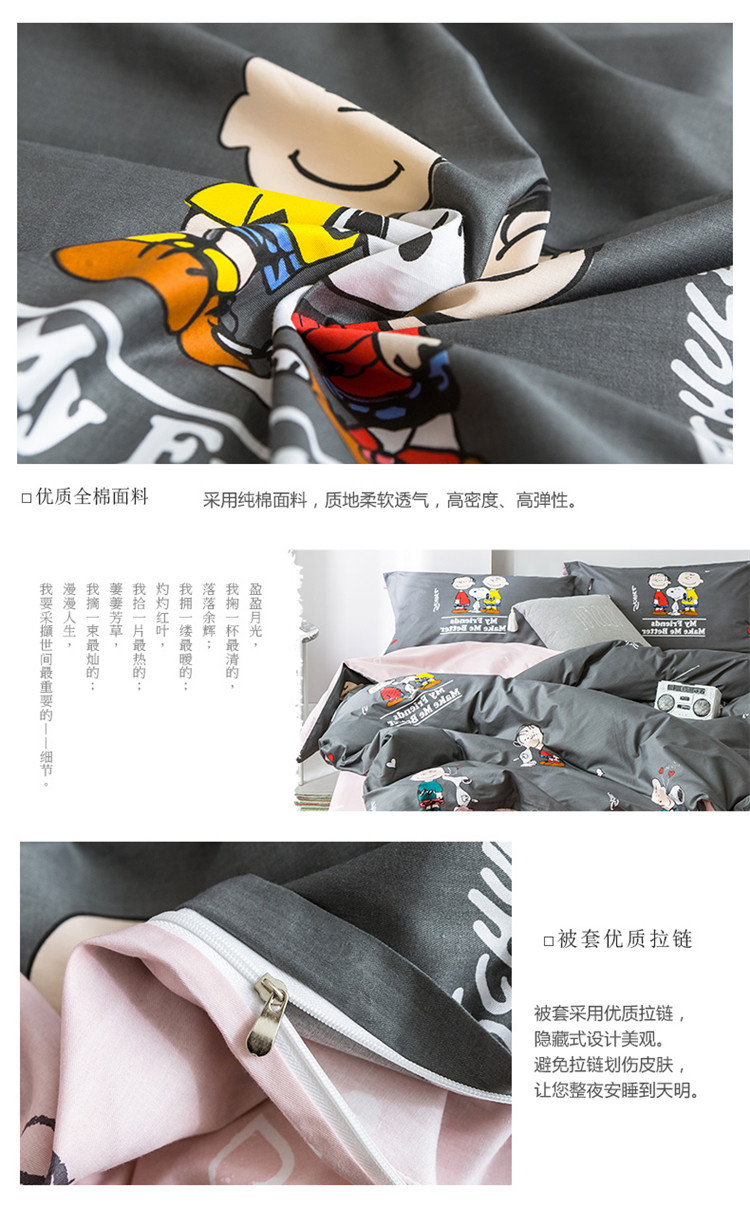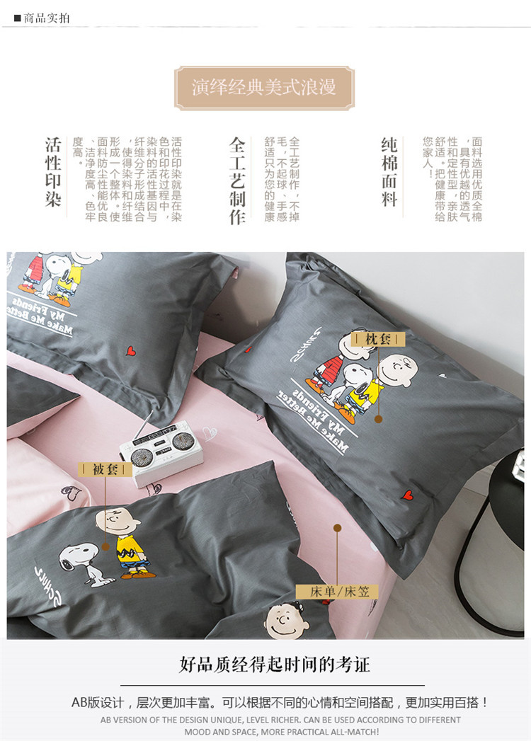 商品名称:窝米2019全棉13372减龄卡通系列四件套床单款史努比蓝灰
