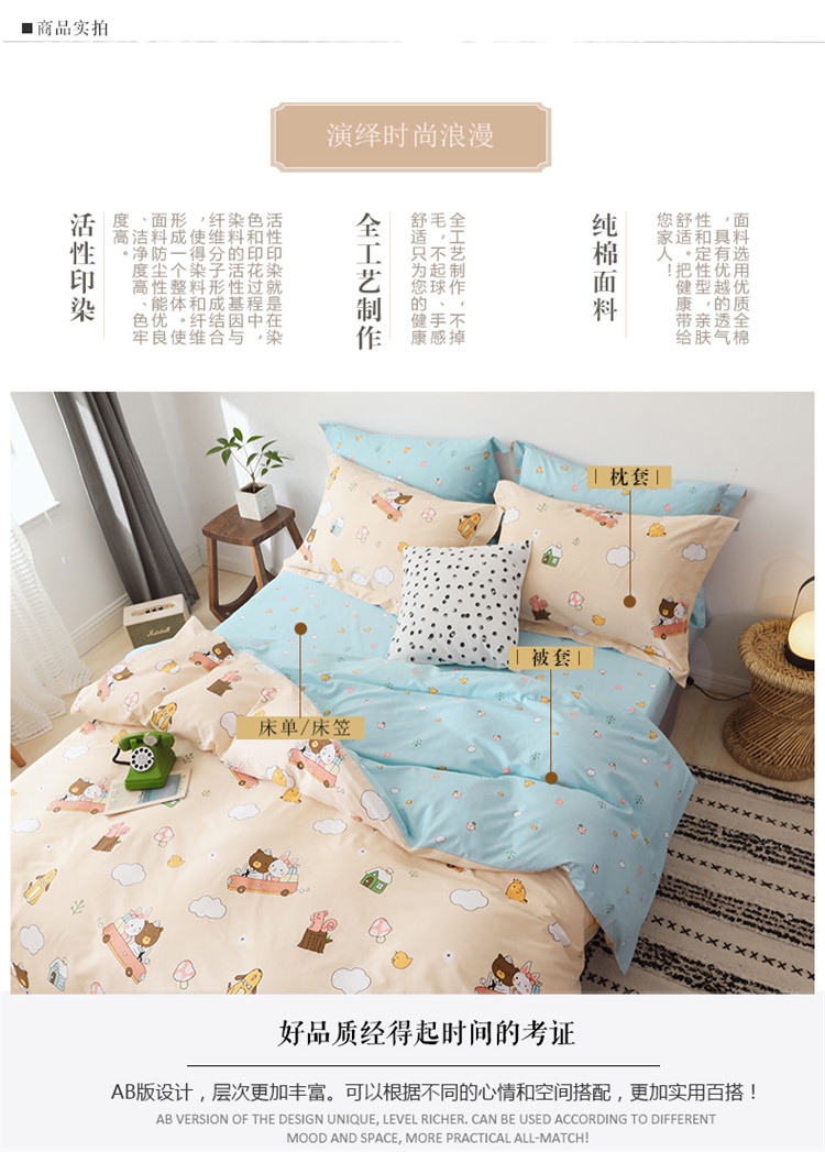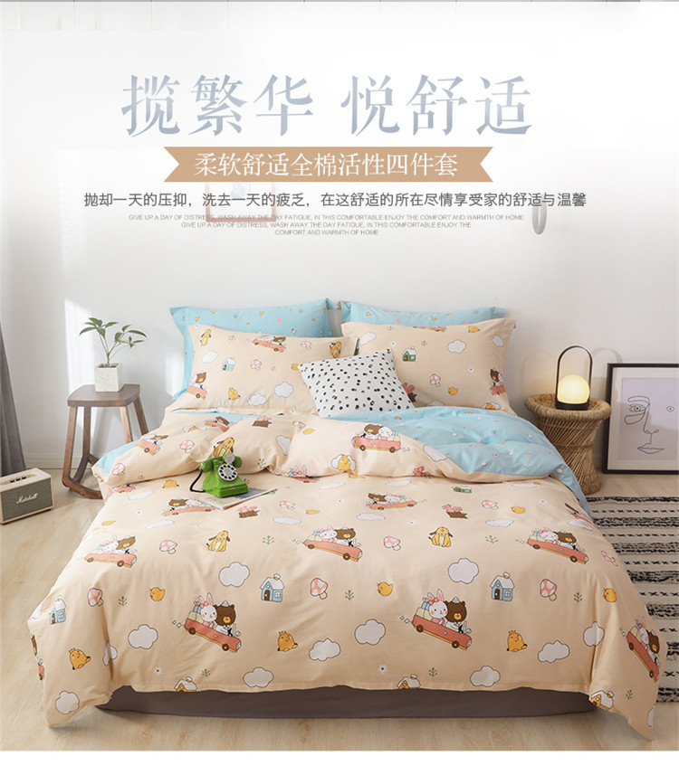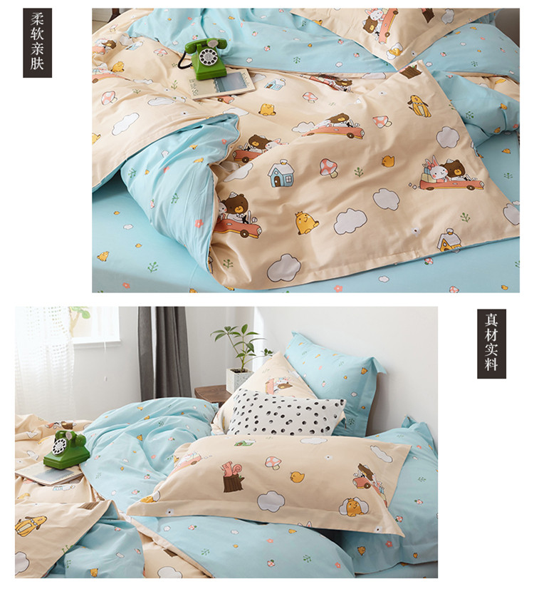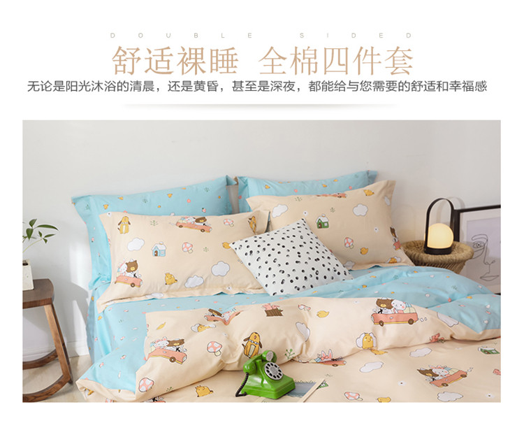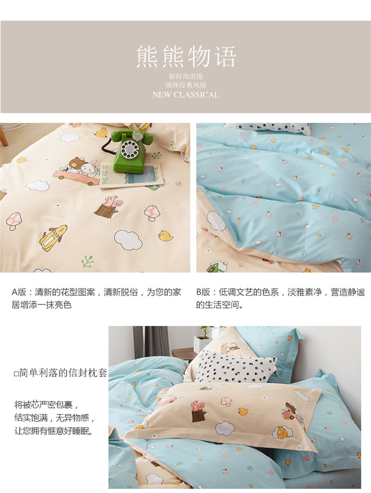 窝米 2019全棉13372卡通花卉系列四件套床单款熊熊物语