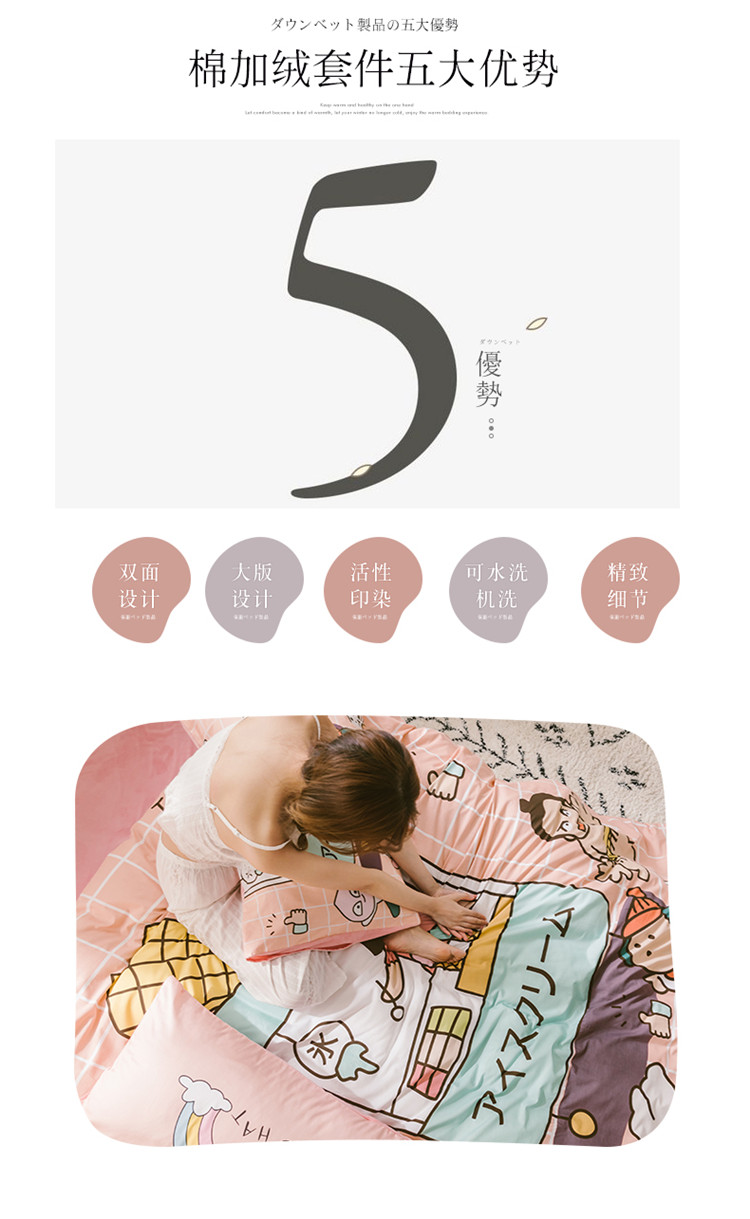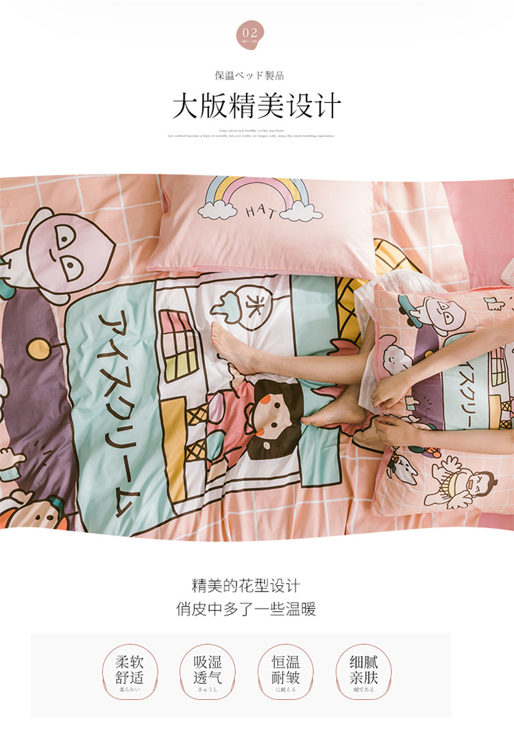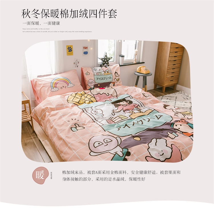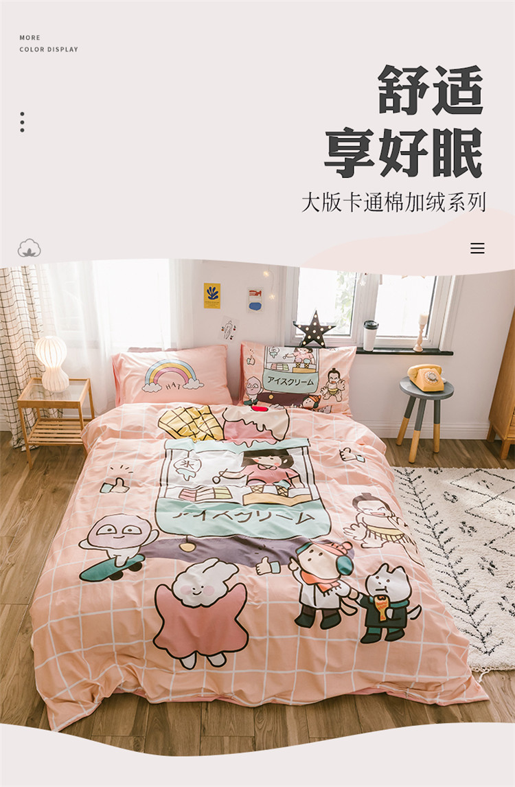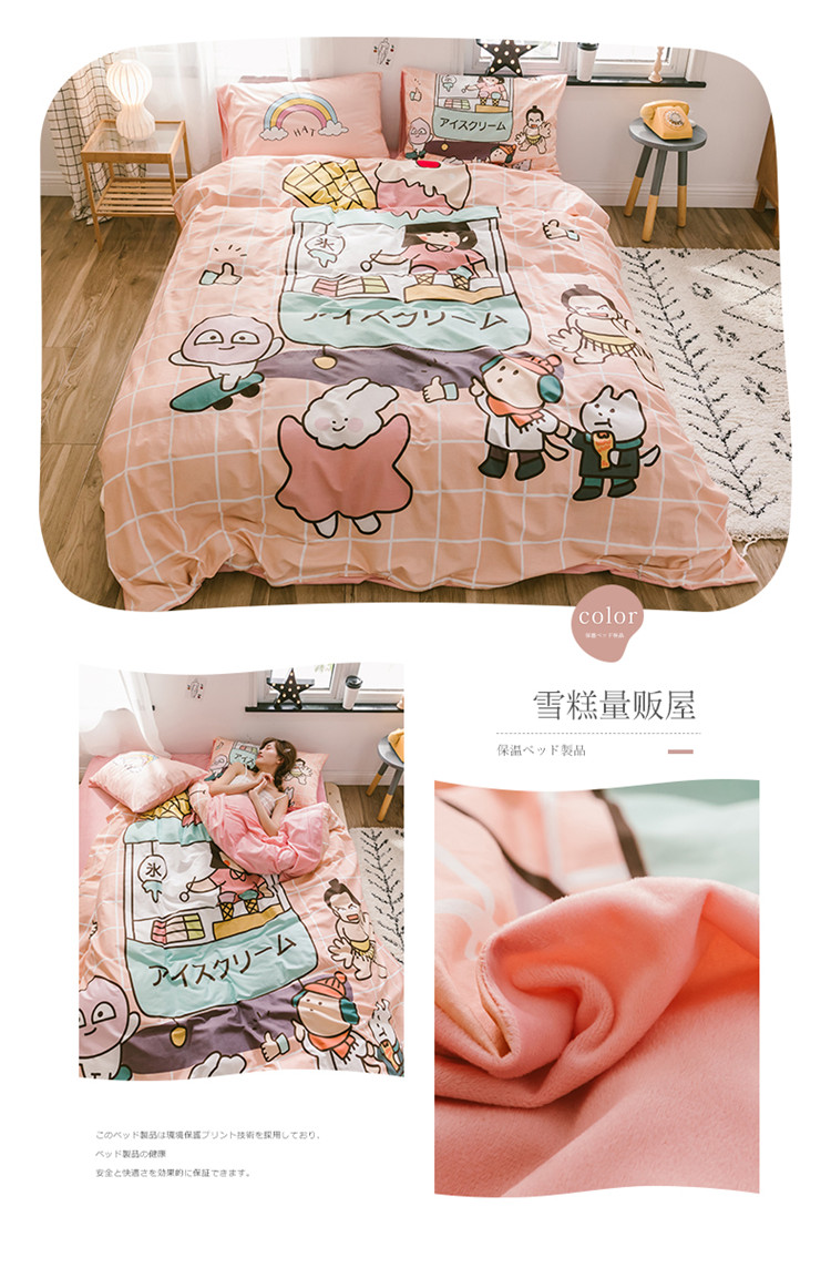商品名称:窝米 2019大版二次元卡通棉加绒四件套床单款 雪糕量贩屋