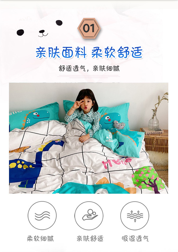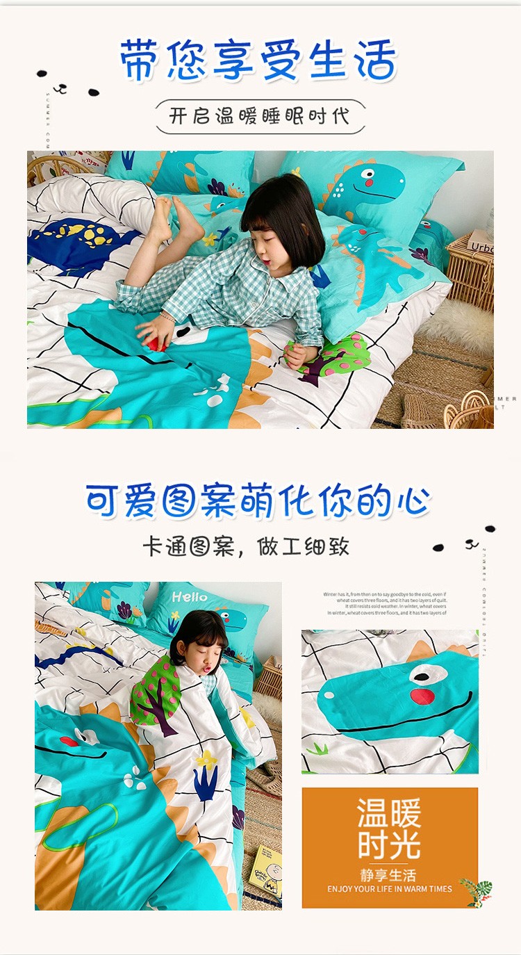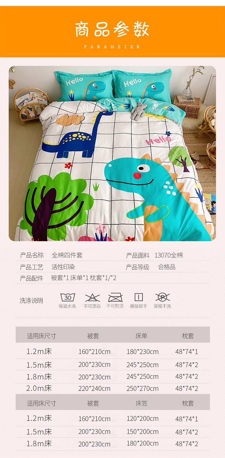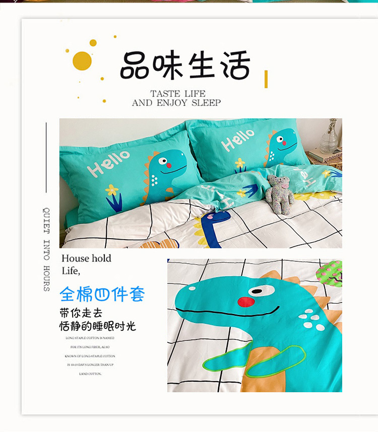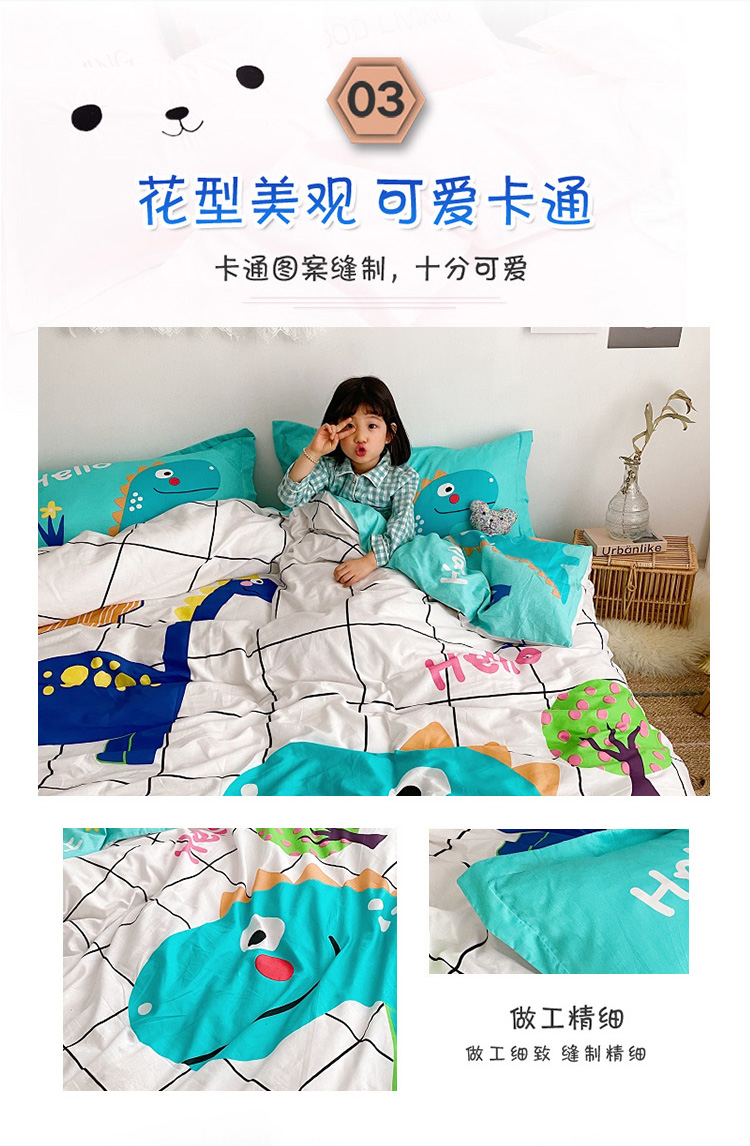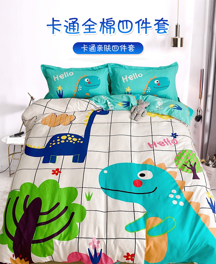 当前位置: 91家纺网 > 商品网购 > 床品套件 > 四件套 > 全棉普通四件套 > 金爱家家纺 2021新款童梦系列大版卡通全棉四件套 独家恐龙森林白