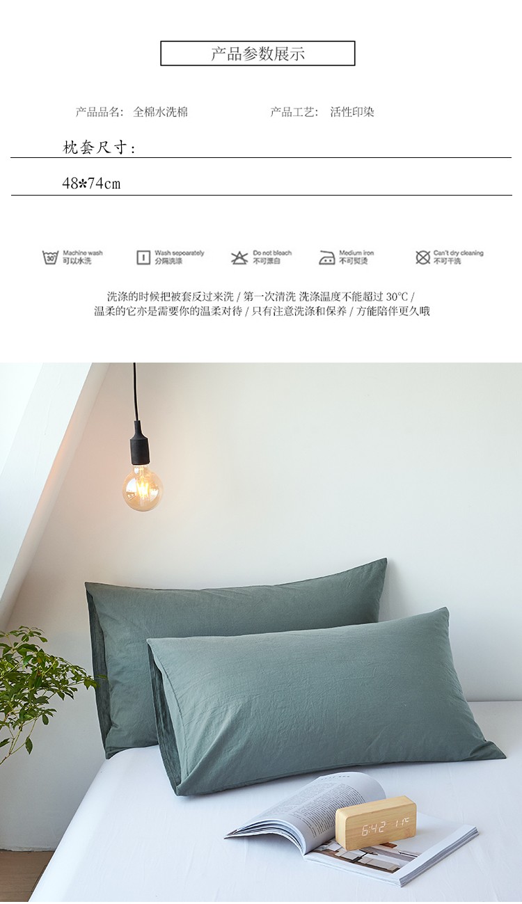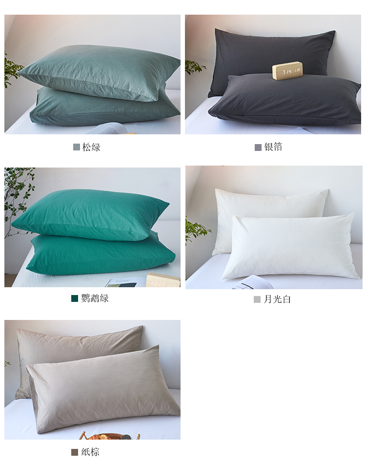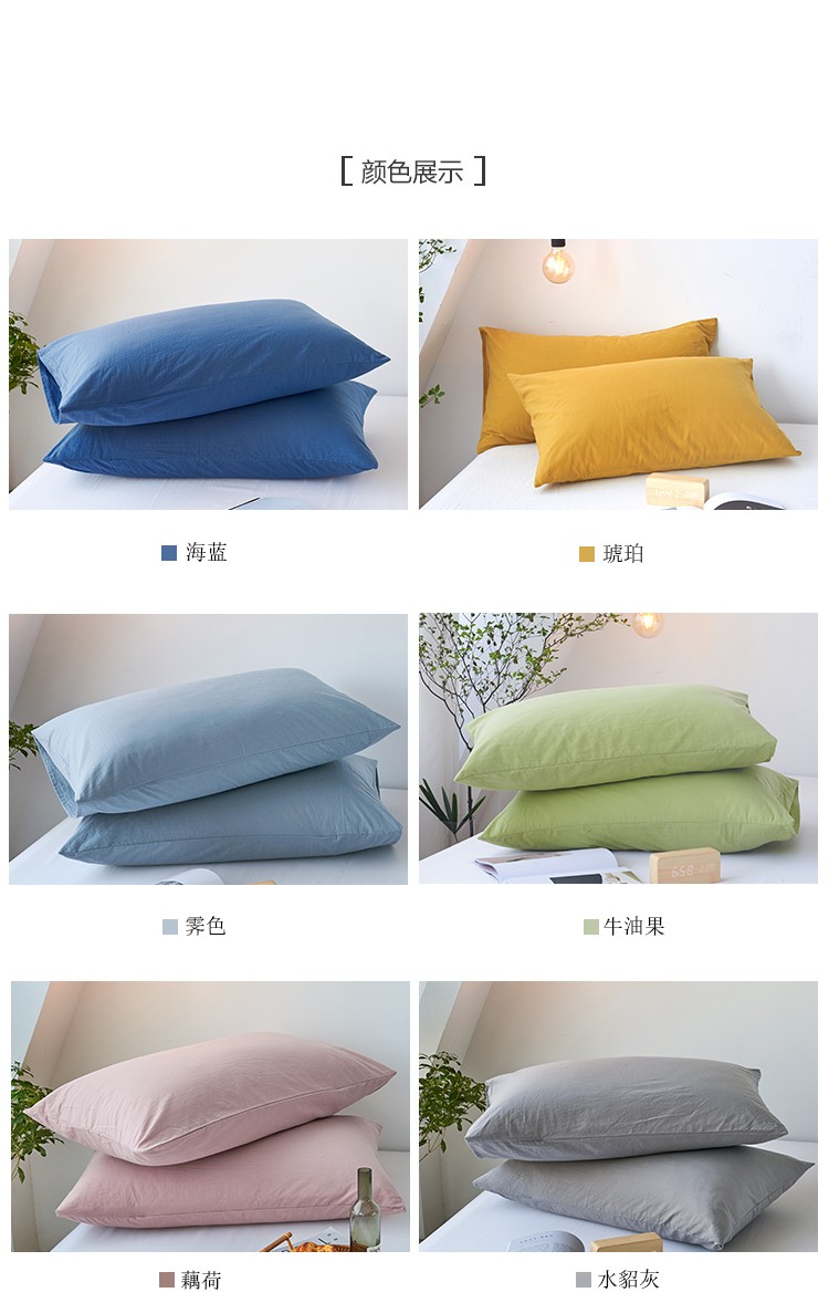商品名称:简约纯色全棉水洗棉枕套单件纯棉床罩单人枕巾枕头套