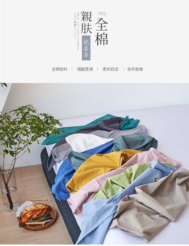 简约纯色全棉水洗棉枕套单件纯棉床罩单人枕巾枕头套