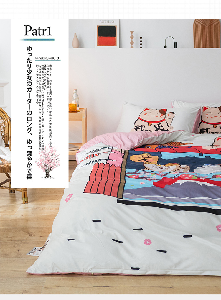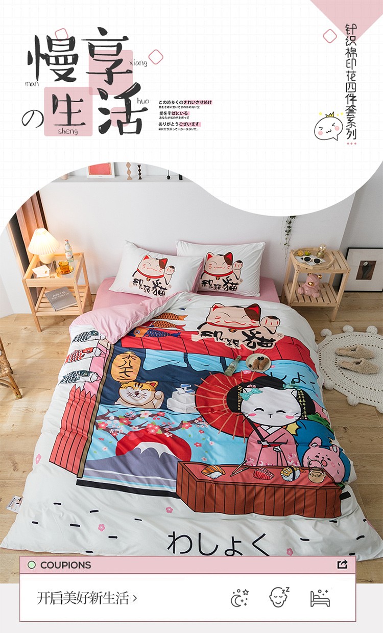 爱缦 2020新款日系针织棉数码大版印花四件套 发财猫