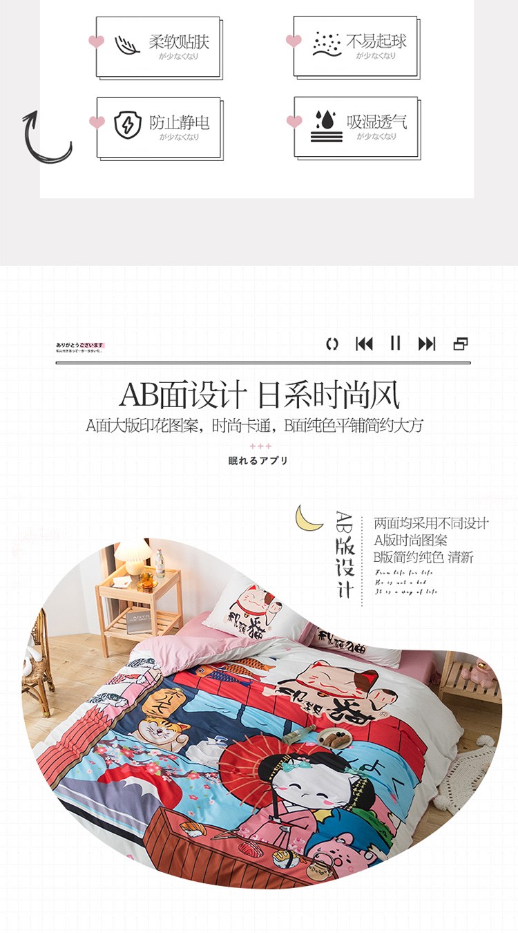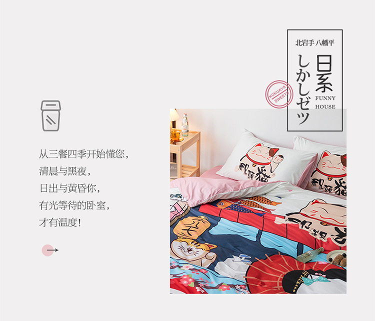 商品名称:爱缦 2020新款日系针织棉数码大版印花四件套 发财猫