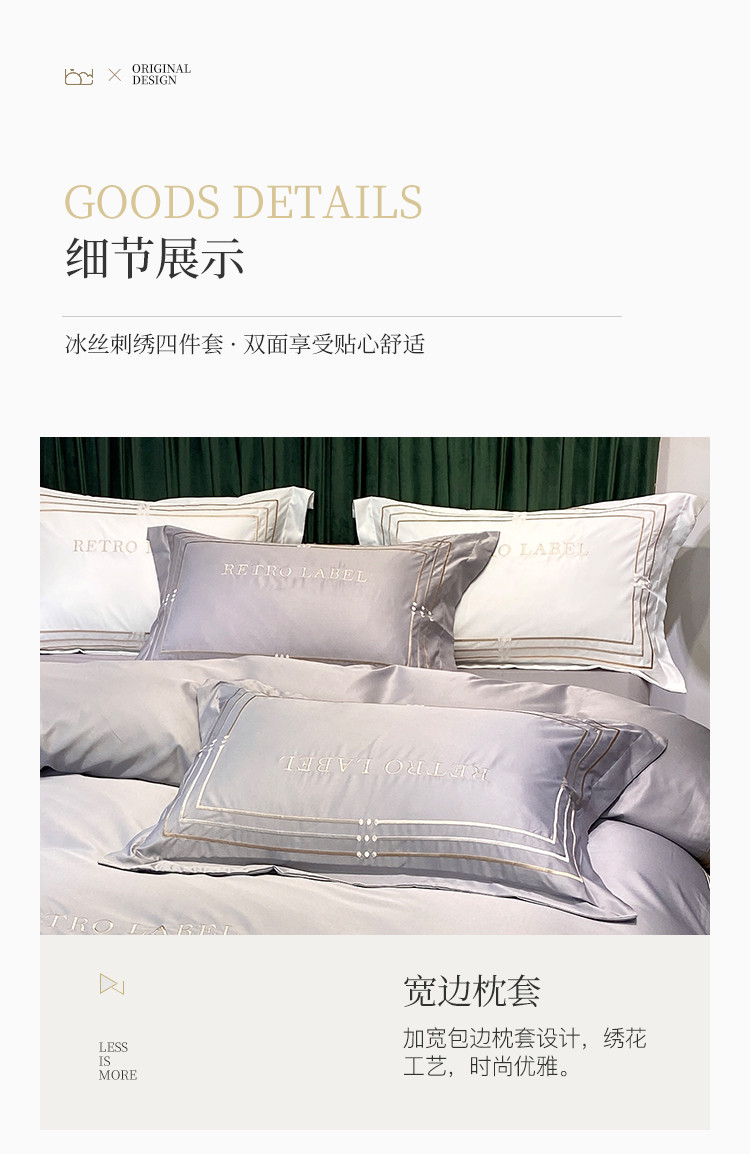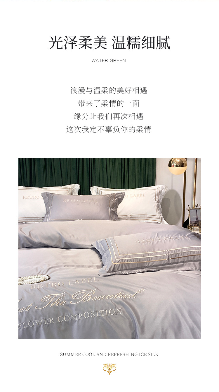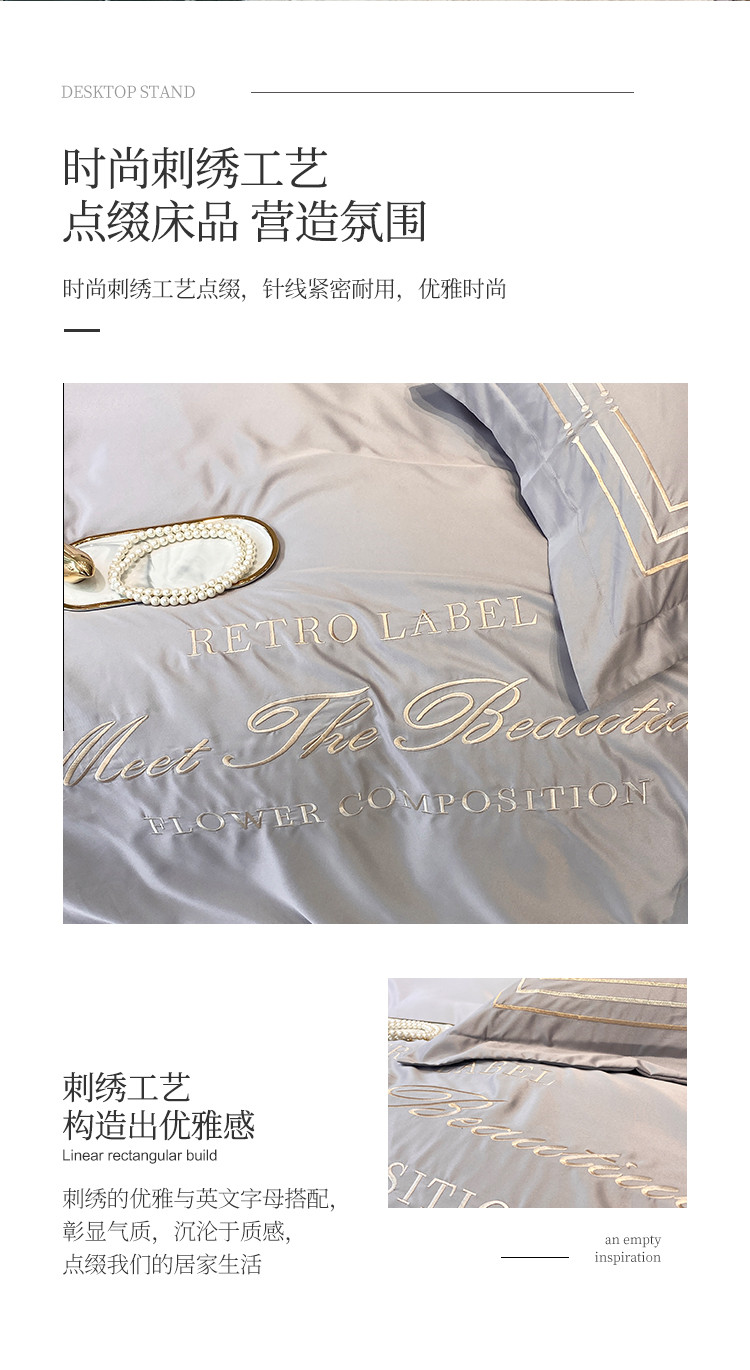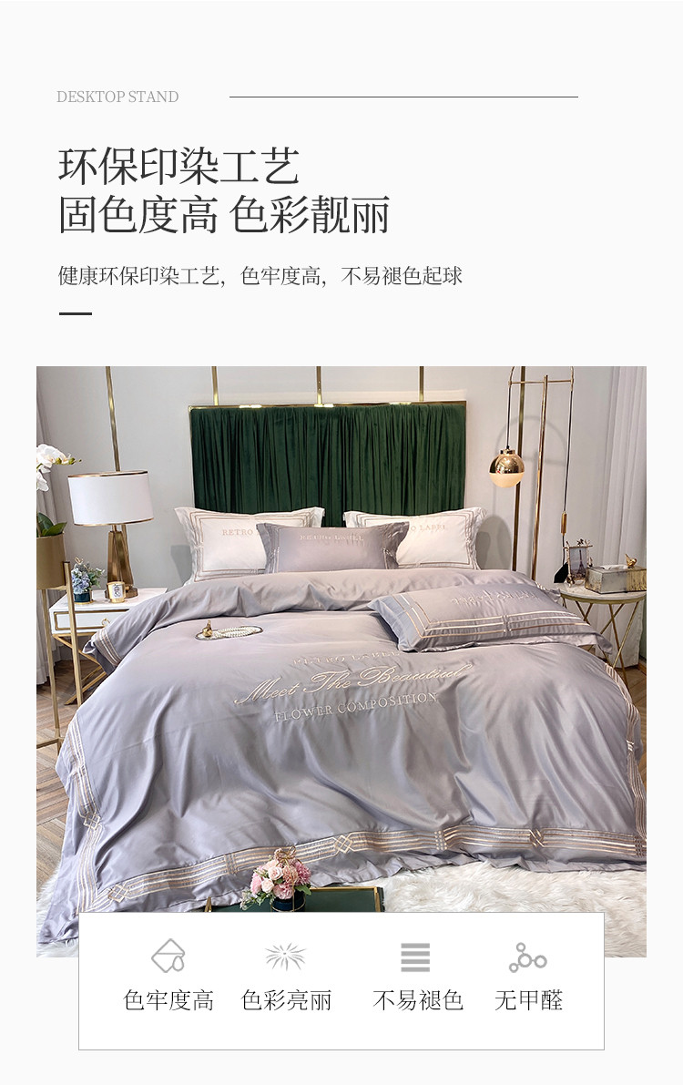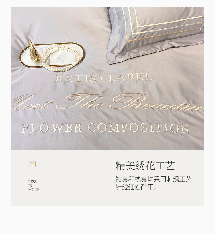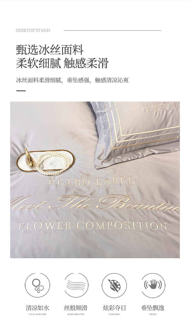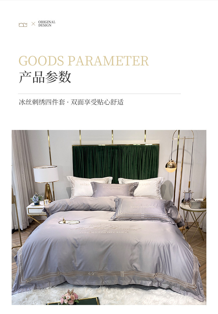 商品名称:理想家 2020新款纯色冰丝绣花四件套艾欧斯系列 浅紫