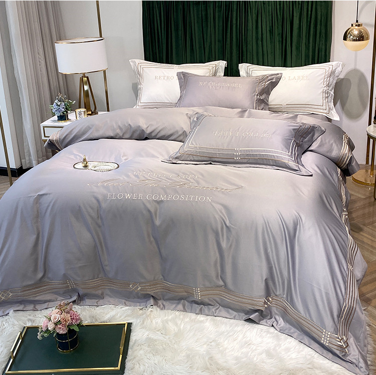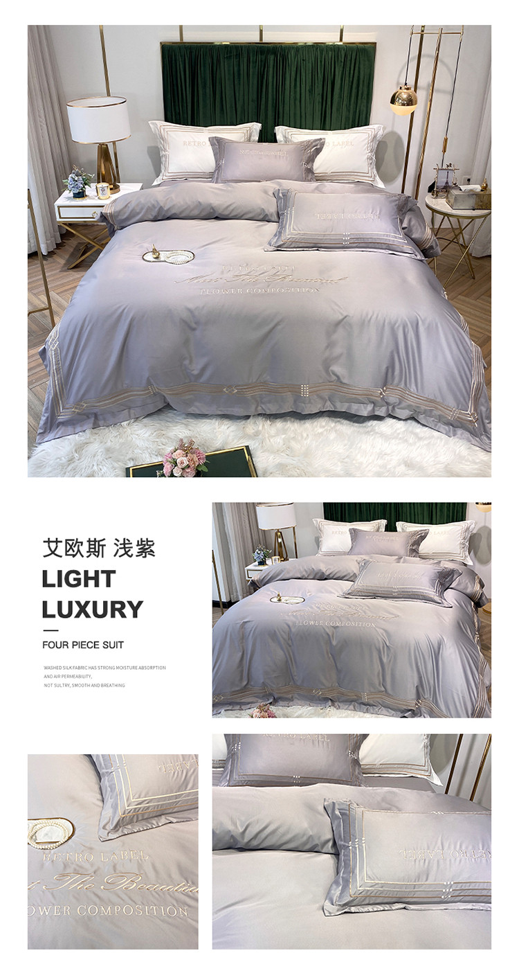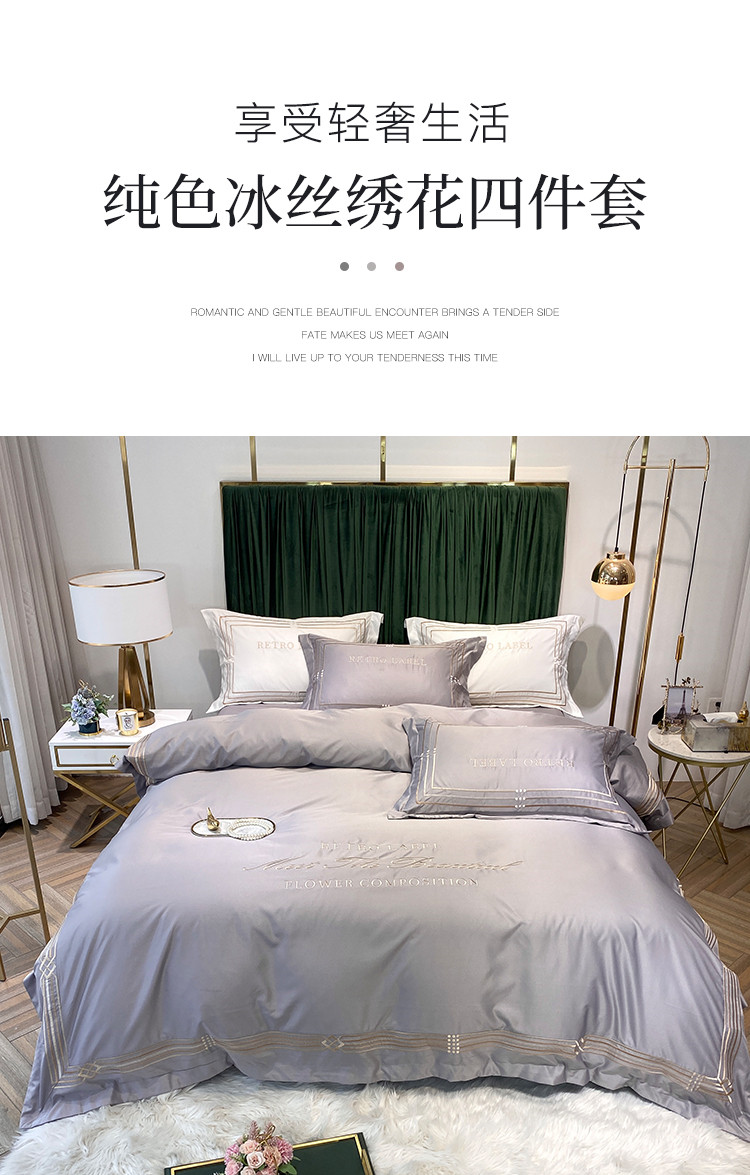 理想家 2020新款纯色冰丝绣花四件套艾欧斯系列 浅紫