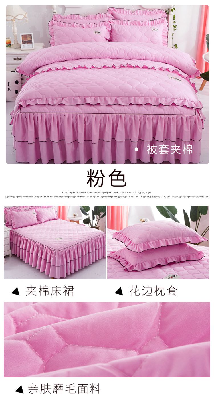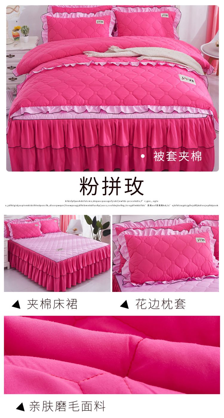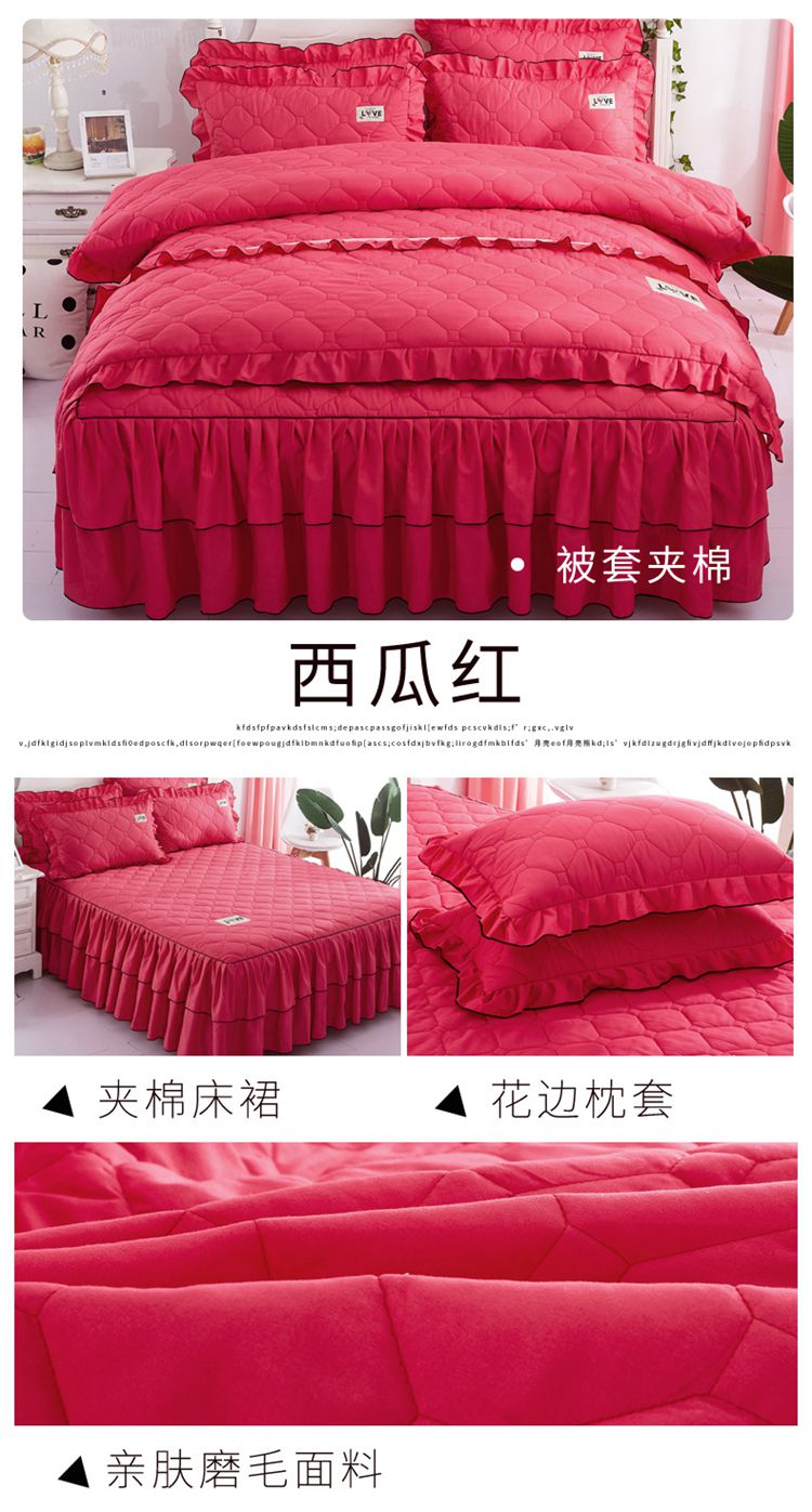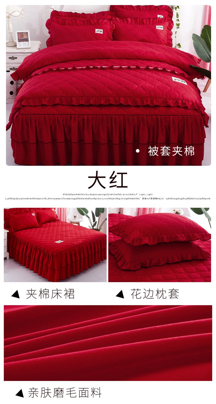 (总)艾裙海 2025新款90克磨毛夹棉绗缝床裙,粉色,大红色,米白色,深灰色,紫色,藏青色,宝蓝色,浅灰色,粉玉色,豆沙红