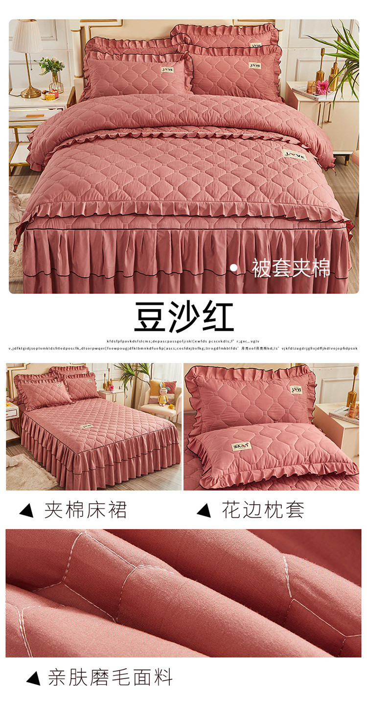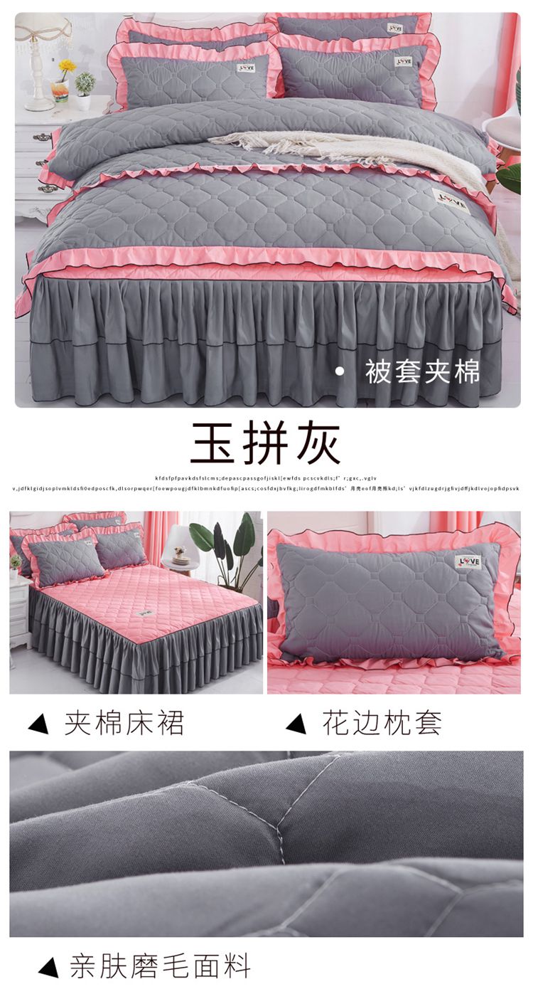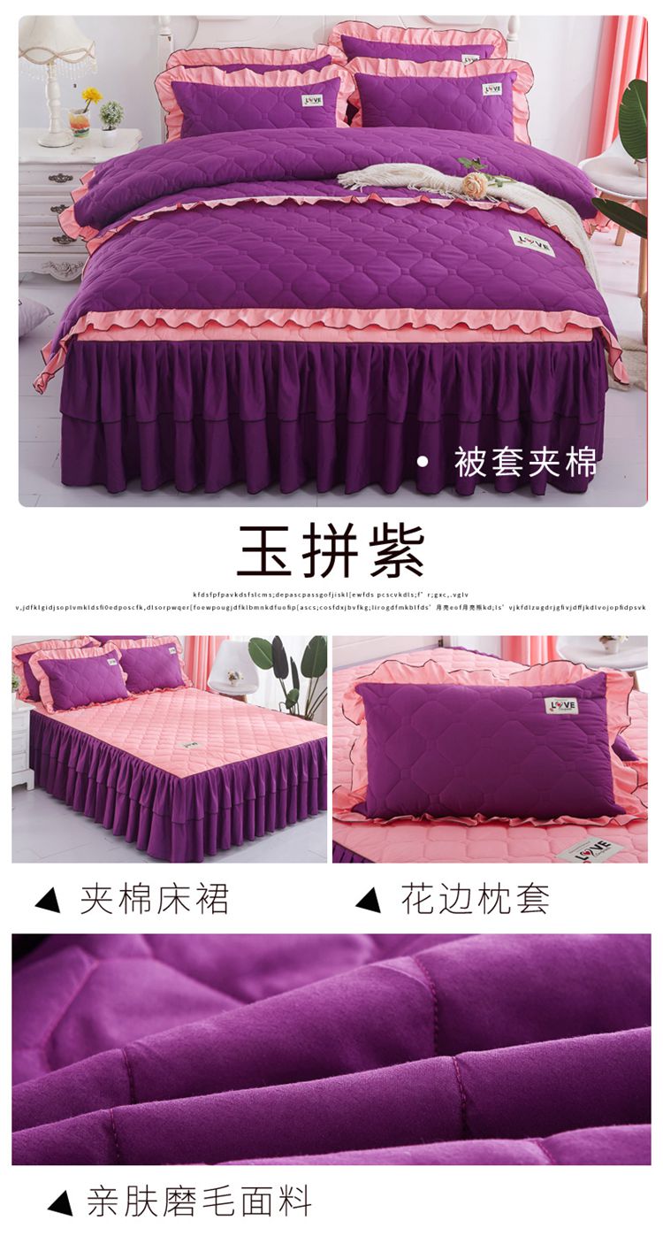 (总)艾裙海 2025新款90克磨毛夹棉绗缝床裙,粉色,大红色,米白色,深灰色,紫色,藏青色,宝蓝色,浅灰色,粉玉色,豆沙红
