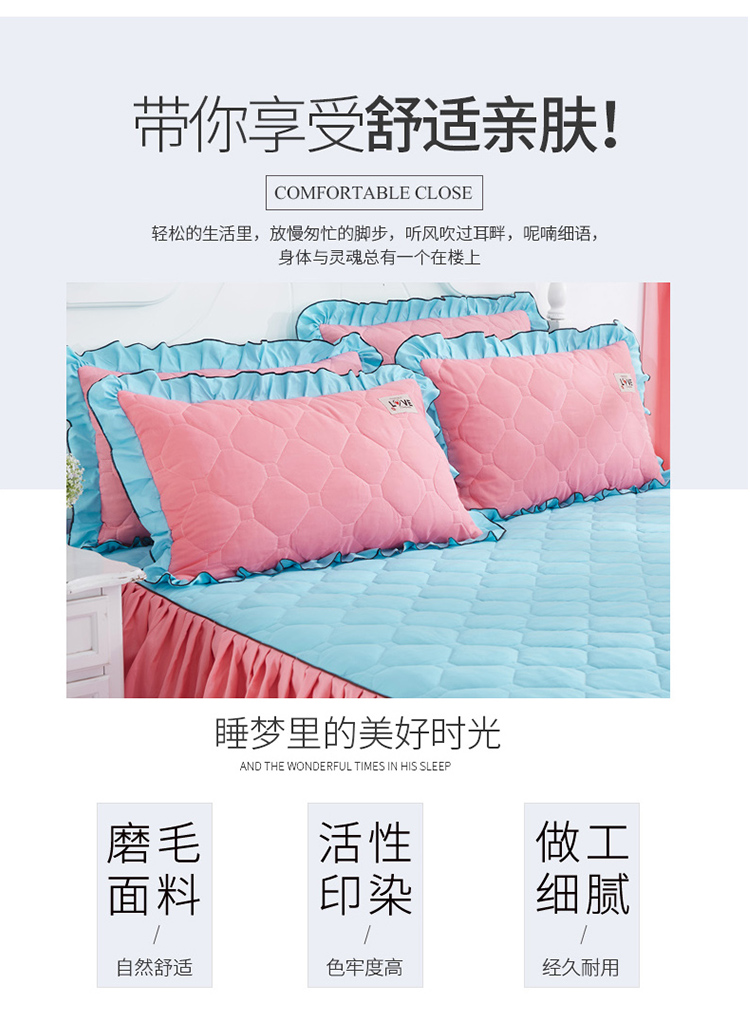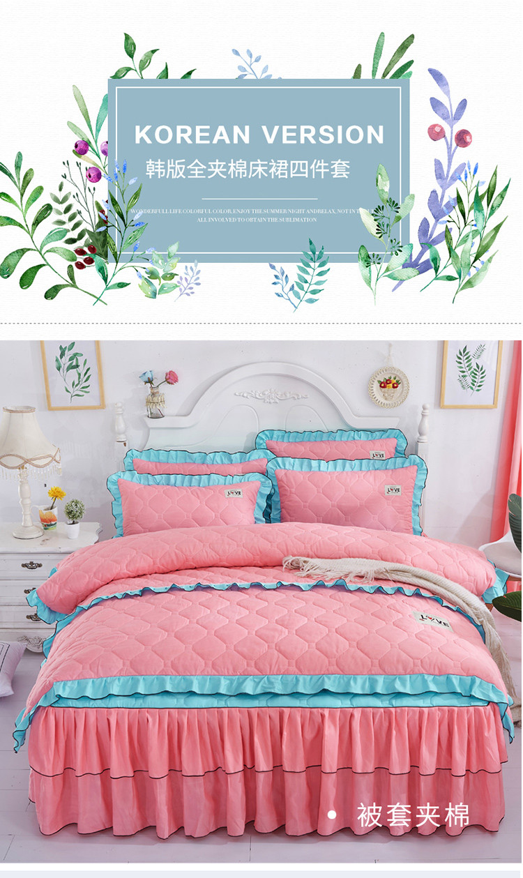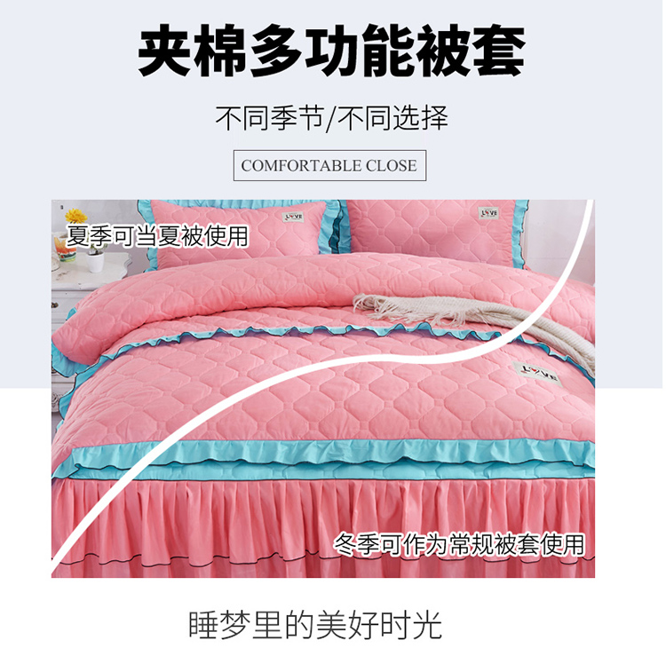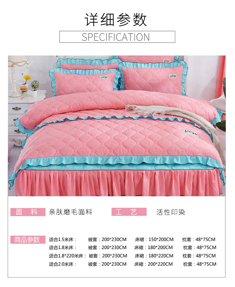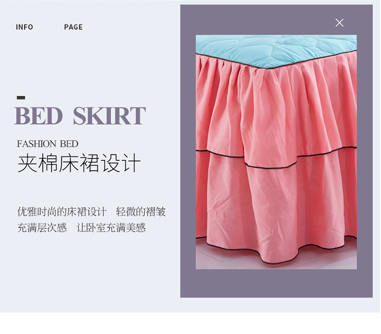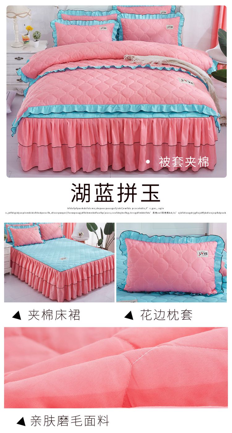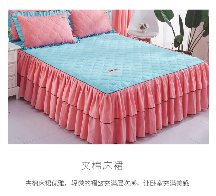 (总)艾裙海 2025新款90克磨毛夹棉绗缝床裙,粉色,大红色,米白色,深灰色,紫色,藏青色,宝蓝色,浅灰色,粉玉色,豆沙红