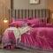 金米诺 新款韩版花边水洗棉泡泡纱四件套公主条四件套 褶皱-浅粉,褶皱-浅粉