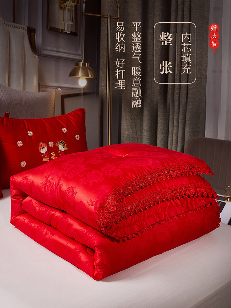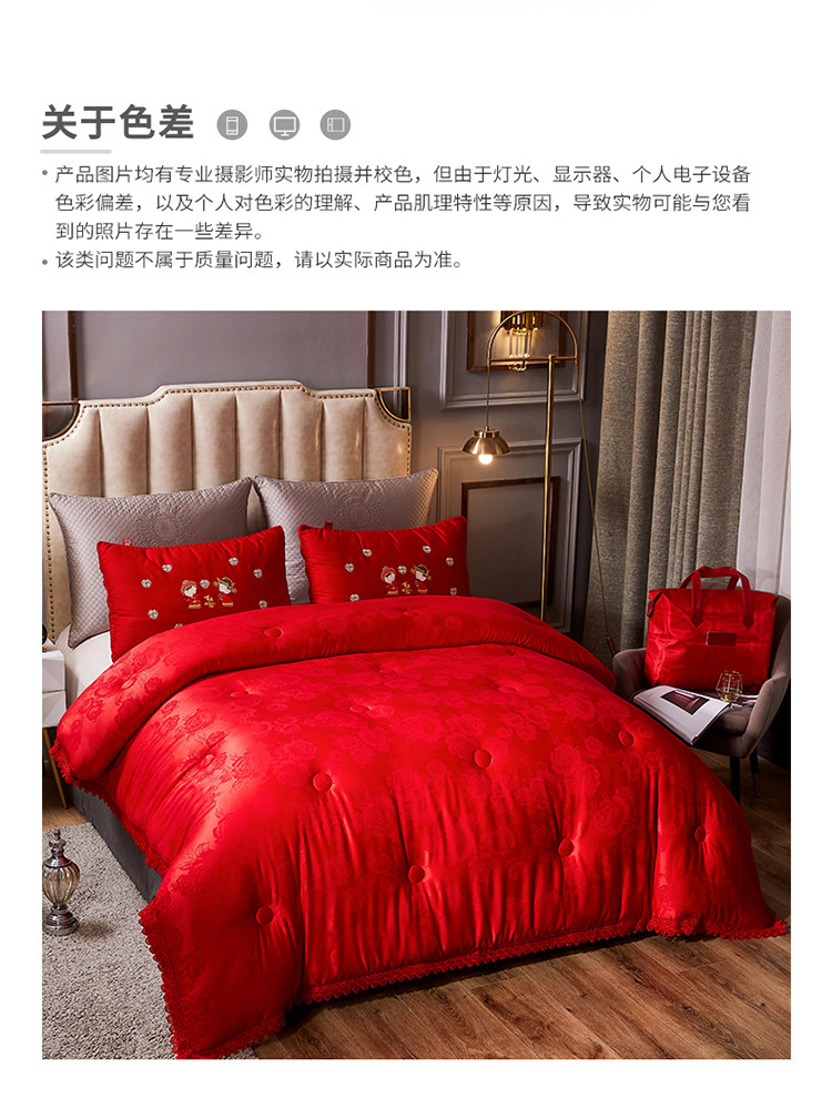 商品名称:元元被芯 2020新款婚庆被莫代尔提花中国红花边款