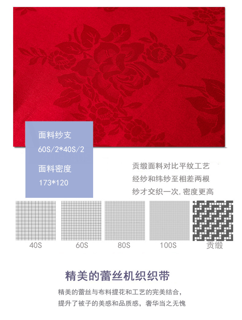 商品名称:啊雅家居 2025新款60S全棉贡缎提花大豆羽丝绒被 大红色