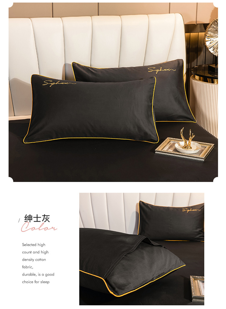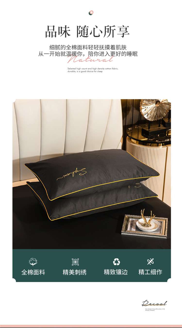 商品名称:拼社 40s贡缎长绒棉字母款单枕套一对 绅士灰