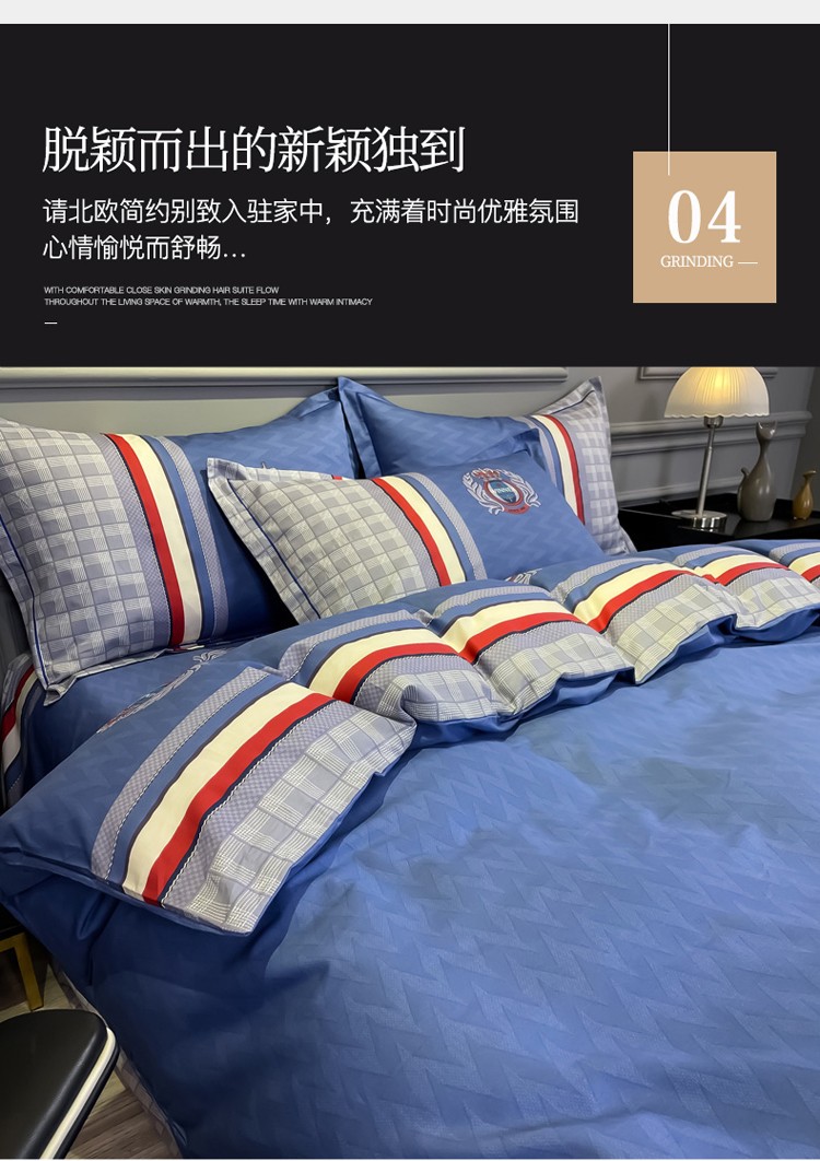 当前位置: 91家纺网 > 商品网购 > 床品套件 > 四件套 > 全棉普通四件套 > 金爱家 2021新款全棉13372四件套条格简约系列 圣卡罗