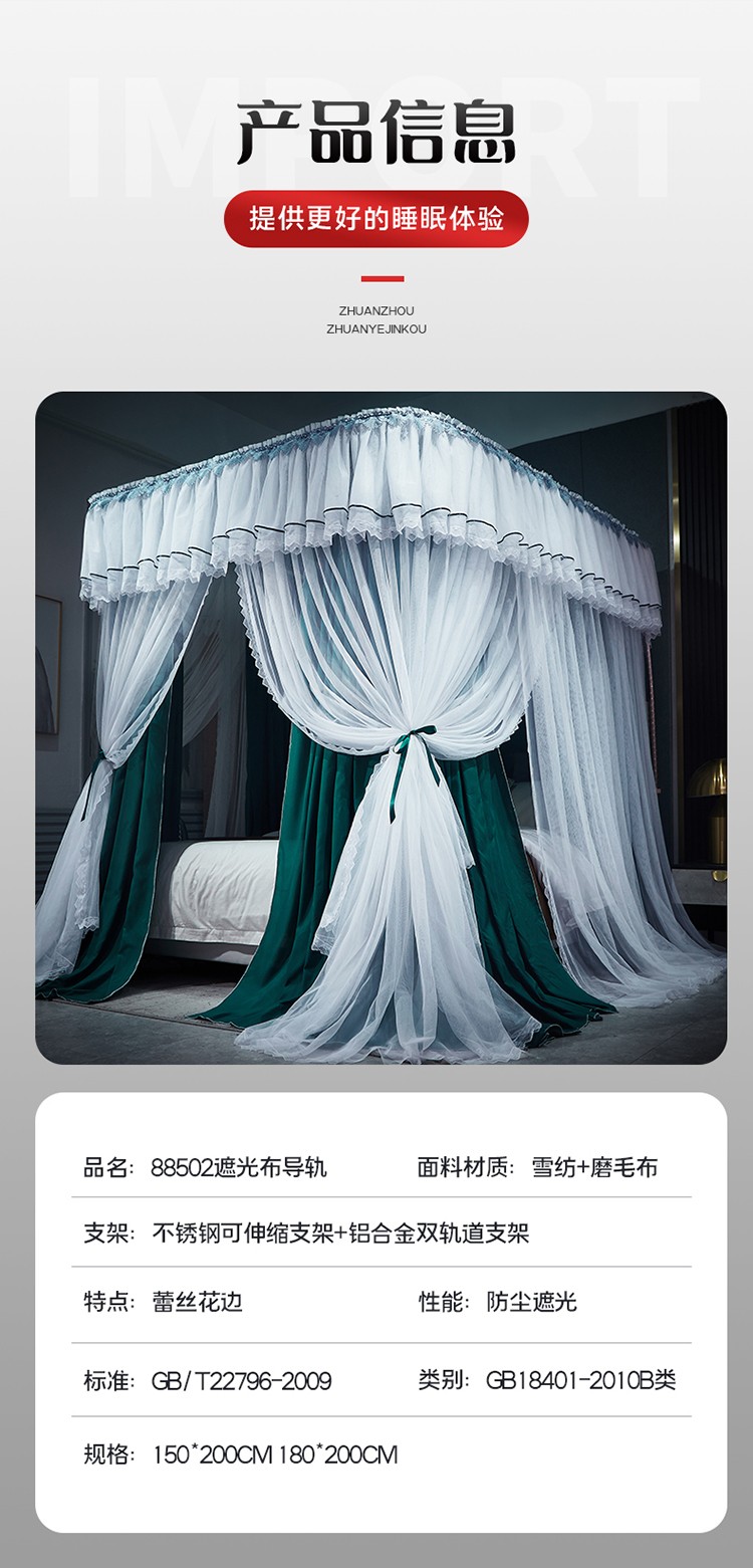 商品名称:夏彩 2023新款88502导轨床帘蚊帐 幸福-墨绿