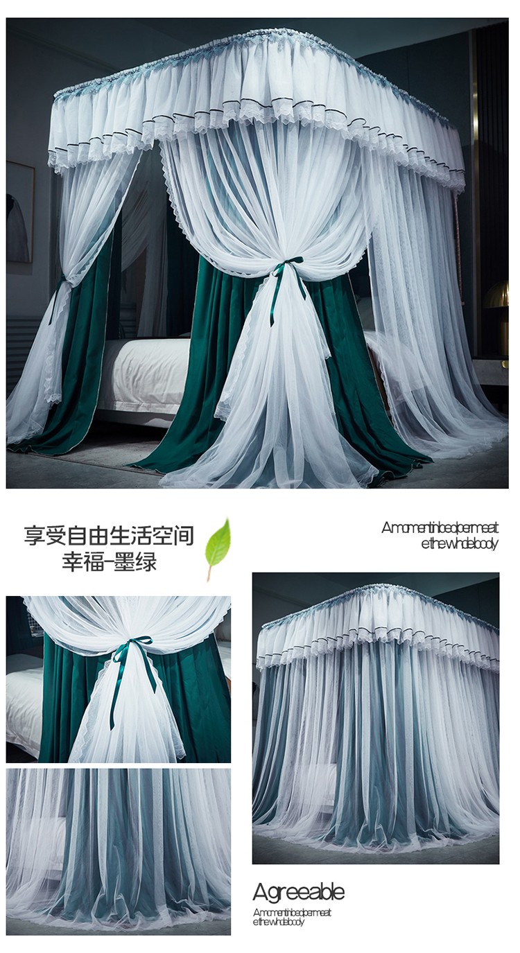 (总)夏彩 2025新款蕾丝U型防摔坐床蚊帐-88630,绿雅灰,藕玉色,香槟色