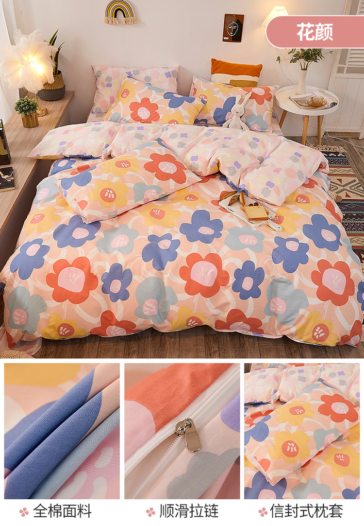 优彩2021新款全棉小清新四件套纯棉三件套花卉系列 花颜