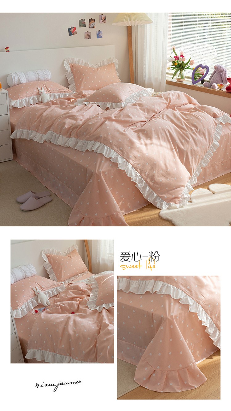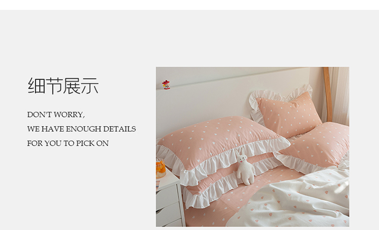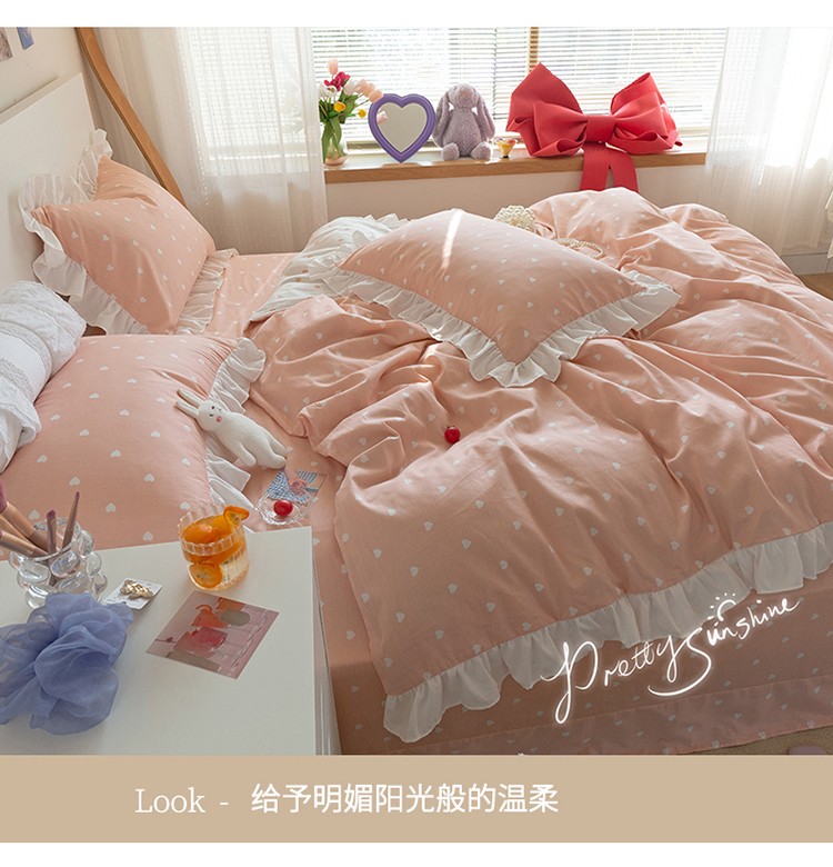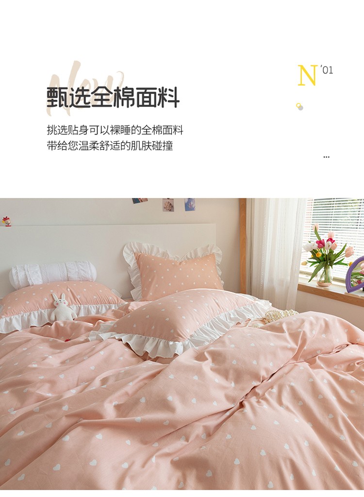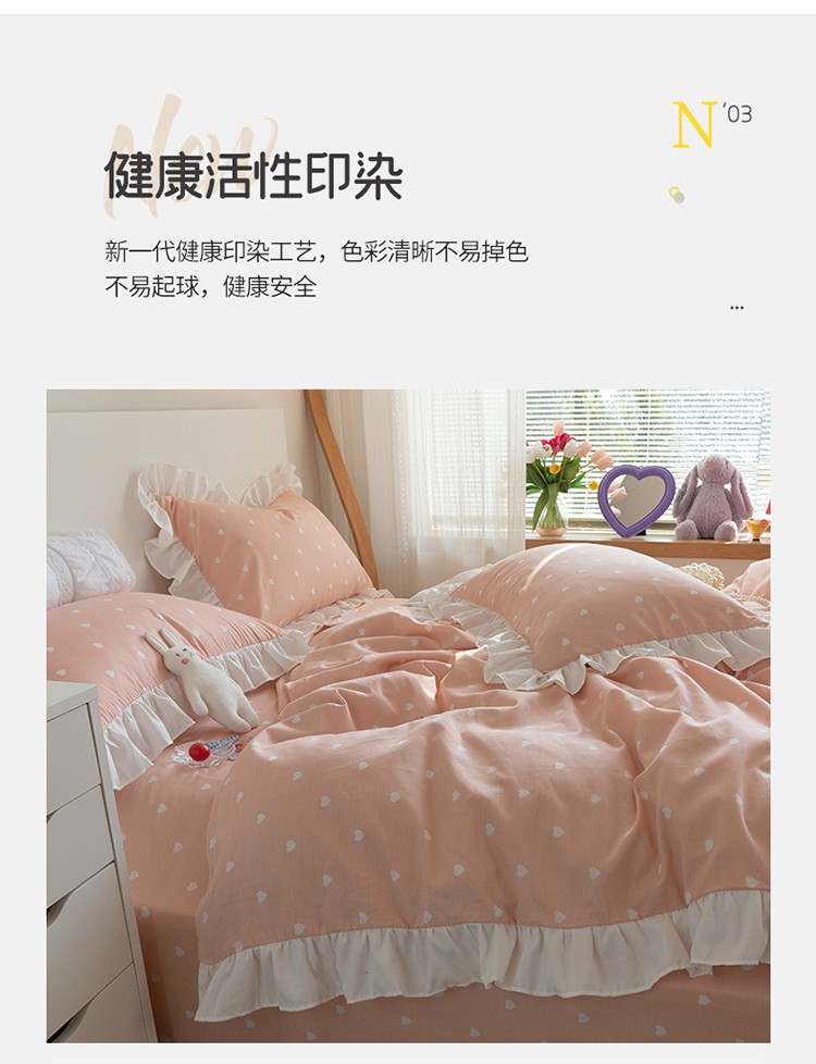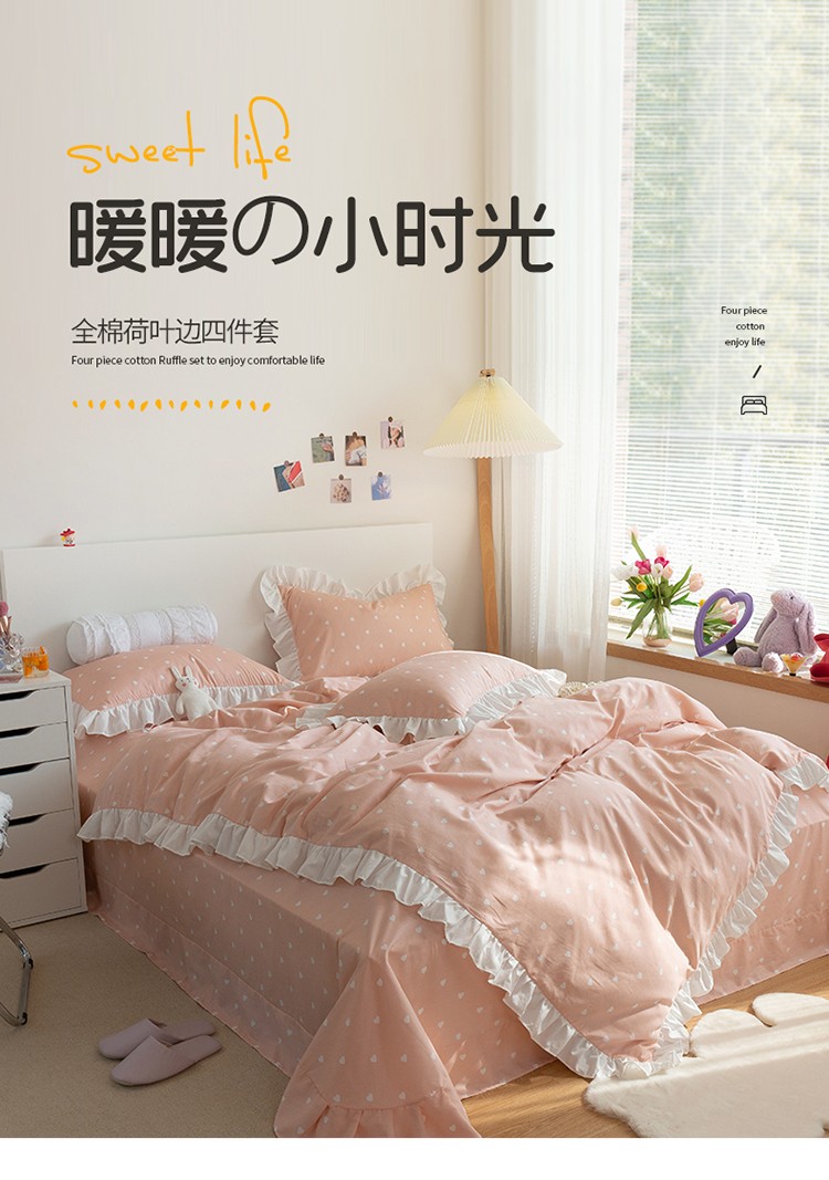 (总)眠屿家纺 2021新款全棉韩版爱心荷叶边四件套