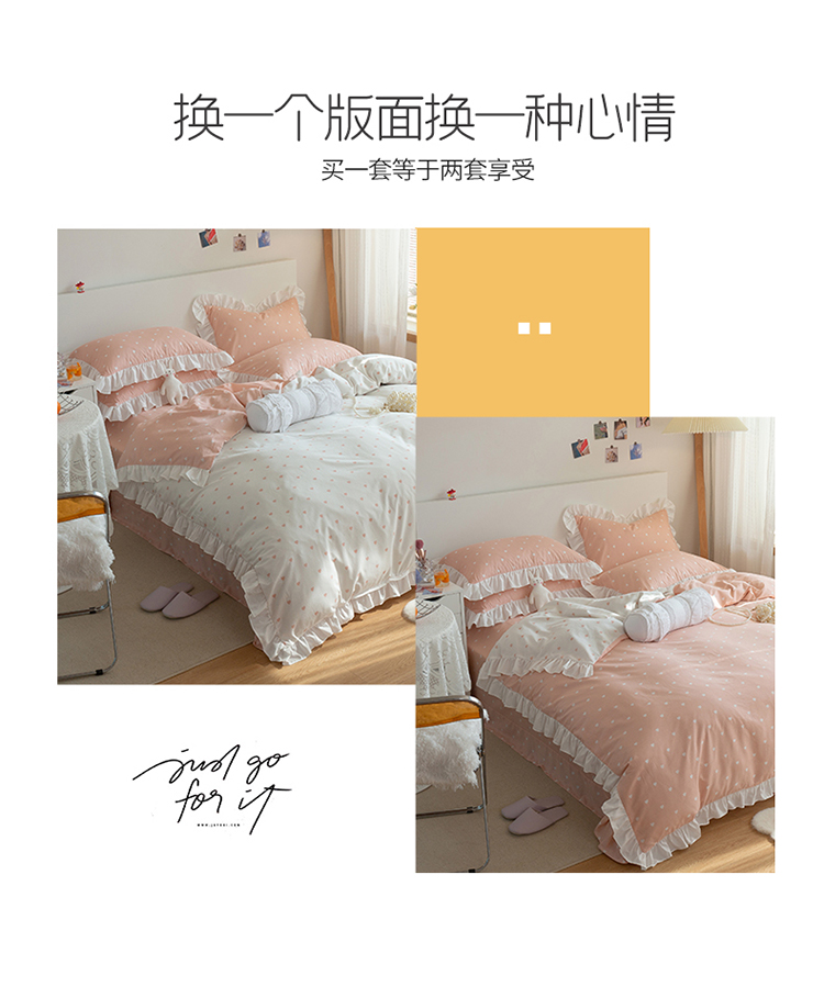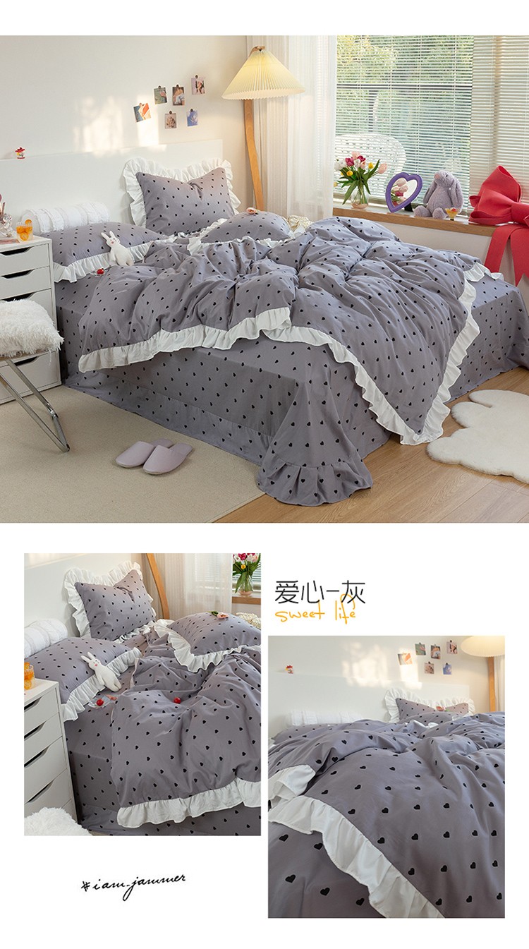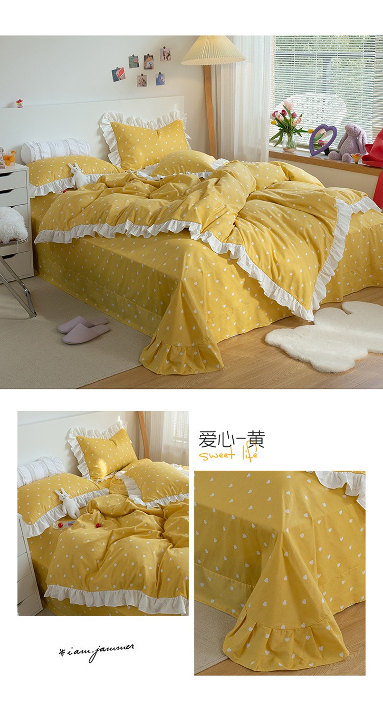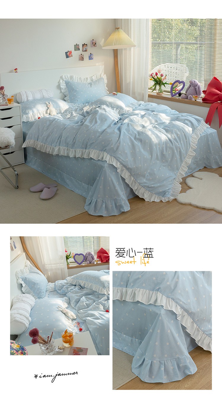 (总)眠屿家纺 2021新款全棉韩版爱心荷叶边四件套