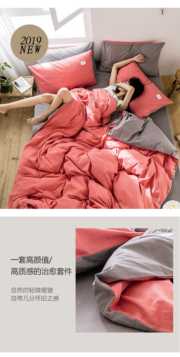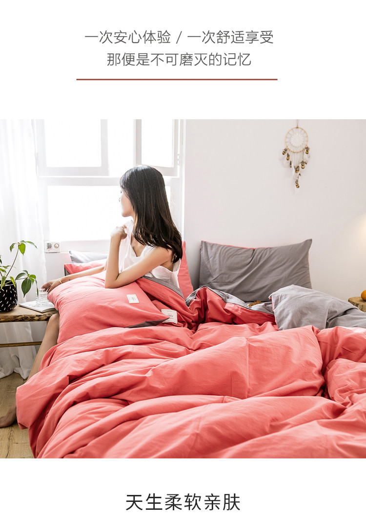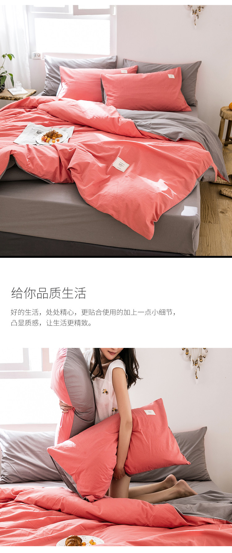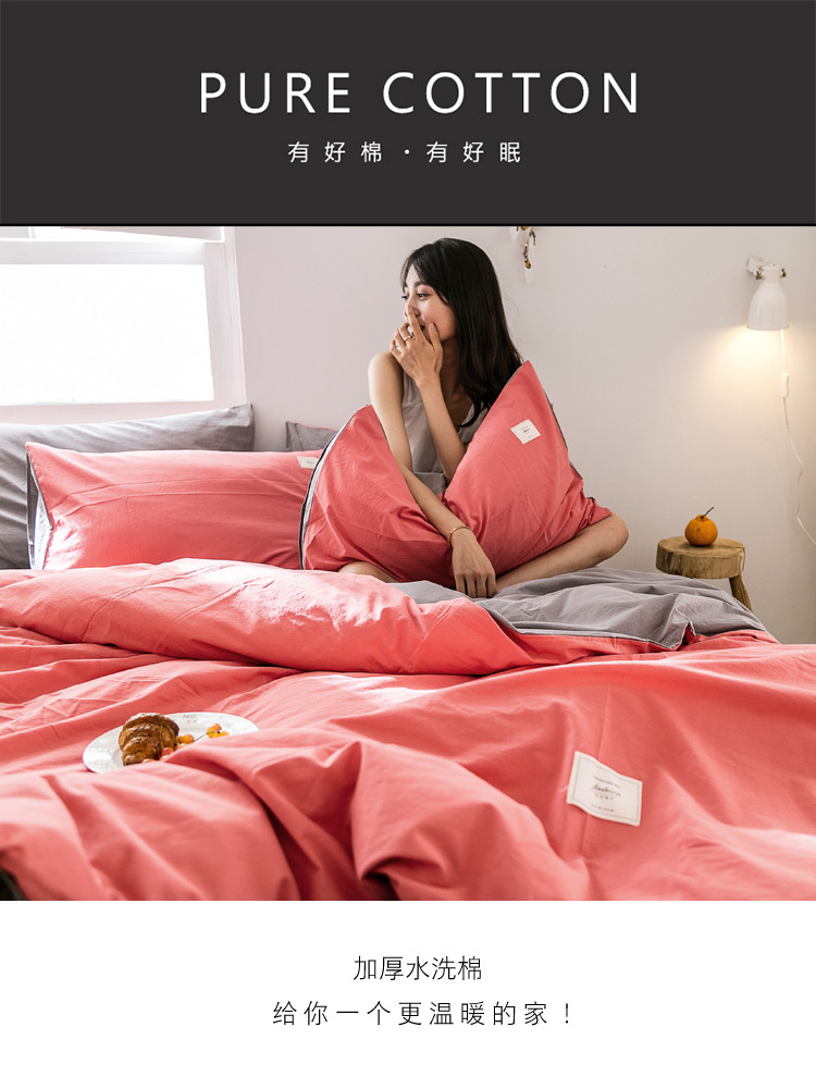 商品名称:雅居纺 2022新款全棉水洗棉四件套 珊瑚红+绅士灰