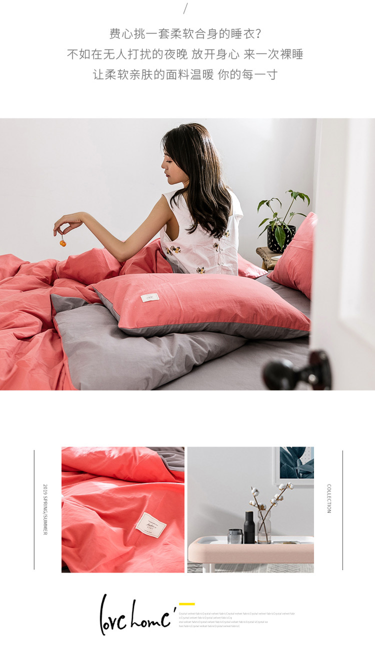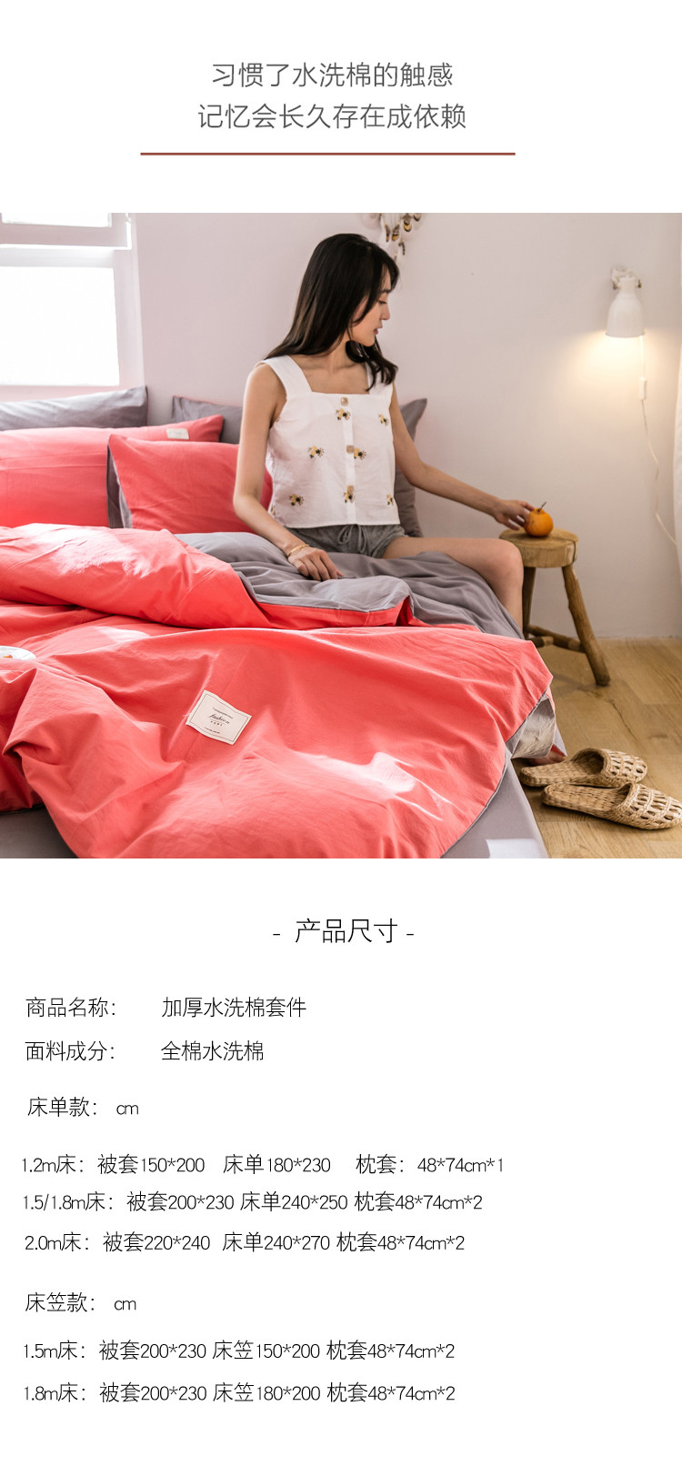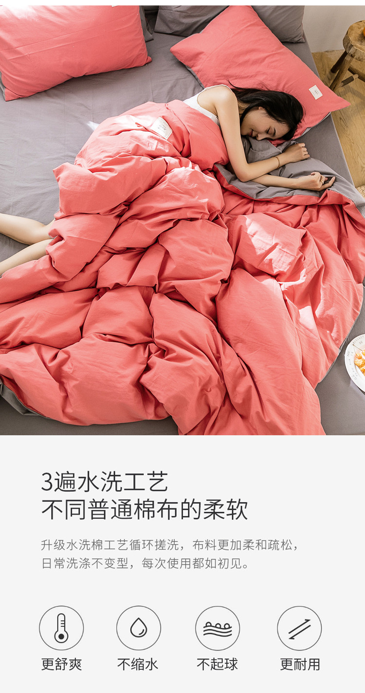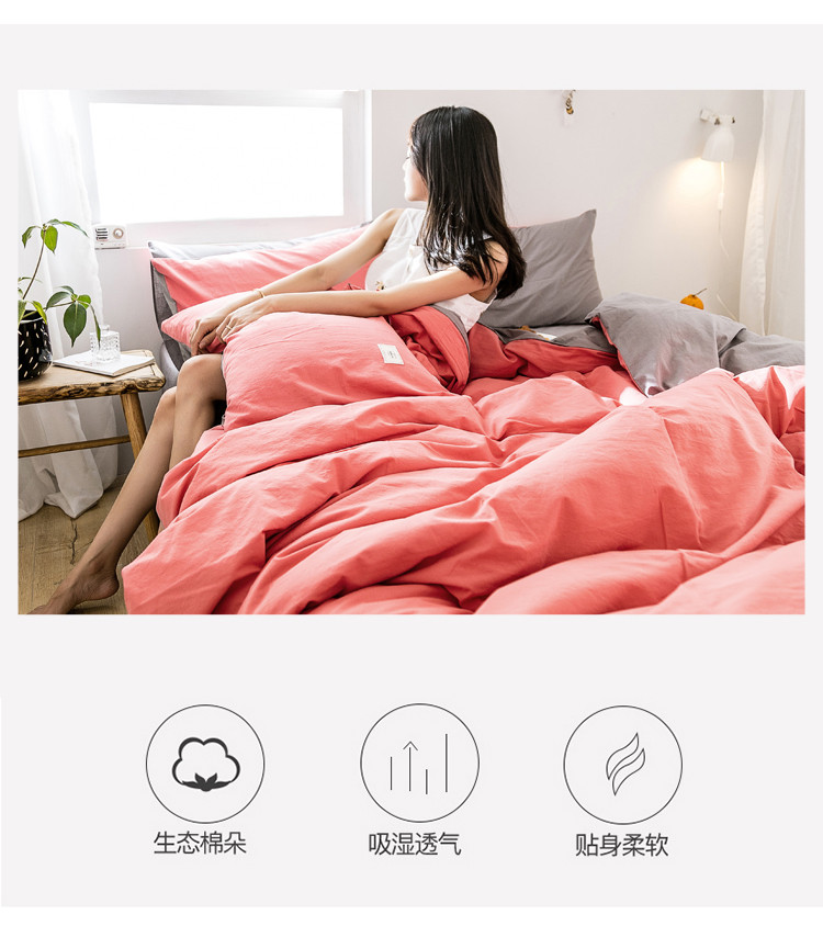 商品名称:雅居纺 2022新款全棉水洗棉四件套 珊瑚红+绅士灰