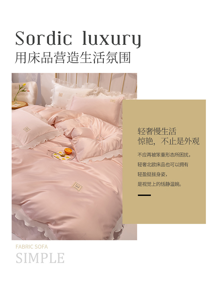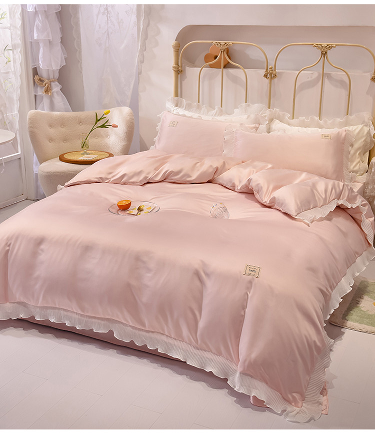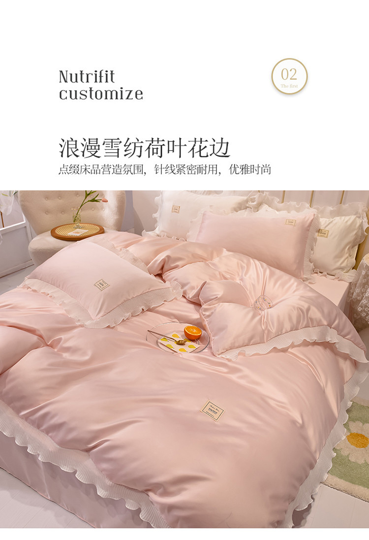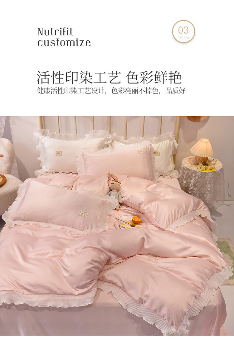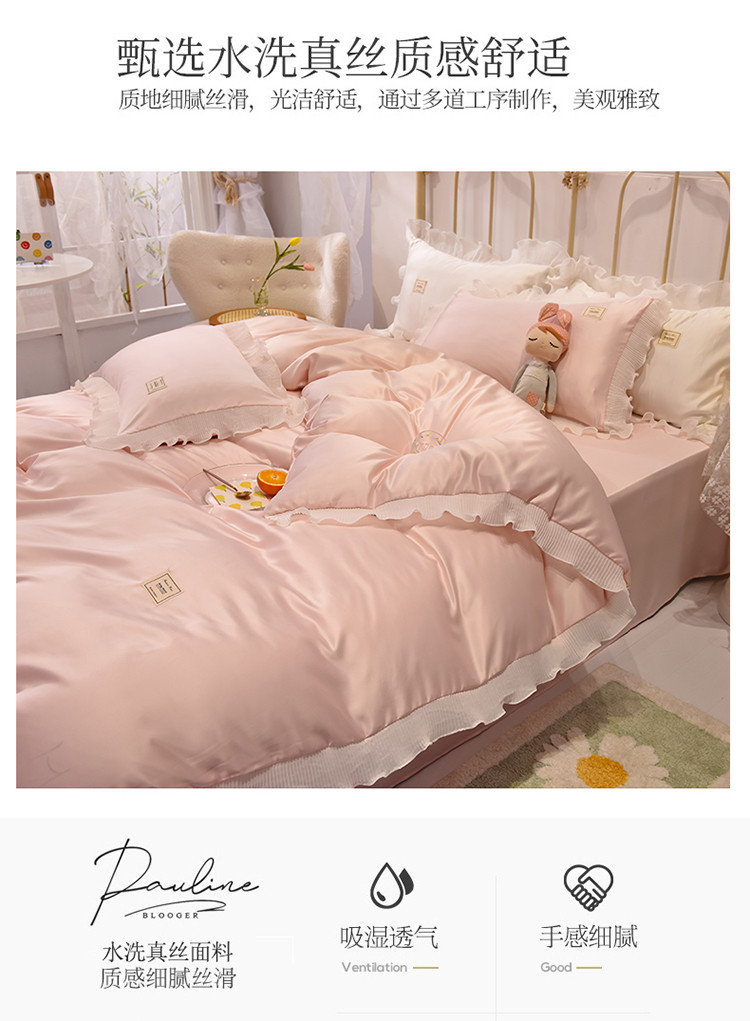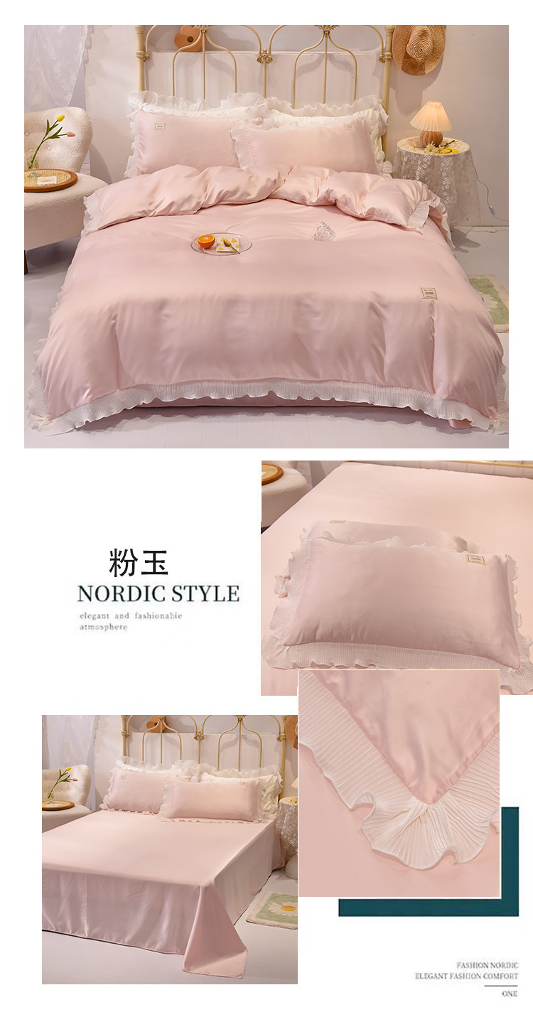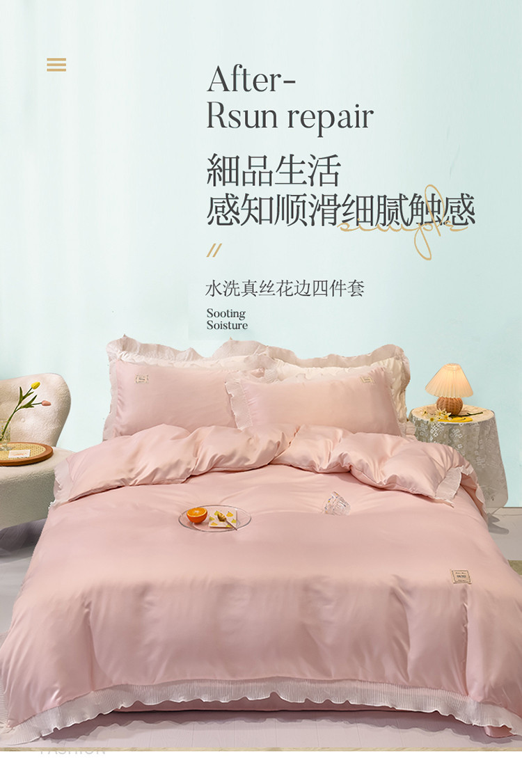 当前位置: 91家纺网 > 商品网购 > 床品套件 > 四件套 > 化纤普通四件套 > 艾米 2025新款水洗真丝雪纺花边揽梦系列四件套 粉玉