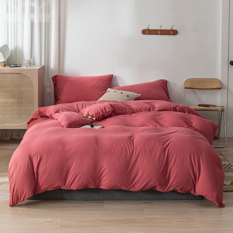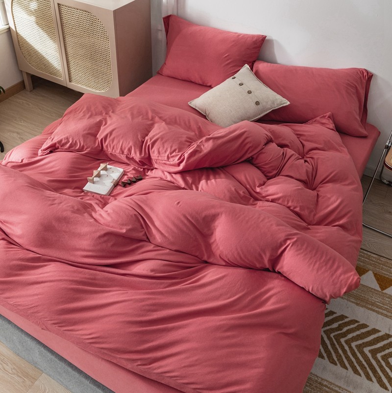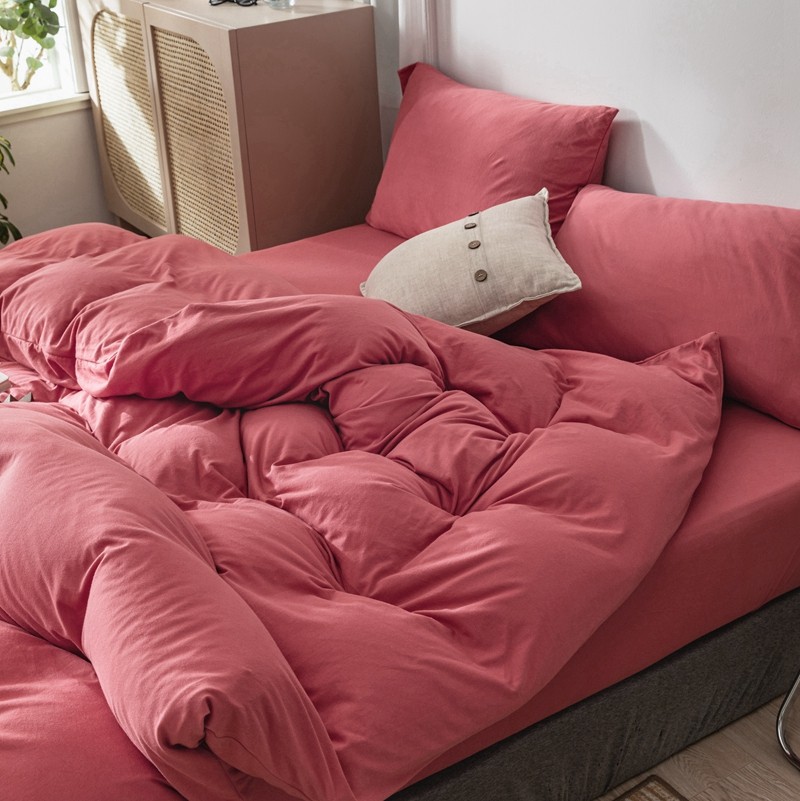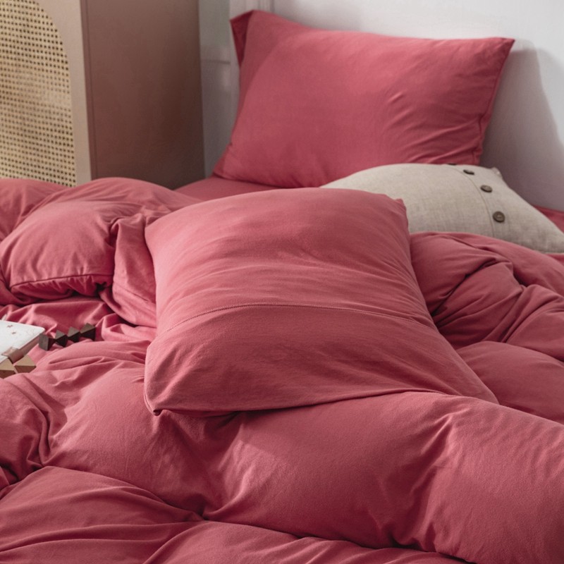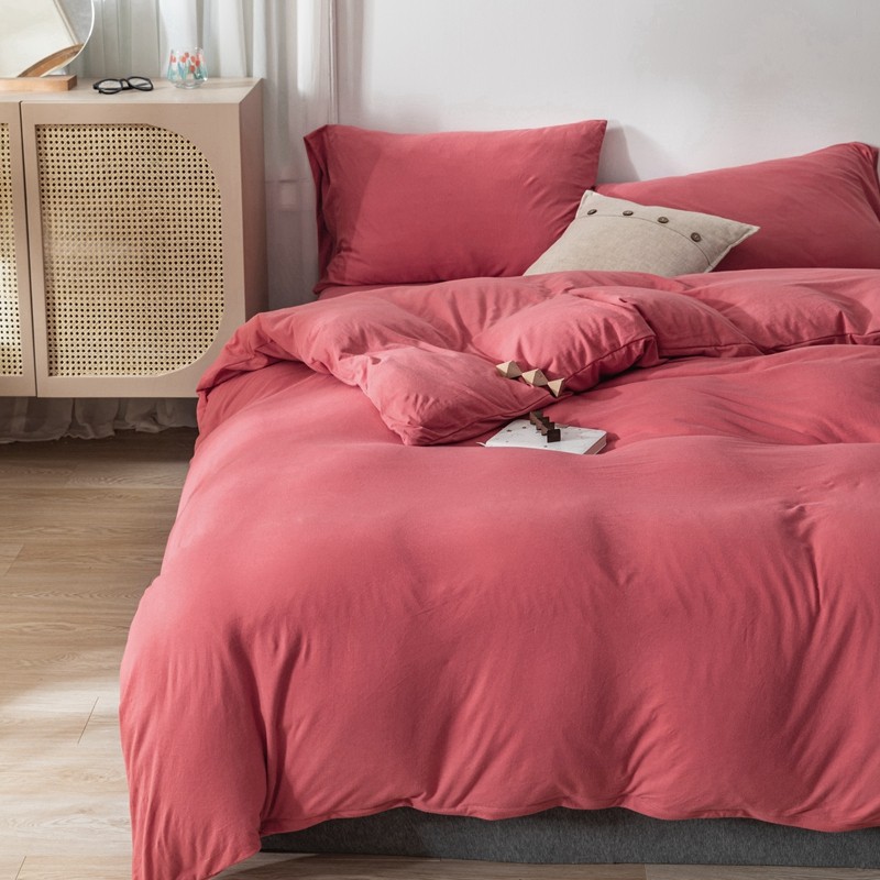 商品名称:简煦 2025新款针织印染纯色四件套 印-西瓜红
