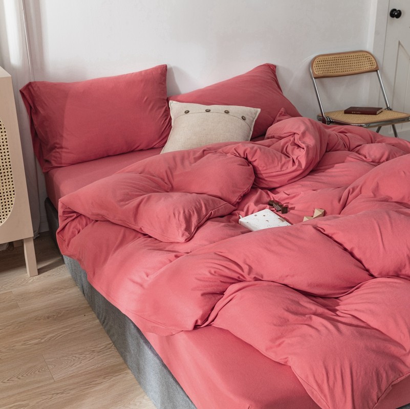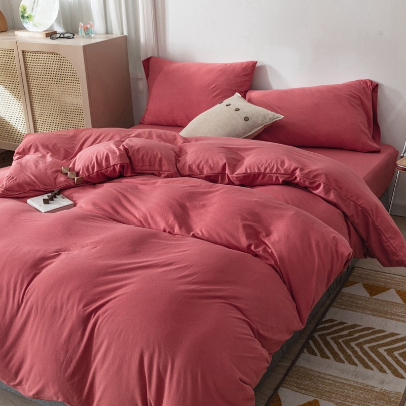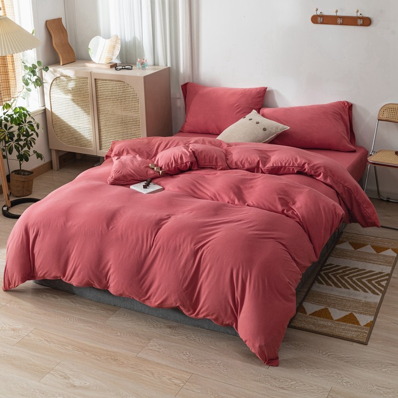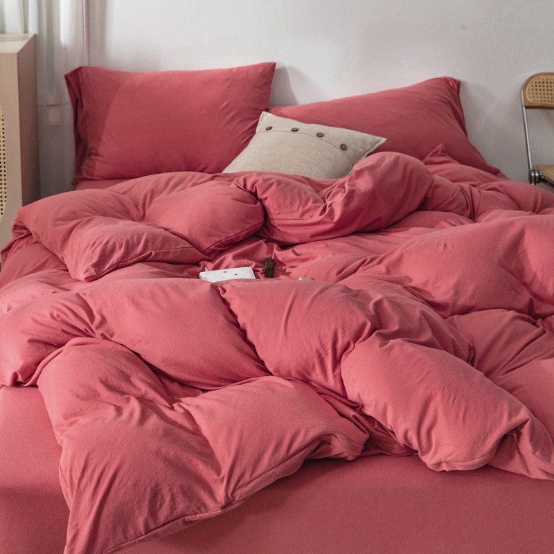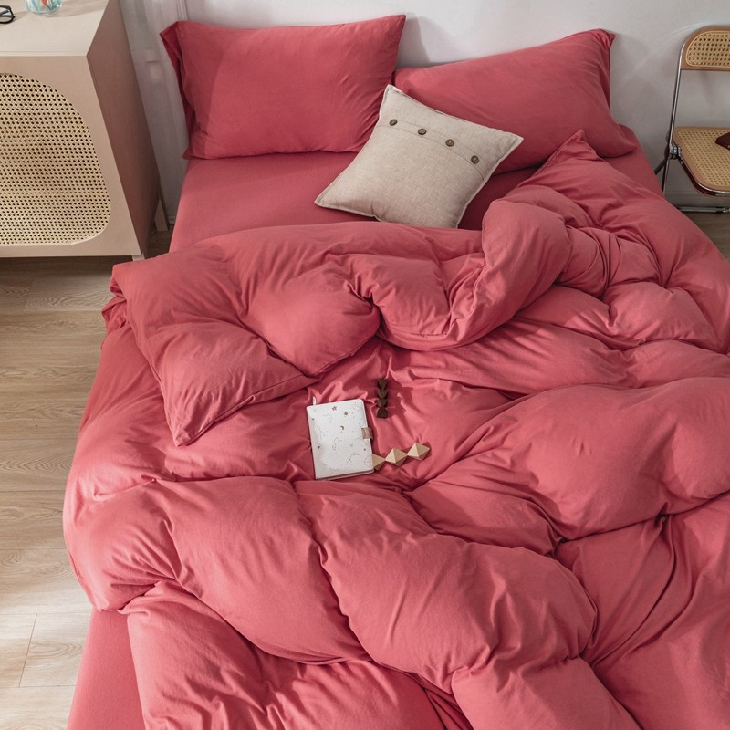 商品名称:简煦 2025新款针织印染纯色四件套 印-西瓜红