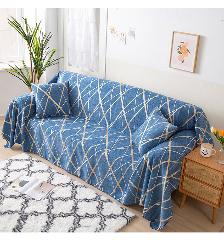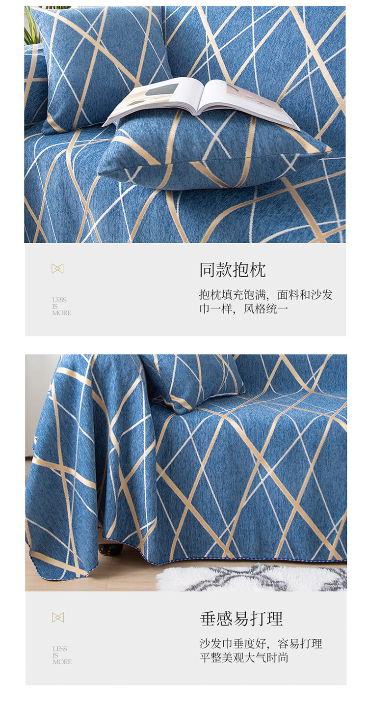 当前位置: 91家纺网 > 商品网购 > 居家布艺 > 坐垫/椅垫/沙发垫 > 沙发垫 > 启博家纺 2021全盖雪尼尔沙发巾沙发垫沙发套沙发罩 蓝色线条
