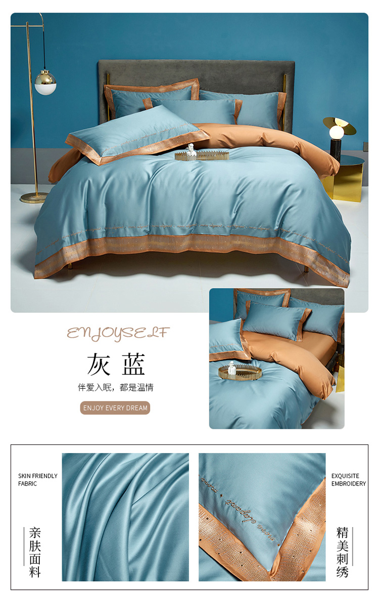 (总)爱缦 新款60支莱赛尔四件套-至真系列,蓝米驼,米白粉,浅紫,玉粉