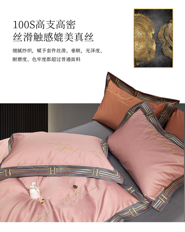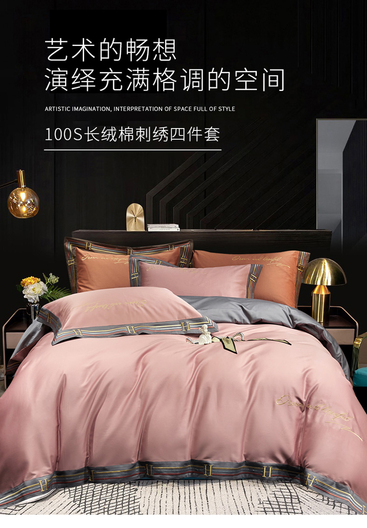 商品名称:爱缦 2021新款罗曼尼系列100支长绒棉奥棉四件套 藕粉