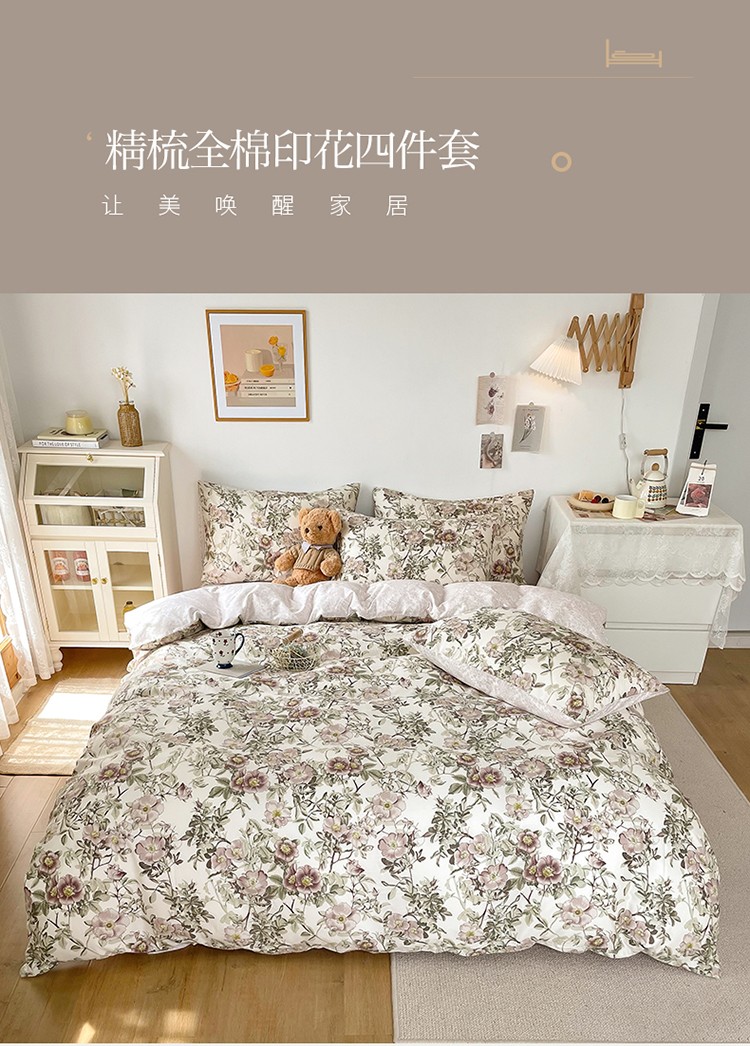 (总)沐棉家居 2025新款全棉印花四件套,安娜花园,春风慕颜,春色满园,淡香花语,蝴蝶结,花梦,可爱熊猫,露丝,嘻嘻兔,幸福小兔,优雅花朵,紫花小羊,紫藤蔓蔓