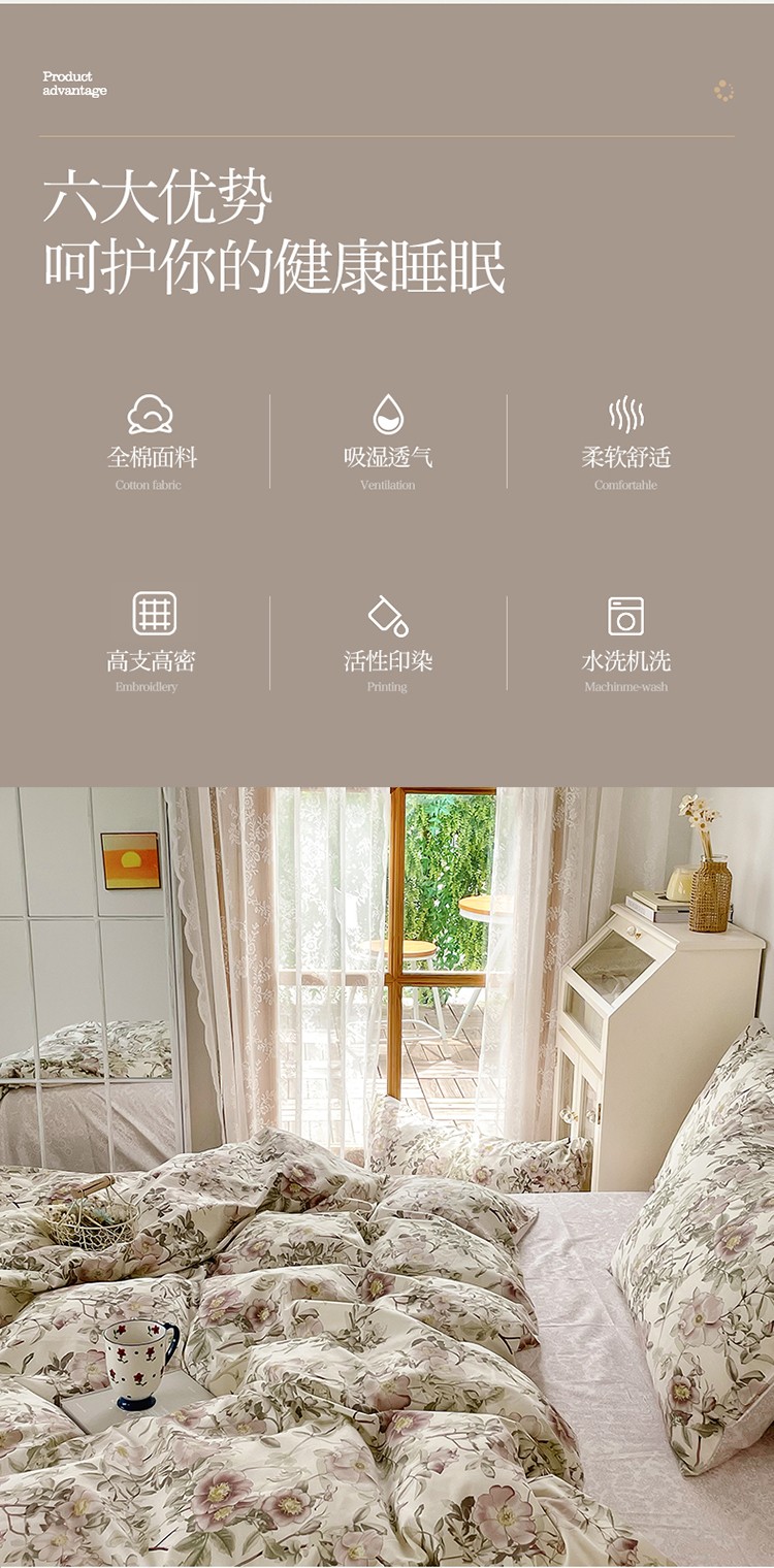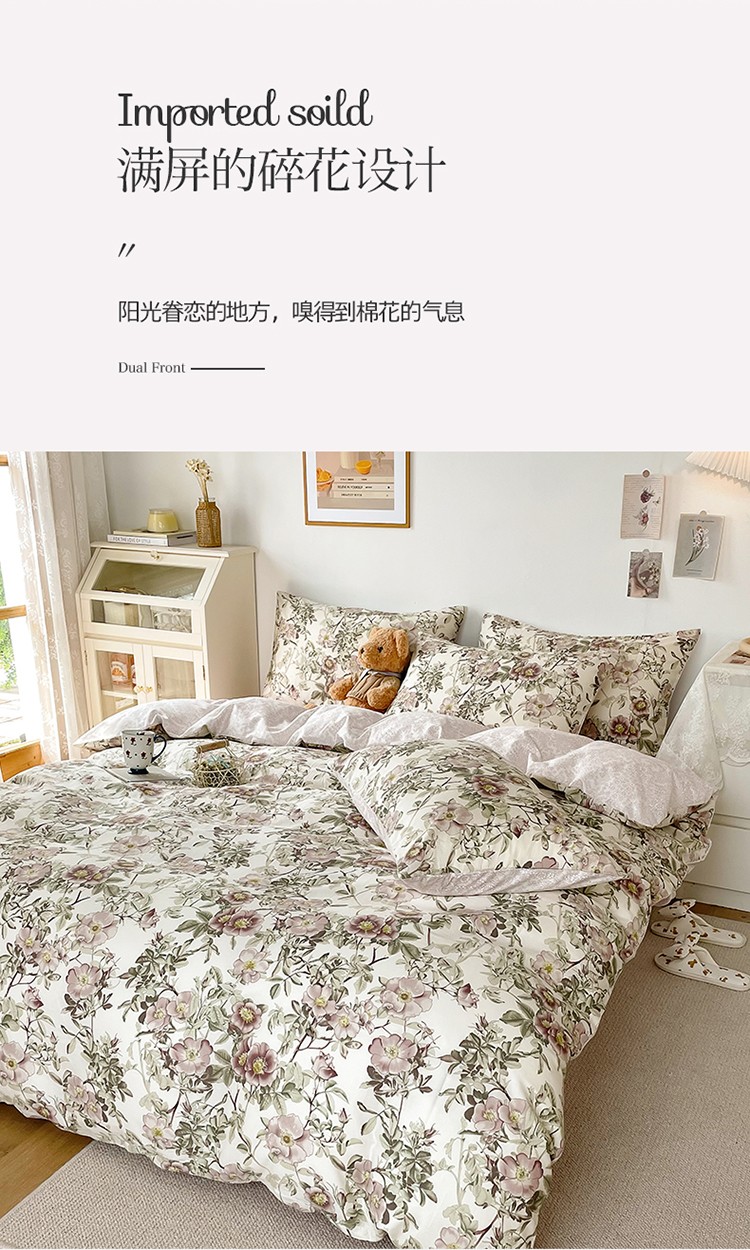 商品名称:沐棉 2021新款13370全棉印花四件套-花园 风铃
