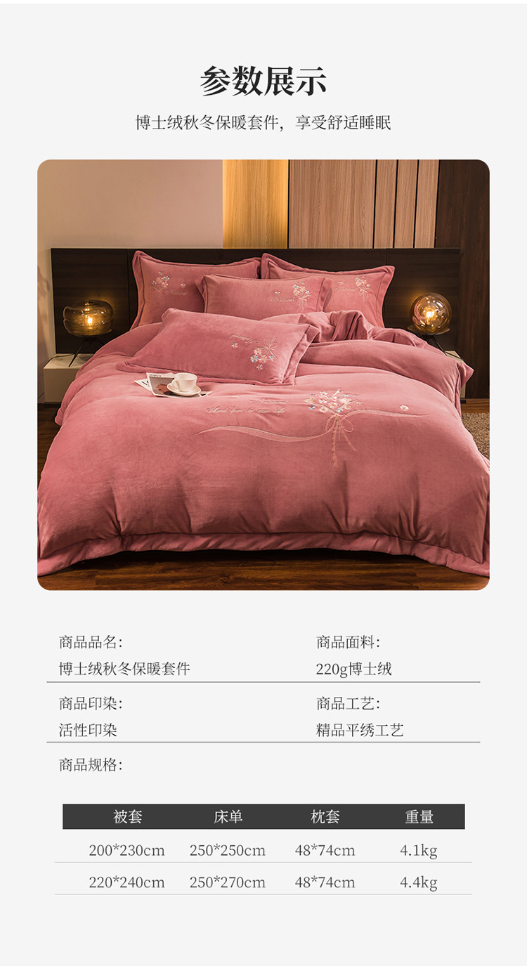 (总)绒博士 2025新款220g高克重博士绒秋冬保暖四件套--倾城之恋,倾城之恋 幽兰,倾城之恋 粉色,倾城之恋 香芋紫,倾城之恋-豆沙,倾城之恋-青兰绿,倾城之恋-大红