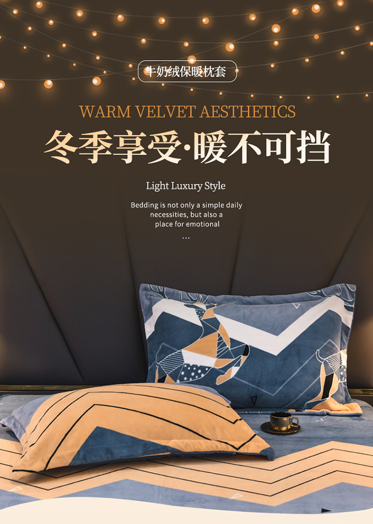 锦罗绣 2021新款牛奶绒印花单品枕套一对奔腾鹿