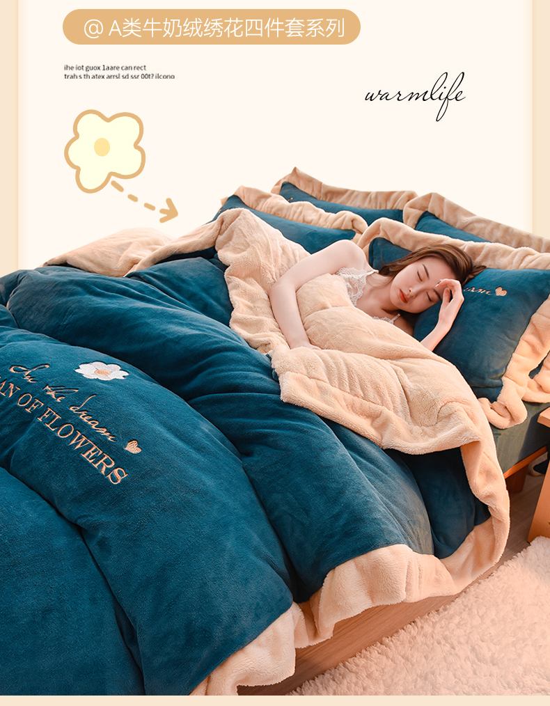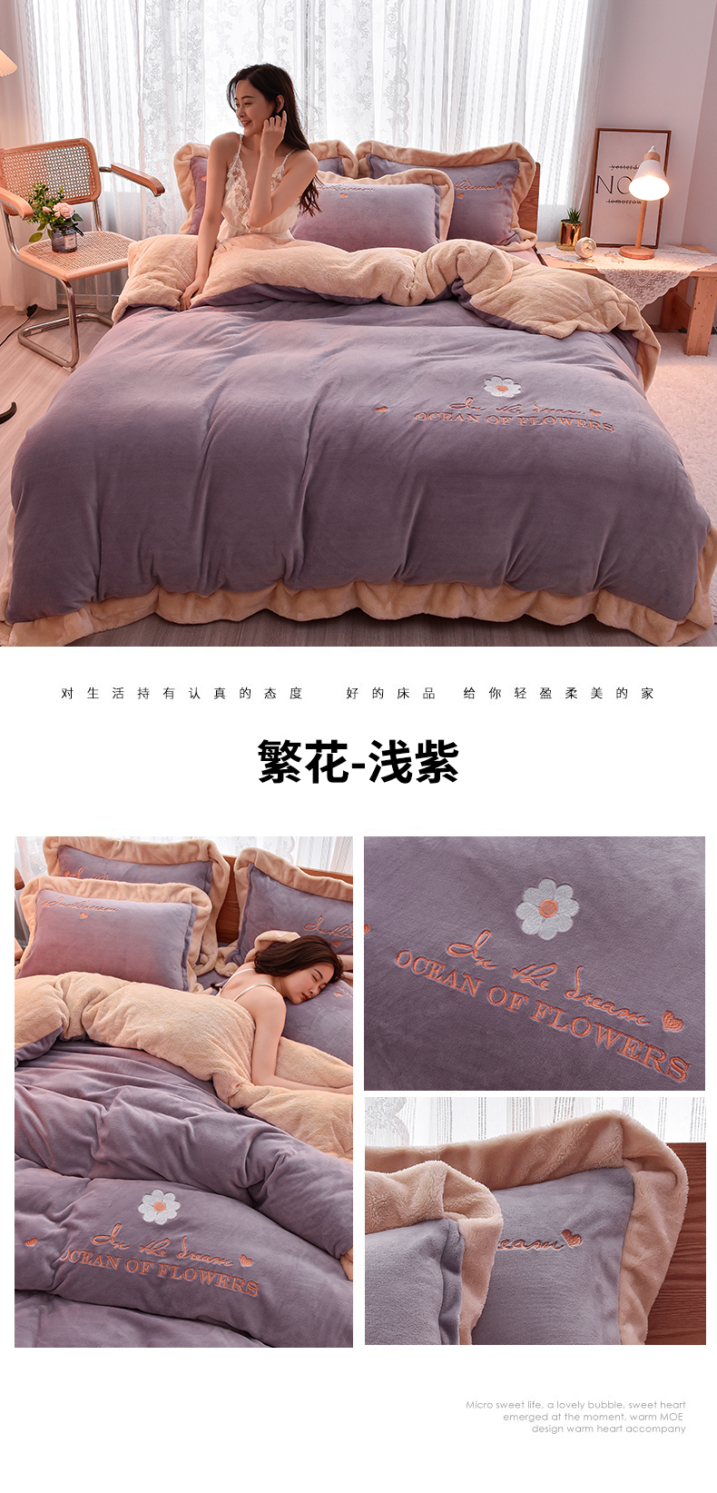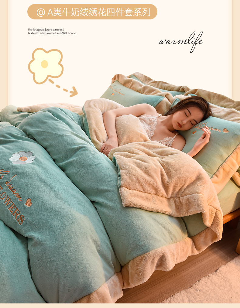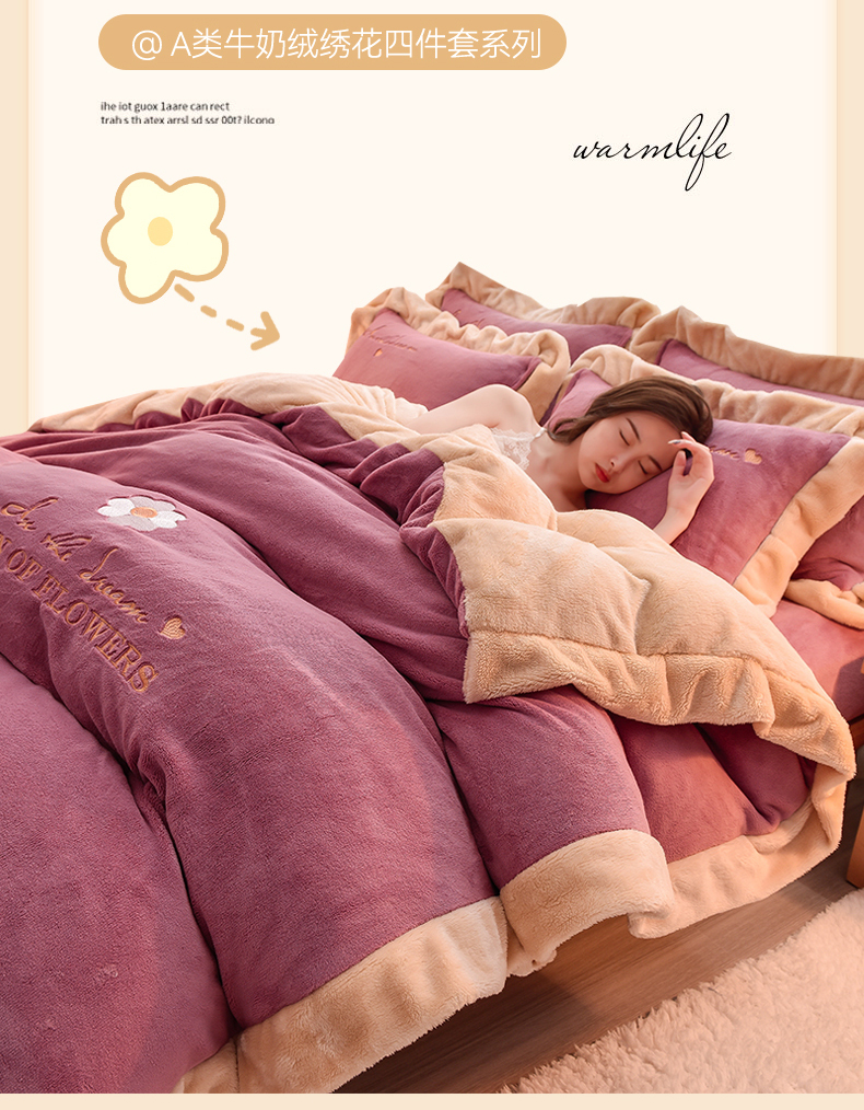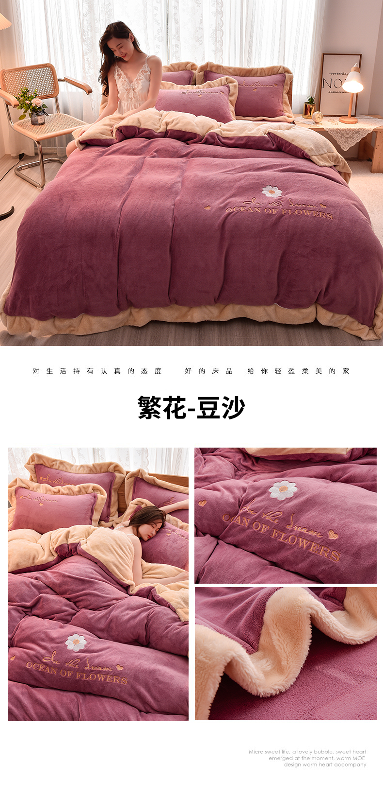 (总)笙意 新款牛奶绒刺绣四件套-繁花系列