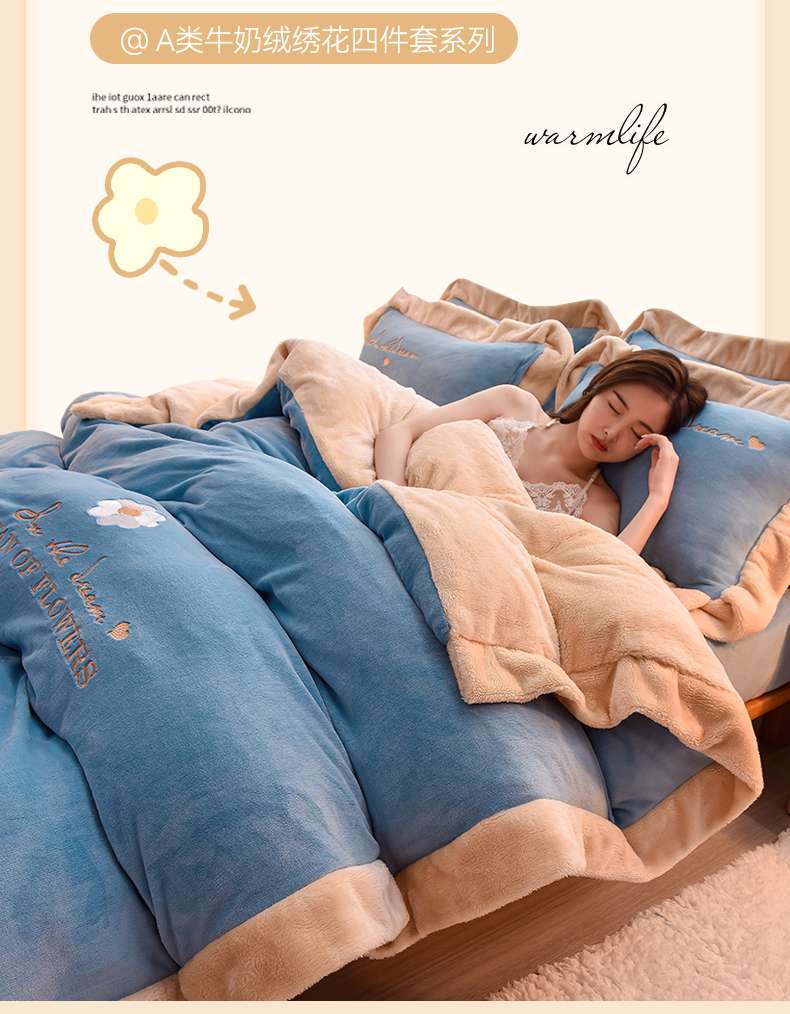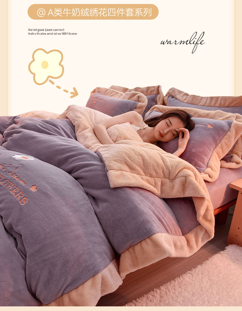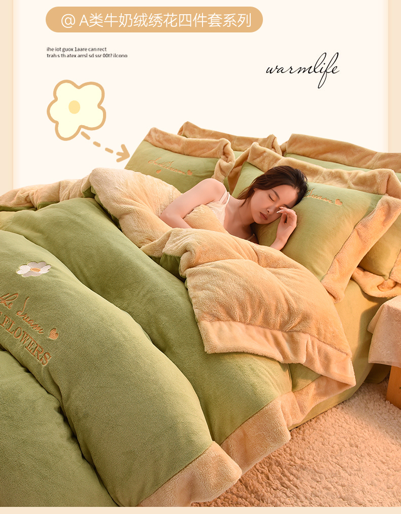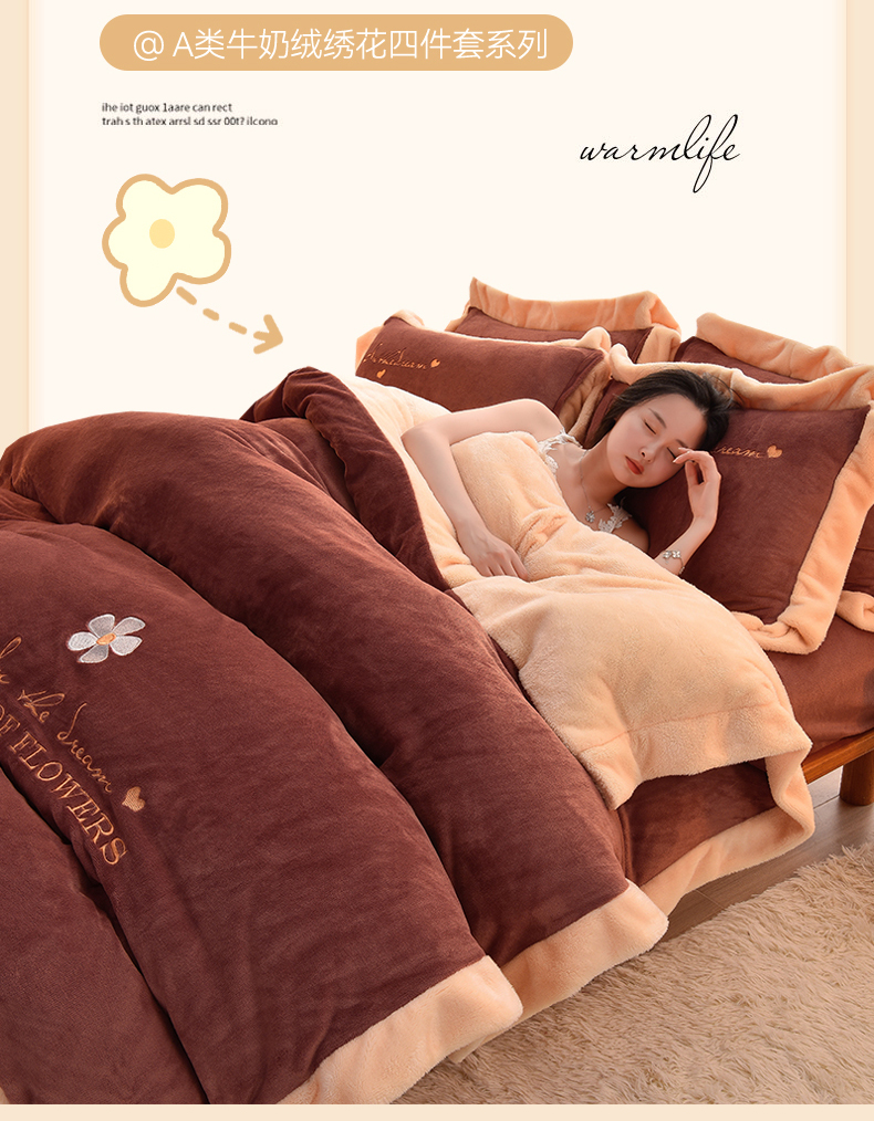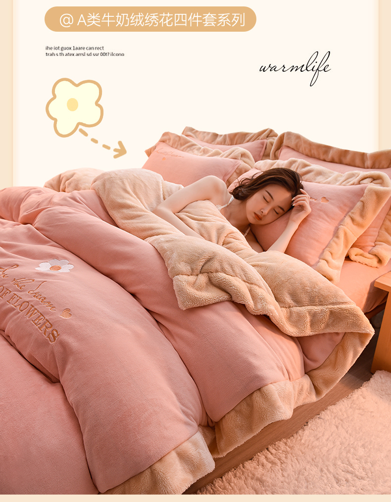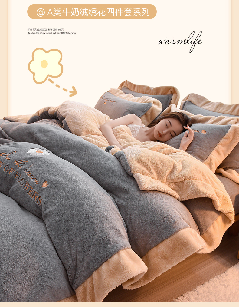 (总)笙意 新款牛奶绒刺绣四件套-繁花系列