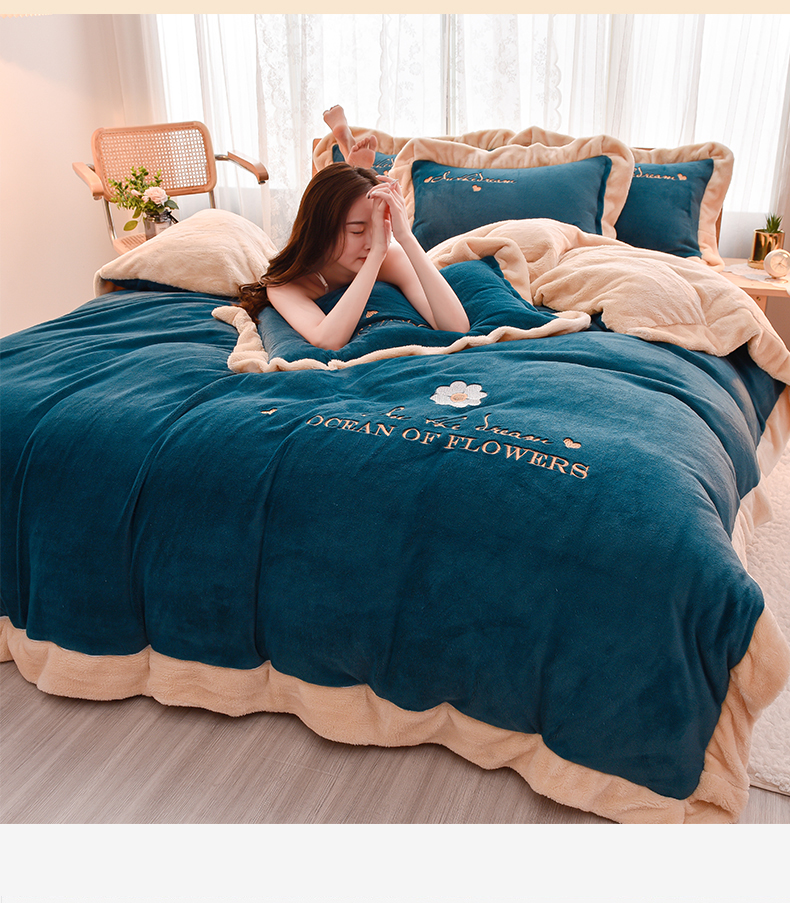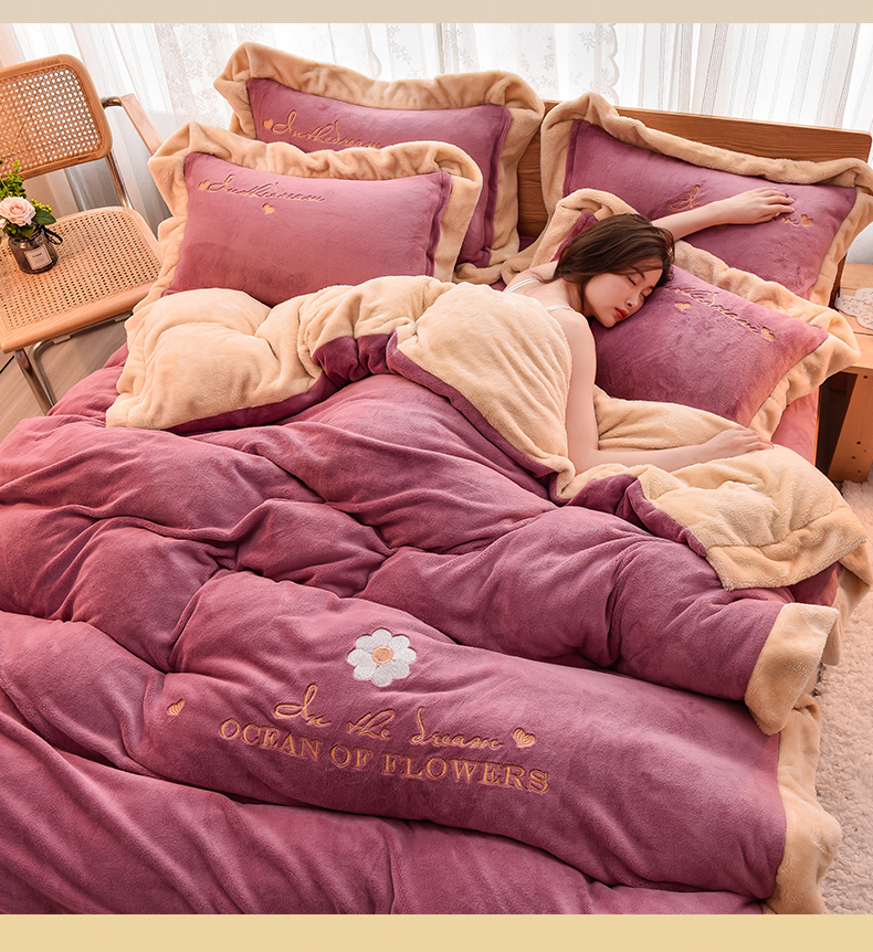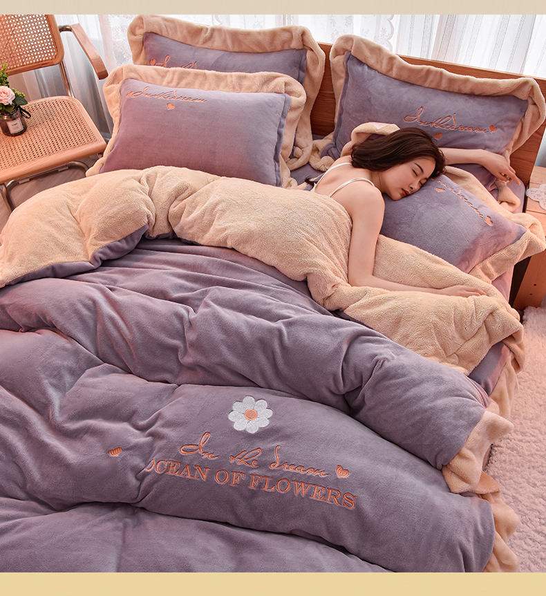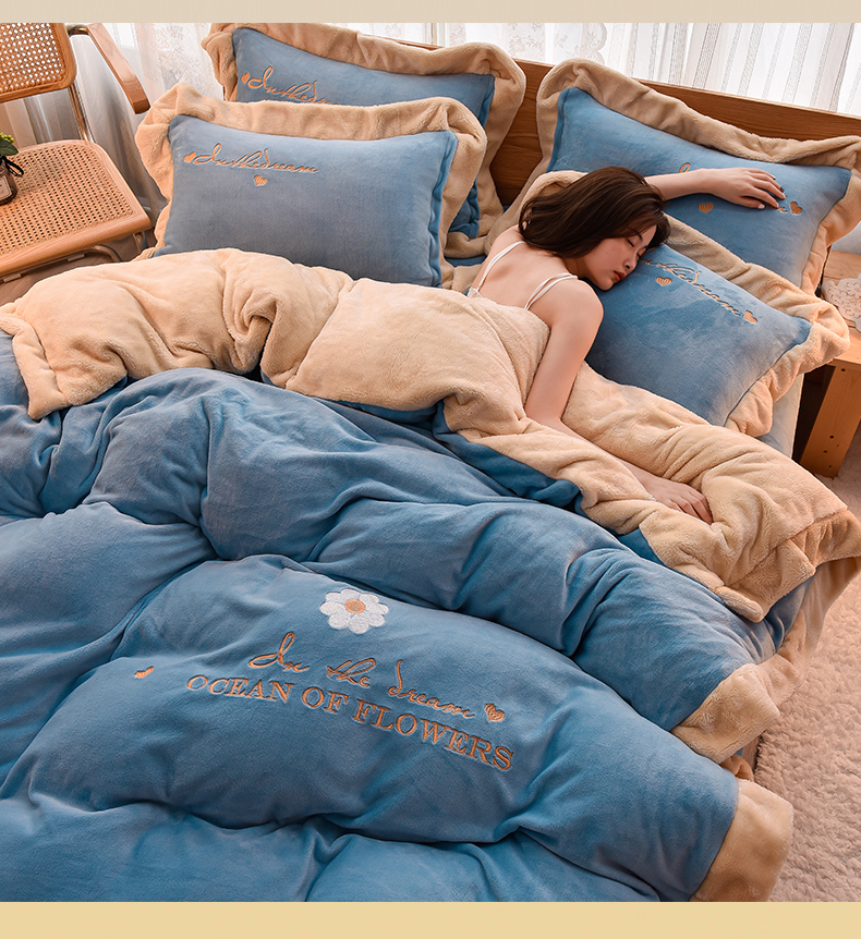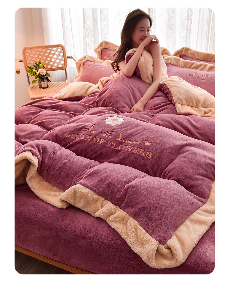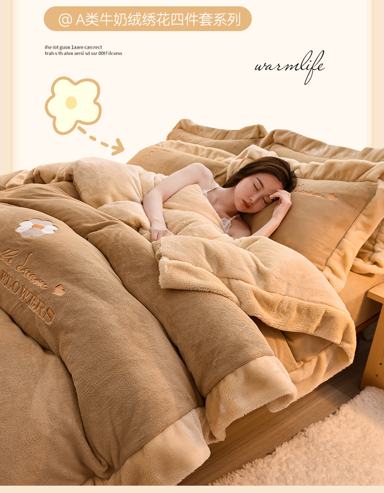 (总)笙意 新款牛奶绒刺绣四件套-繁花系列