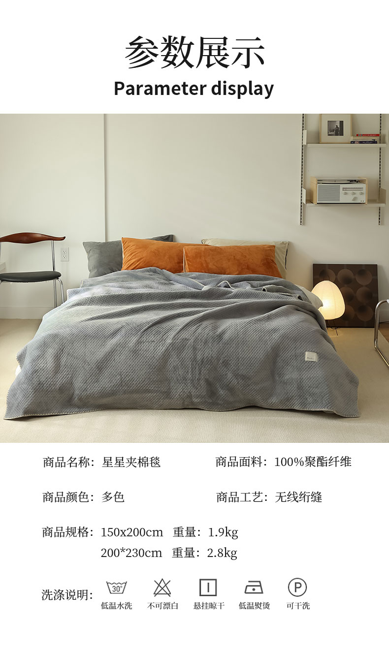 商品名称:法芙娜家纺 超声波牛奶绒毛毯 星星毯 绅士灰