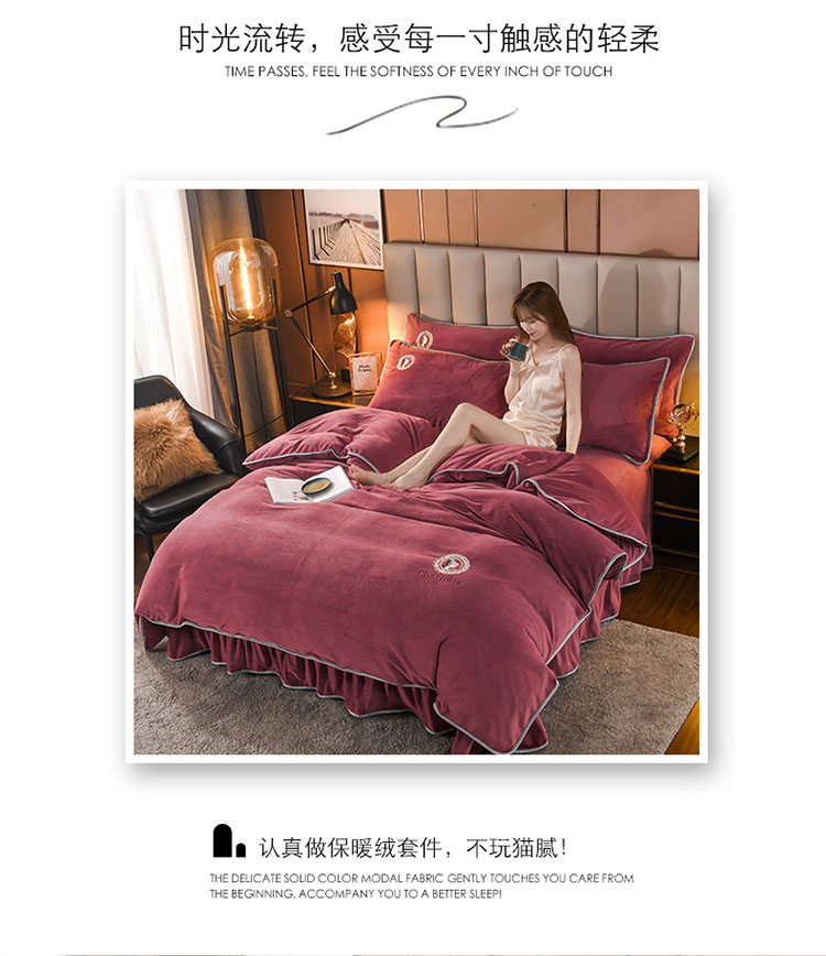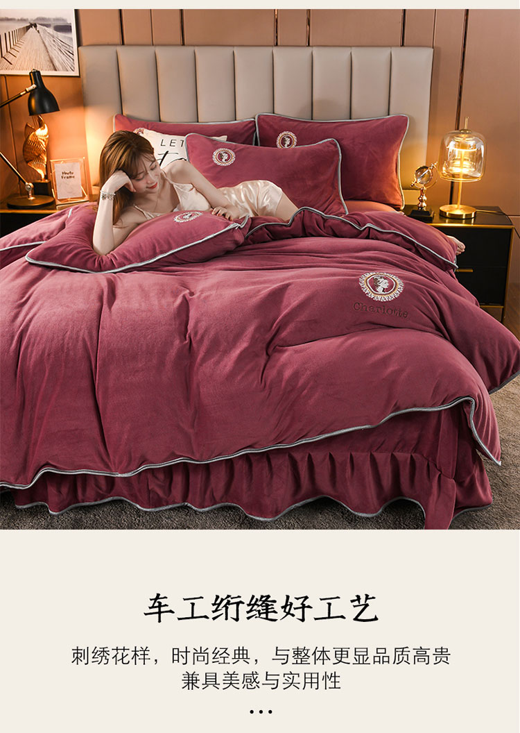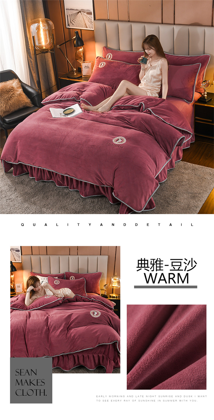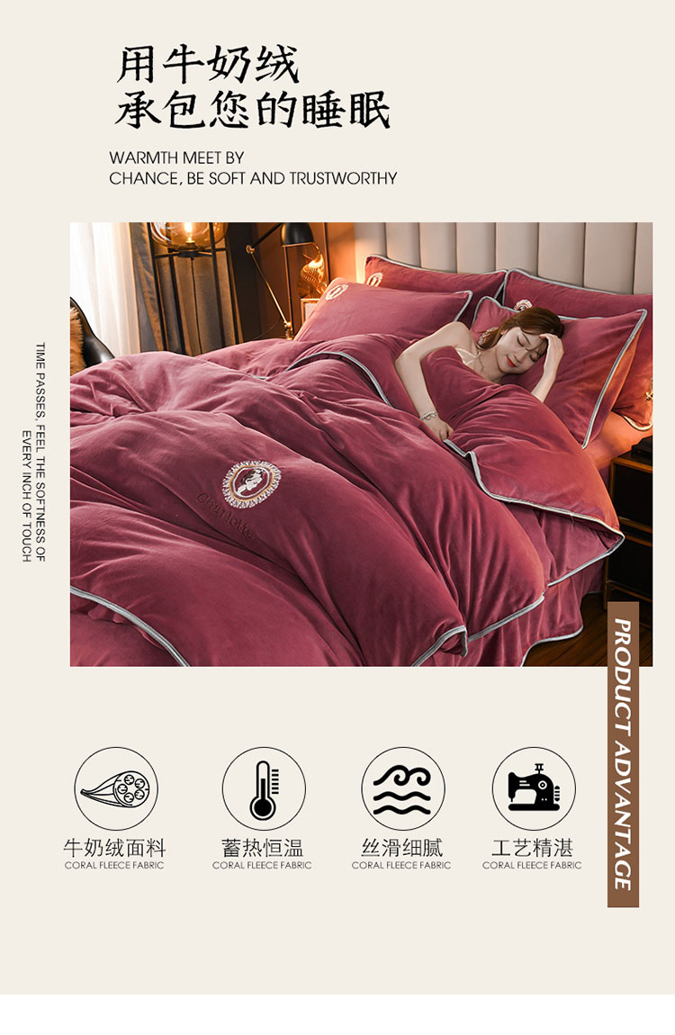 商品名称:迷仙巢 2021新款牛奶绒系列四件套典雅 典雅-豆沙