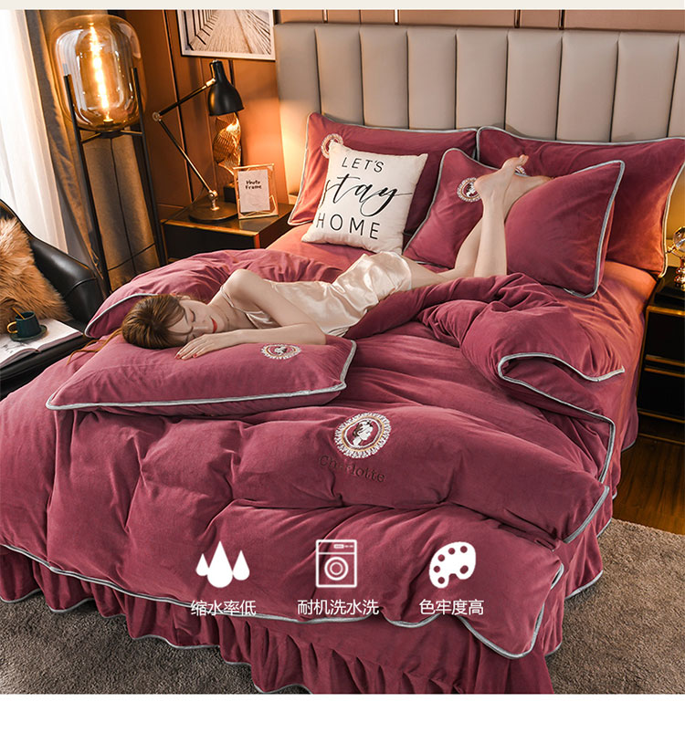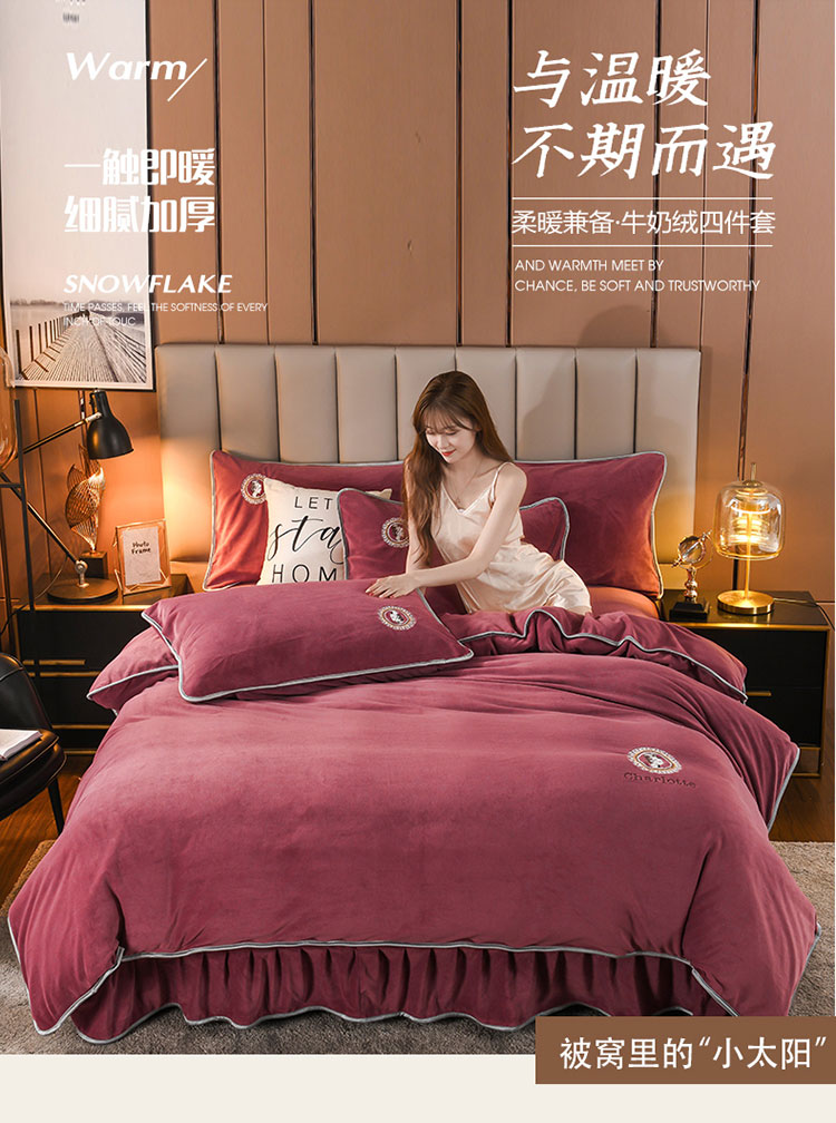 迷仙巢 2021新款牛奶绒系列四件套典雅 典雅-豆沙