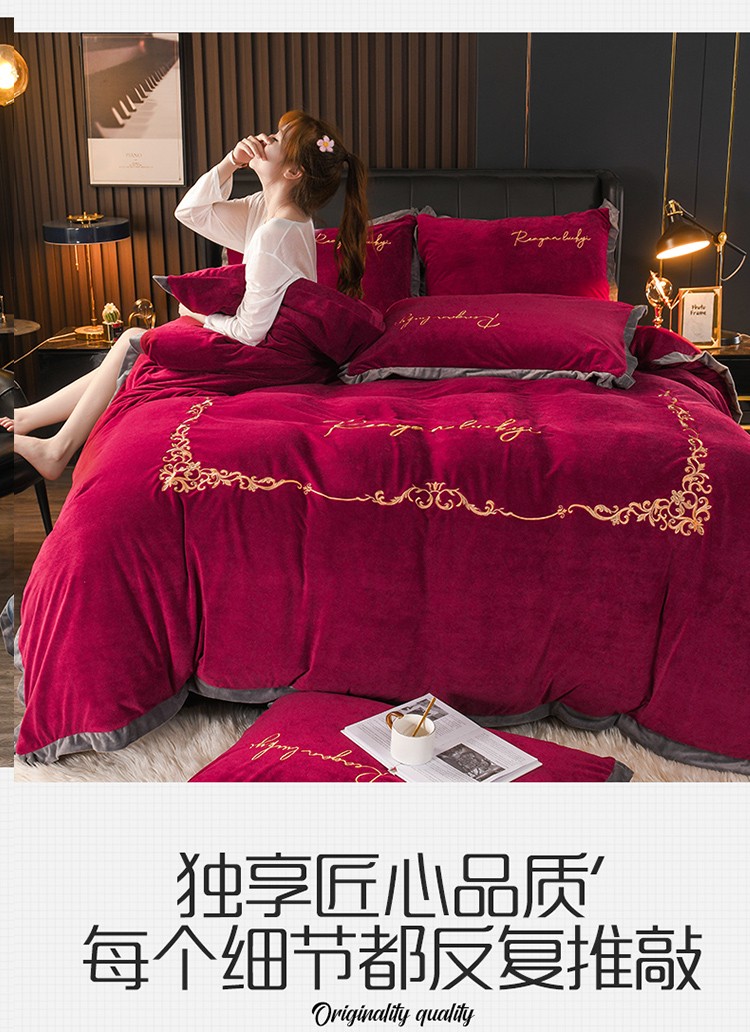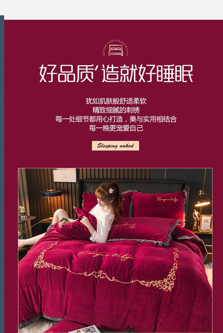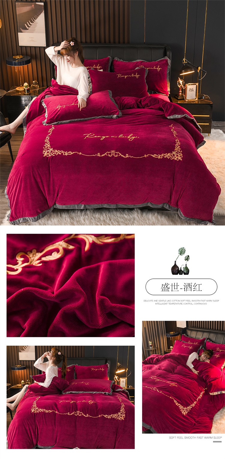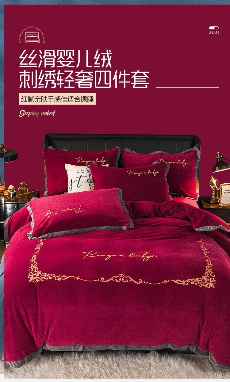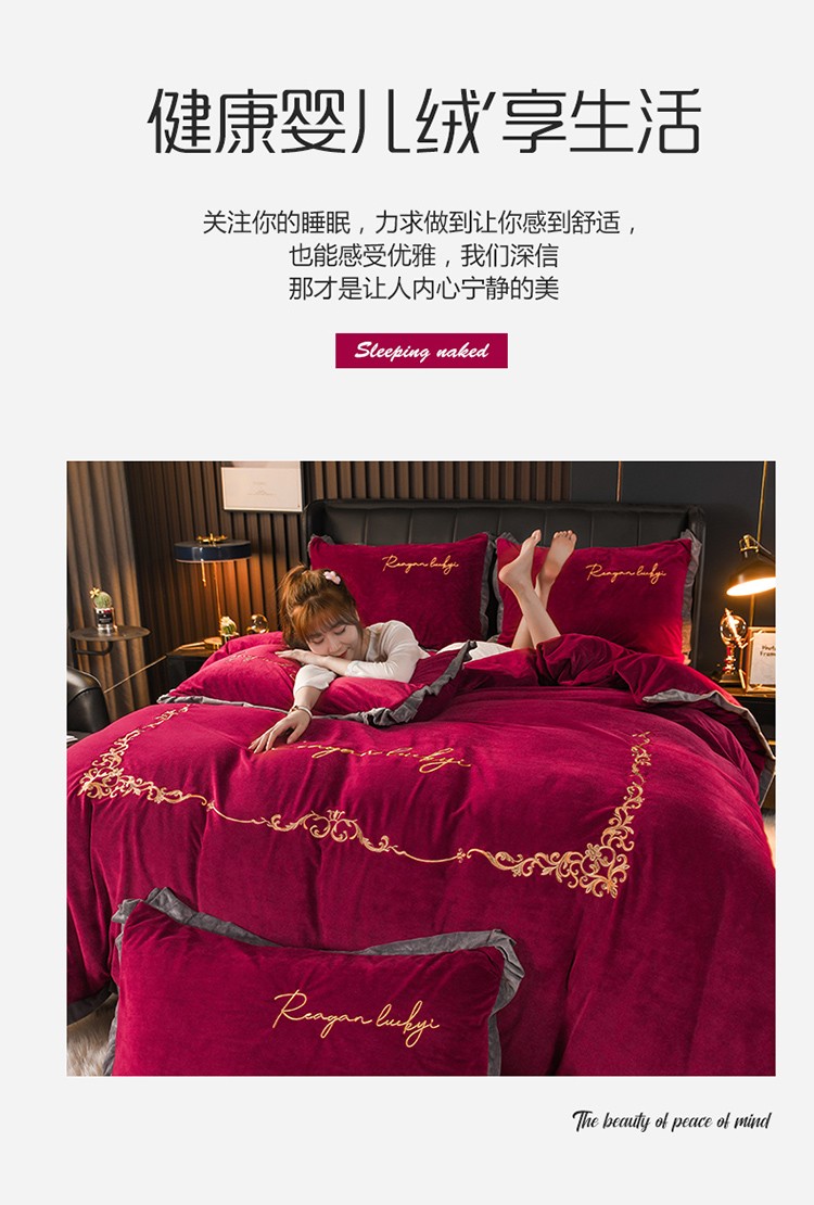 商品名称:迷仙巢 2021新款婴儿绒系列四件套盛世 盛世-酒红