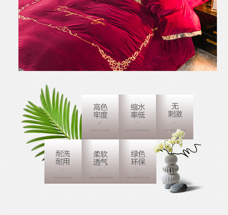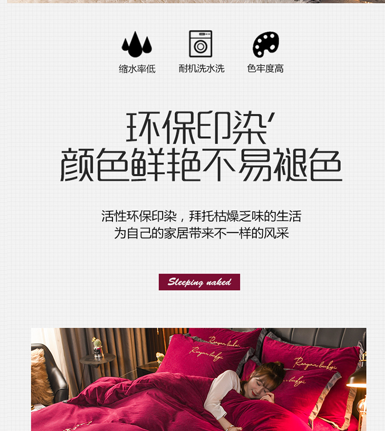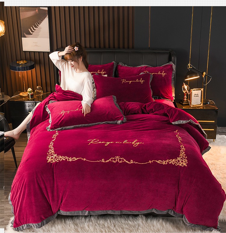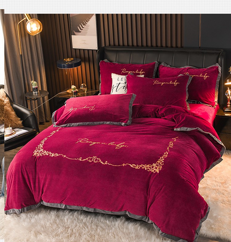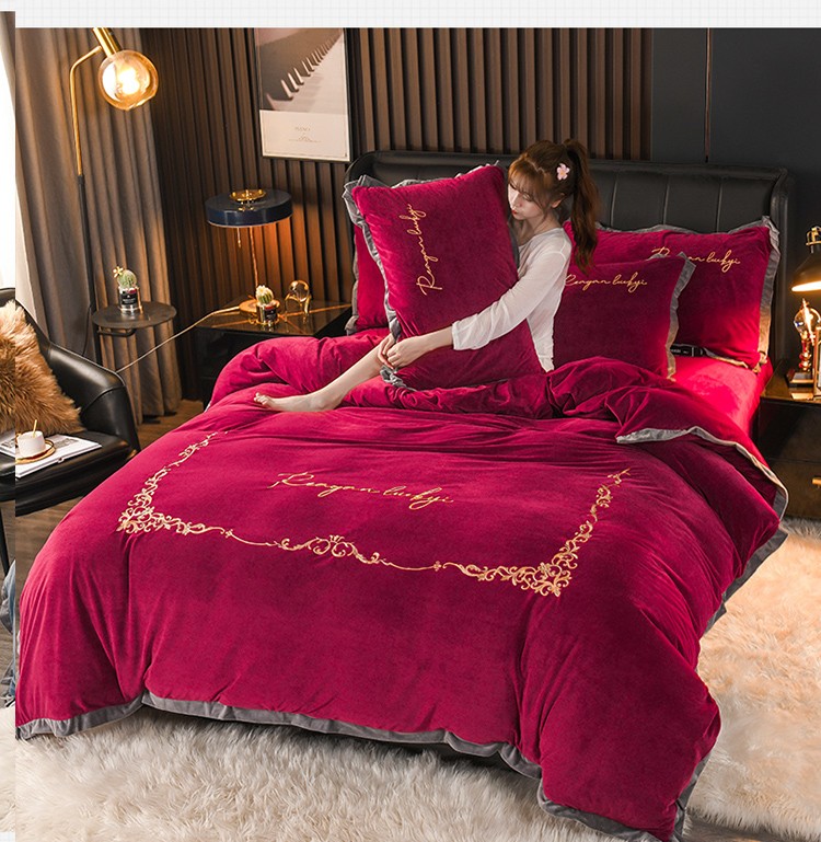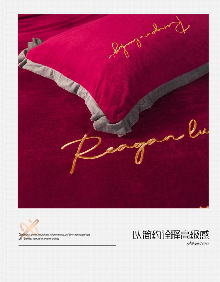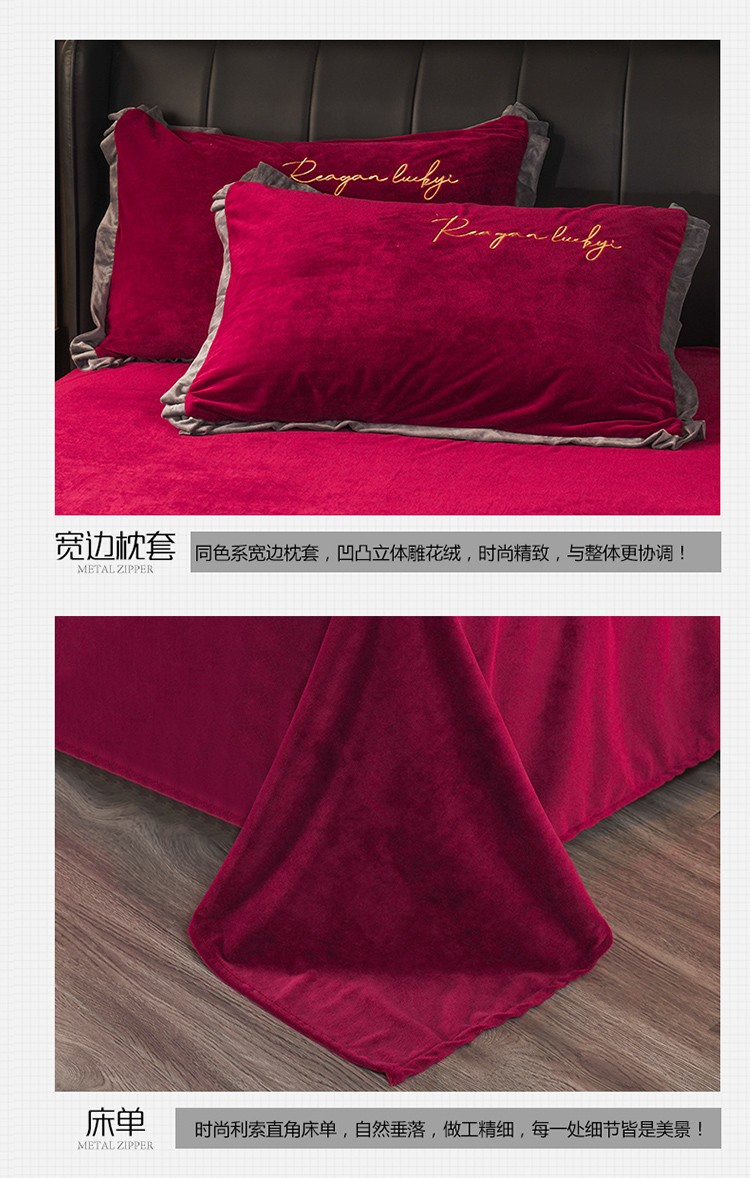 商品名称:迷仙巢 2021新款婴儿绒系列四件套盛世 盛世-酒红