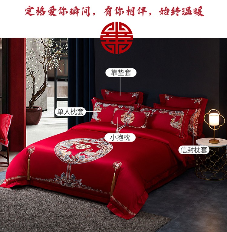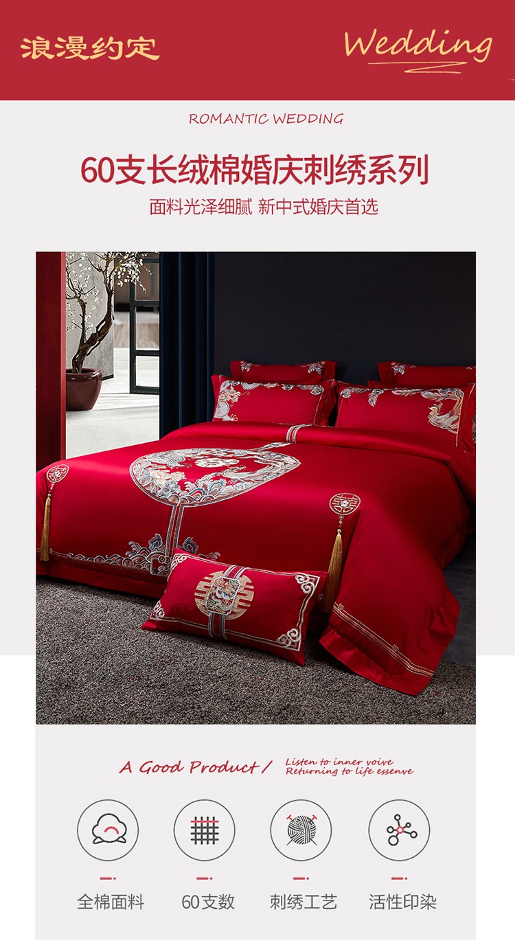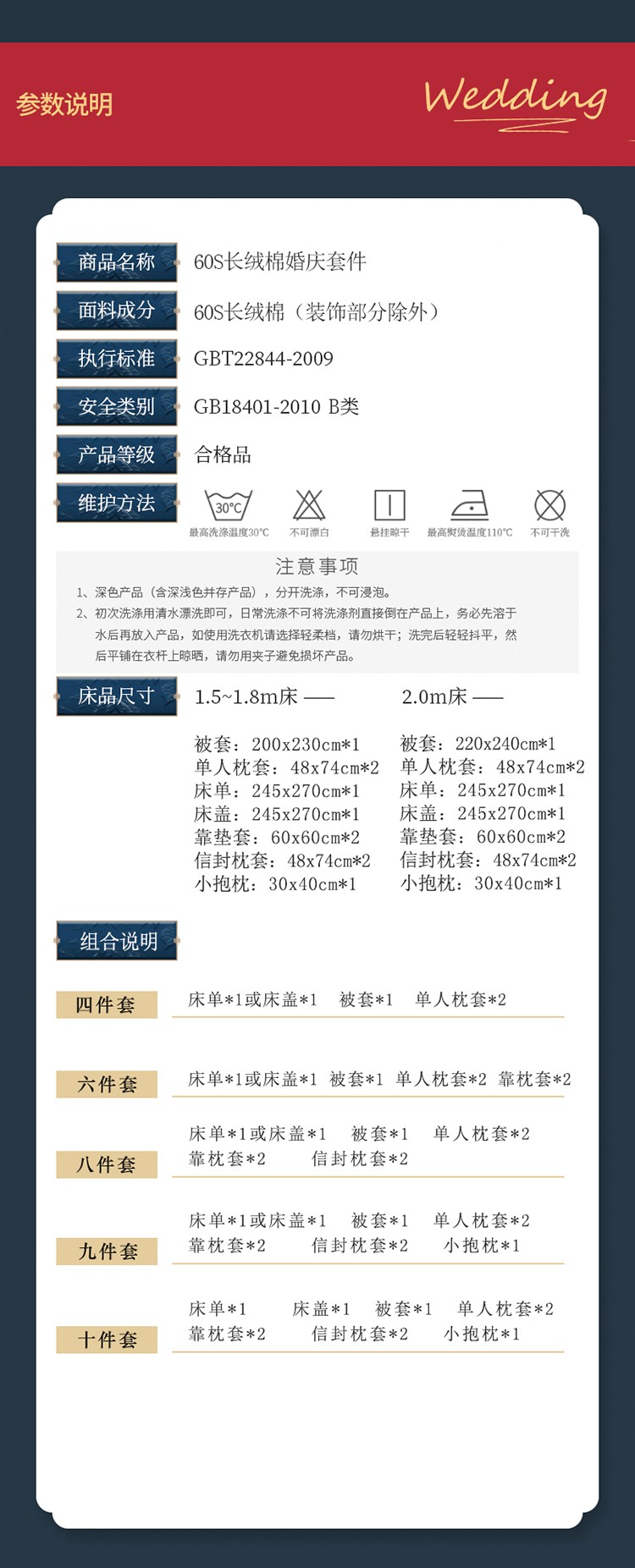 当前位置: 91家纺网 > 商品网购 > 床品套件 > 多件套 > 多件套 > (总) 高大尚 2021新款60支长绒棉婚庆多件套-浪漫约定