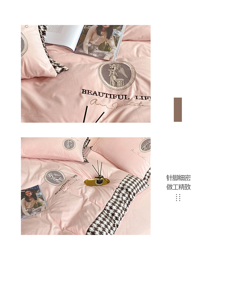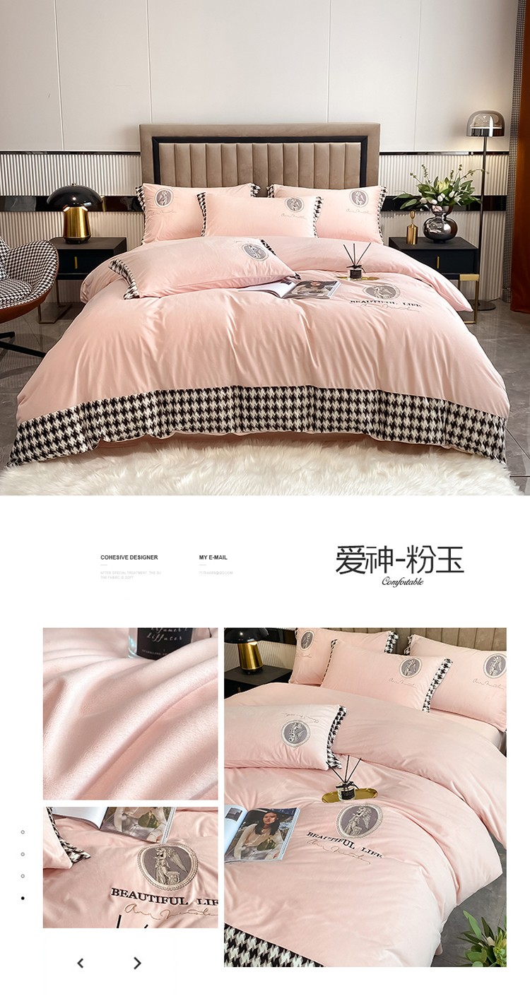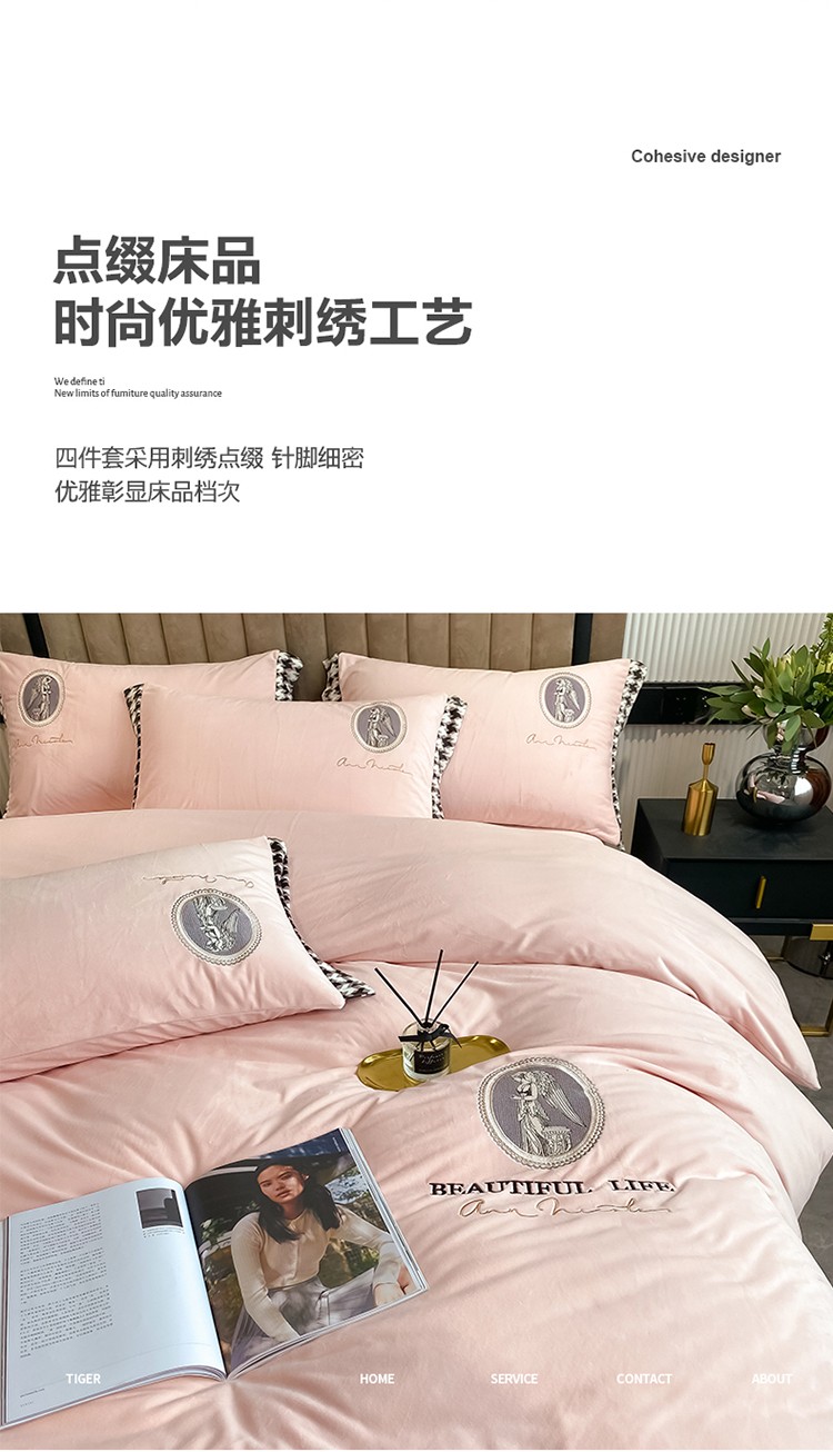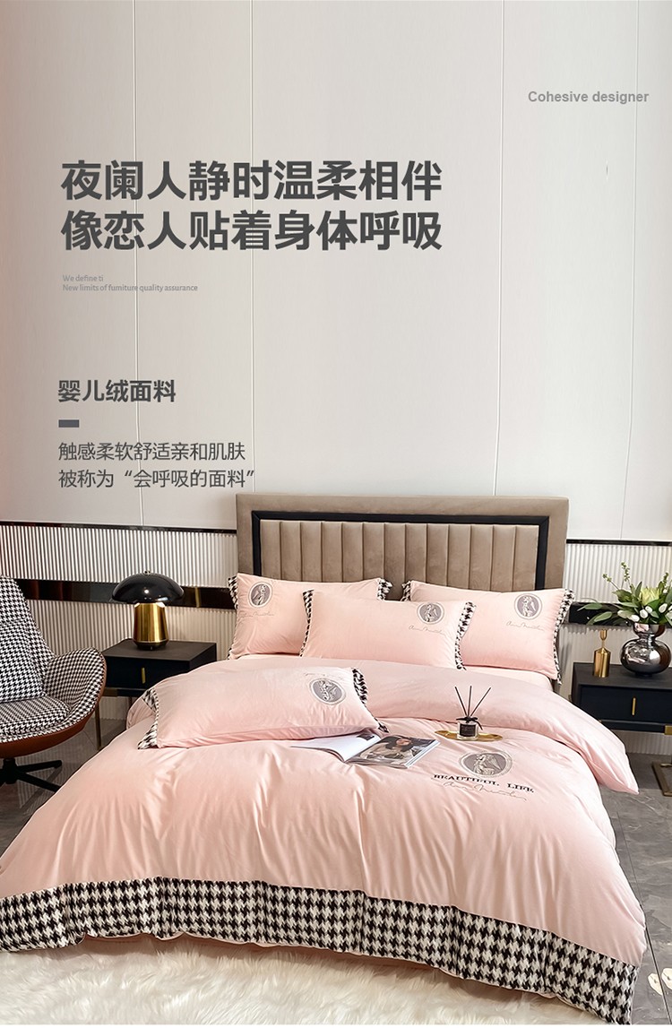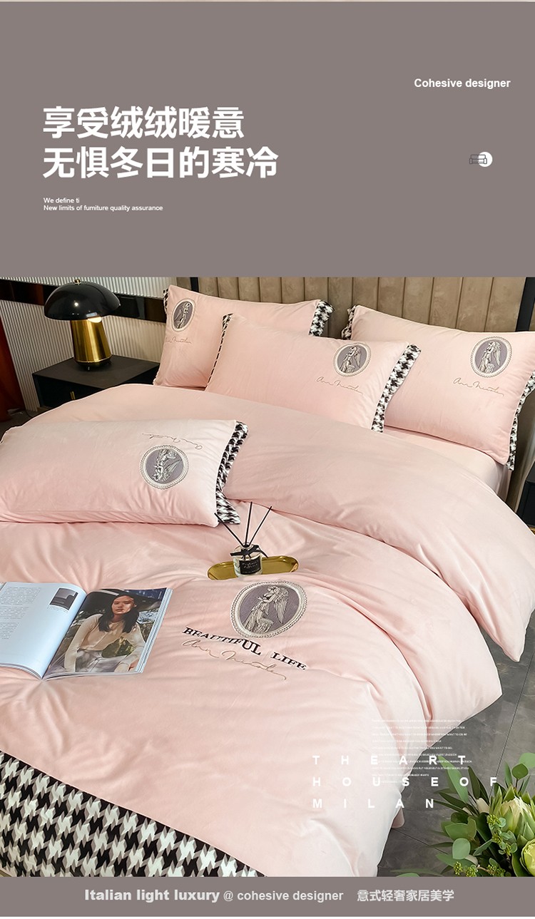 澳梵 2021【爱神系列】婴儿绒轻奢风刺绣四件套 爱神-粉玉