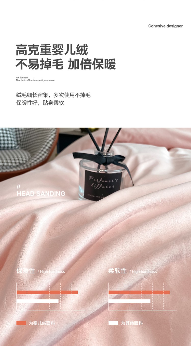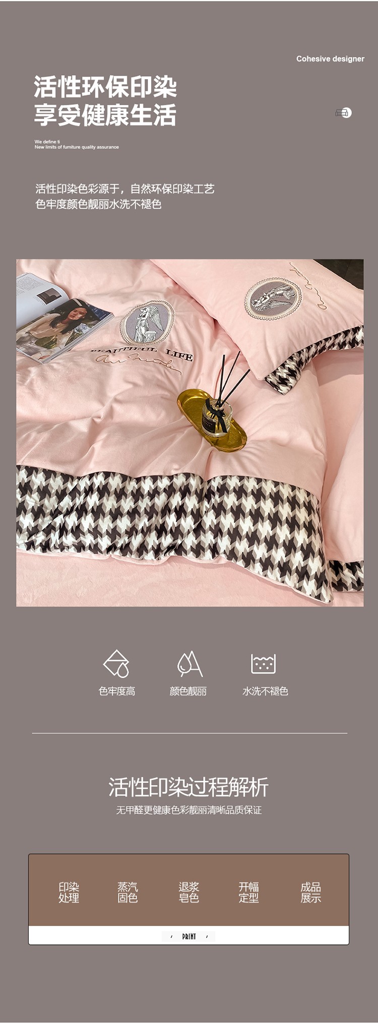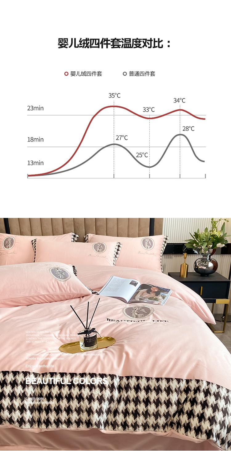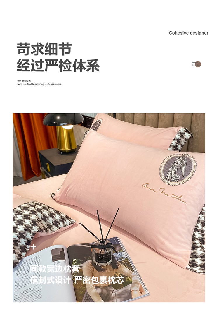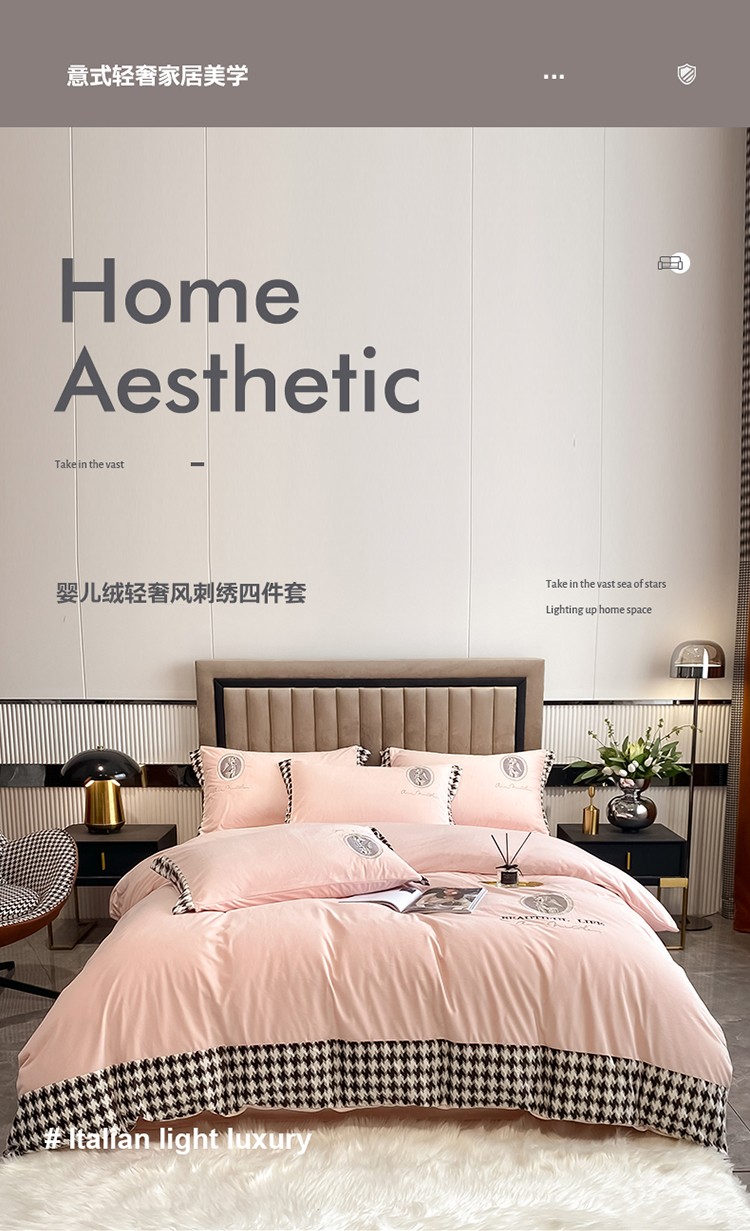 澳梵 2021【爱神系列】婴儿绒轻奢风刺绣四件套 爱神-粉玉