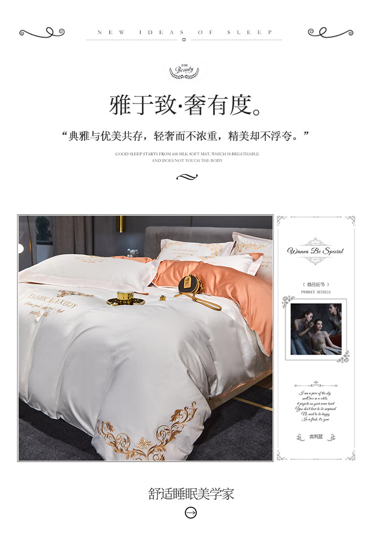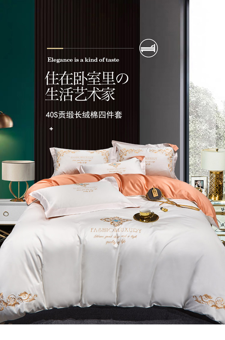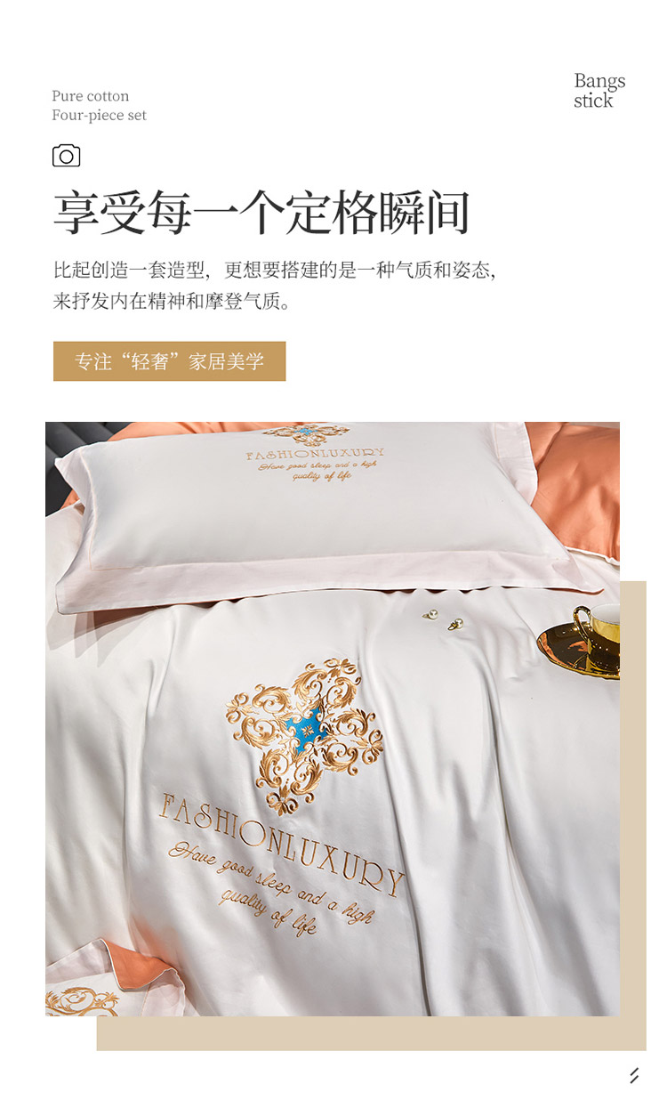 凡客2022春夏新款浪漫时节60S贡缎长绒棉绣花四件套 浪漫时节(珍珠白)