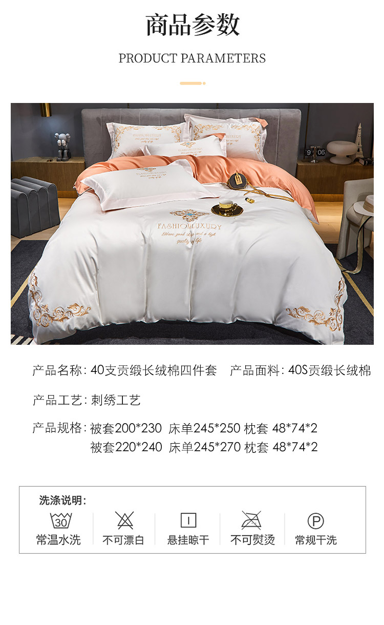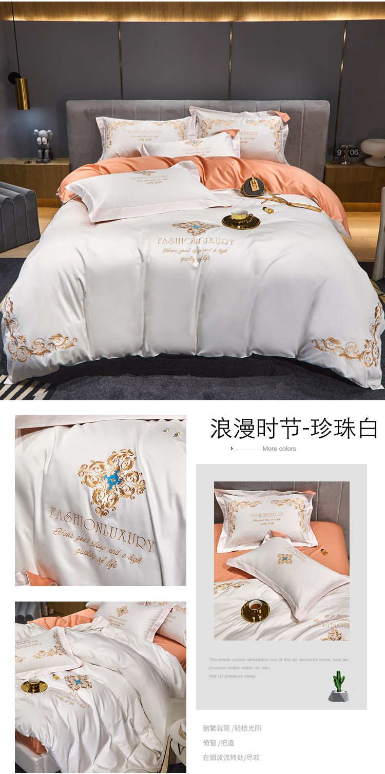 商品名称:凡客2022春夏新款浪漫时节60S贡缎长绒棉绣花四件套 浪漫时节(珍珠白)