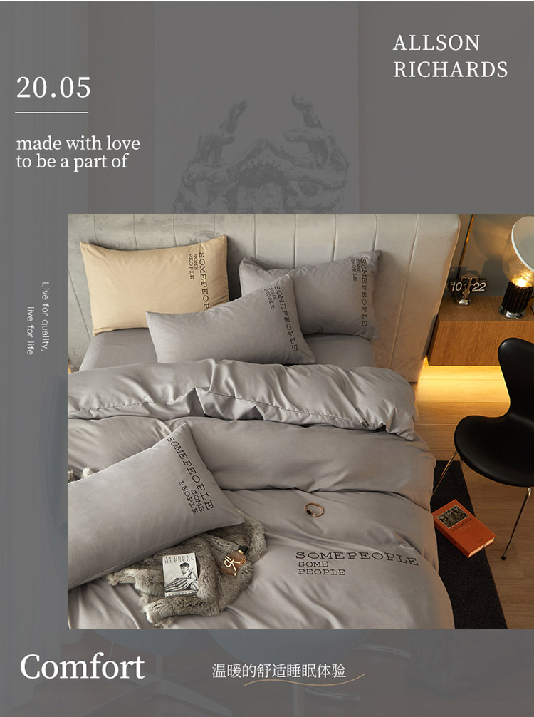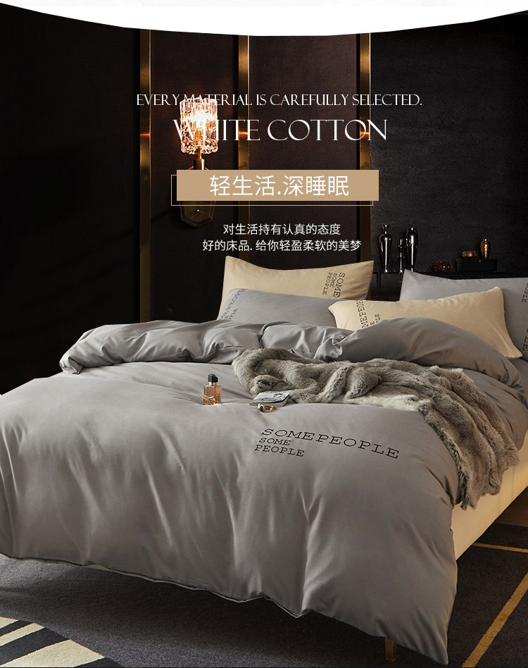 凡客2021秋冬新款贝利卡埃类棉刺绣磨毛四件套 贝利卡-银灰