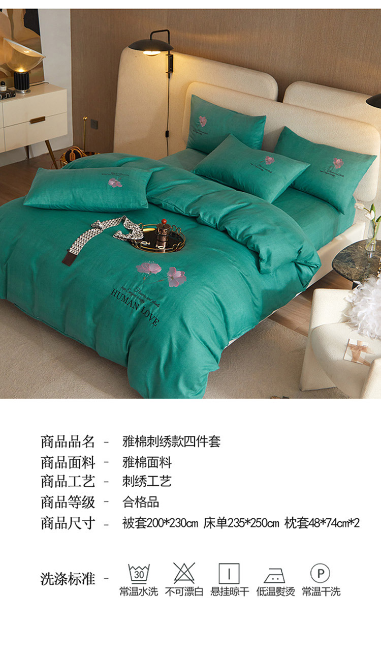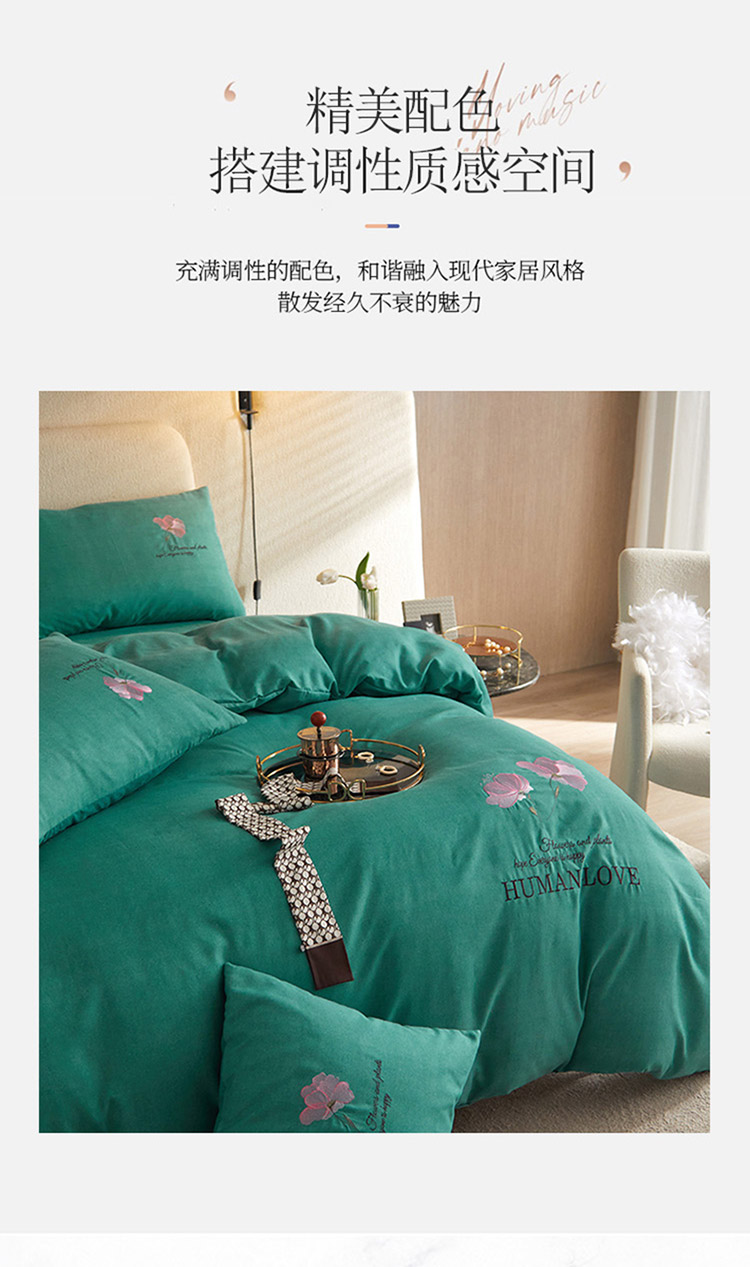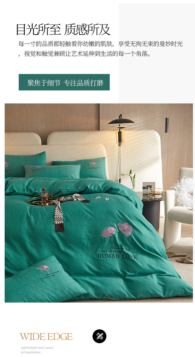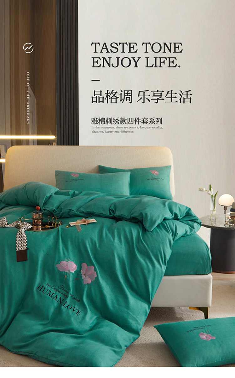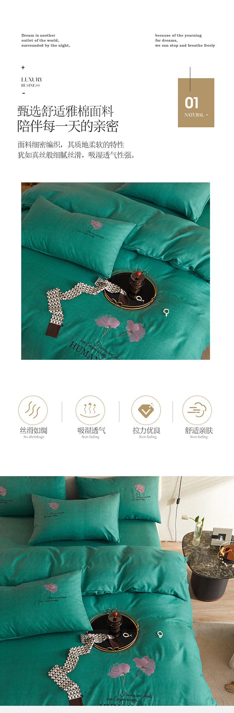 凡客 2021秋冬新款雅棉刺绣四件套-花颜 花颜-绿
